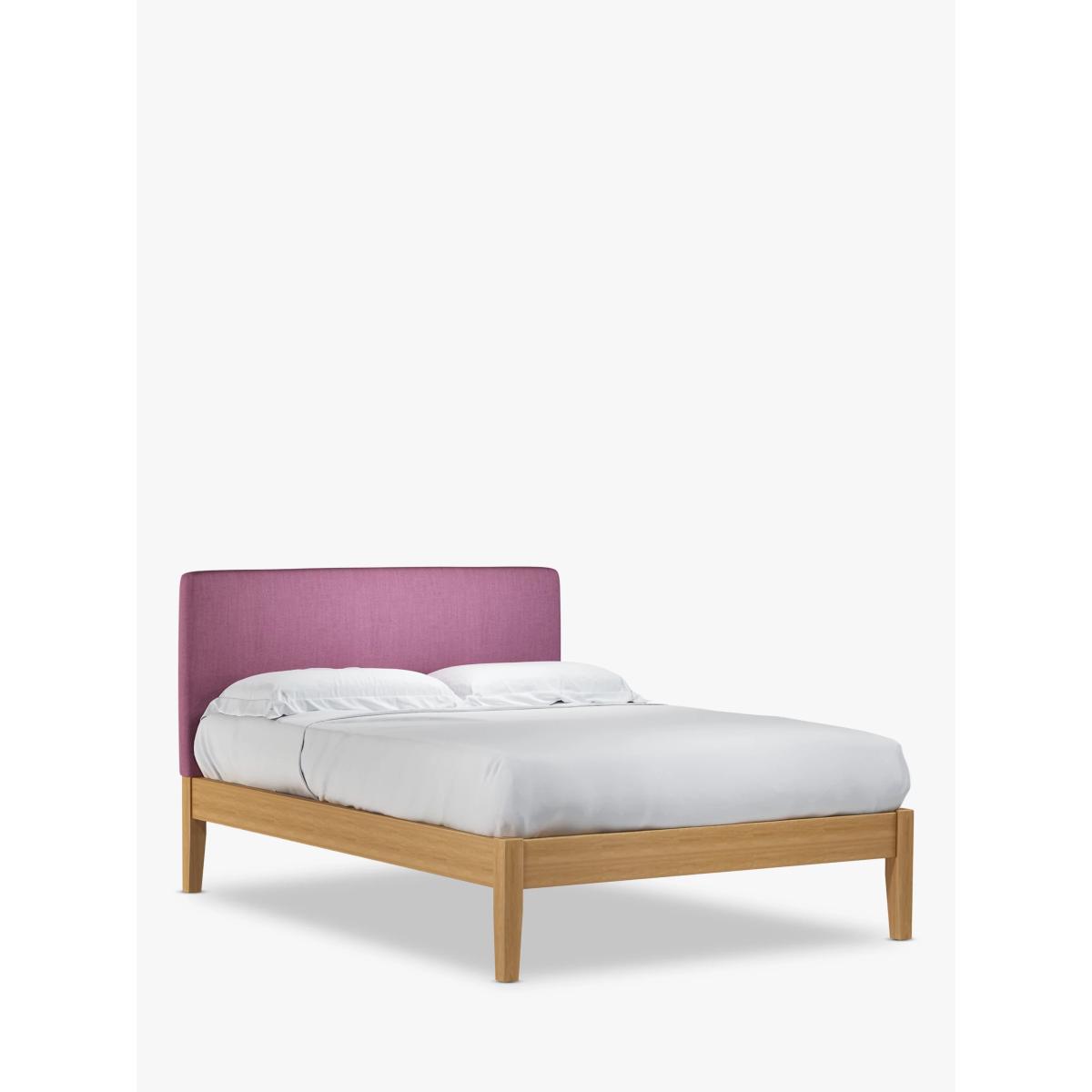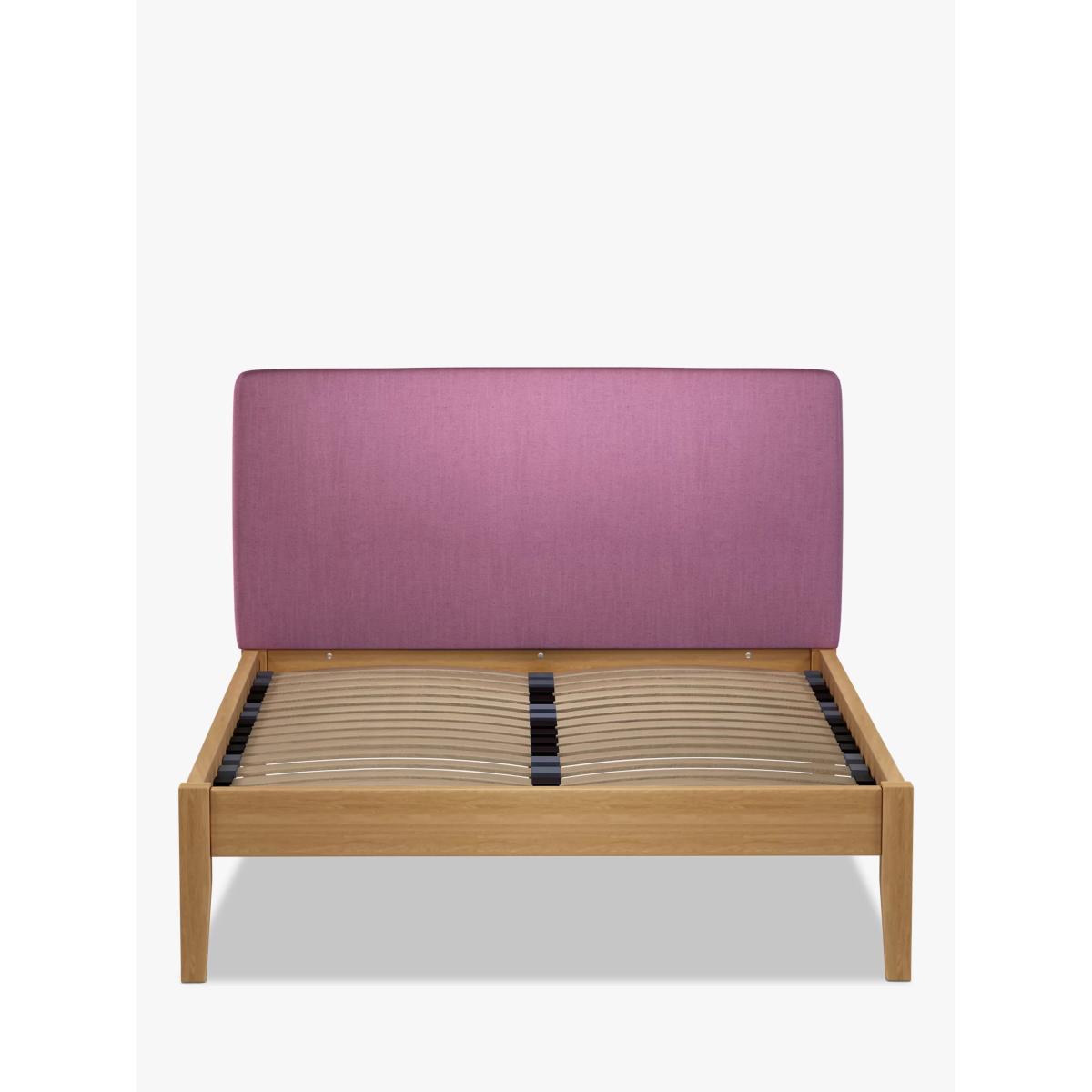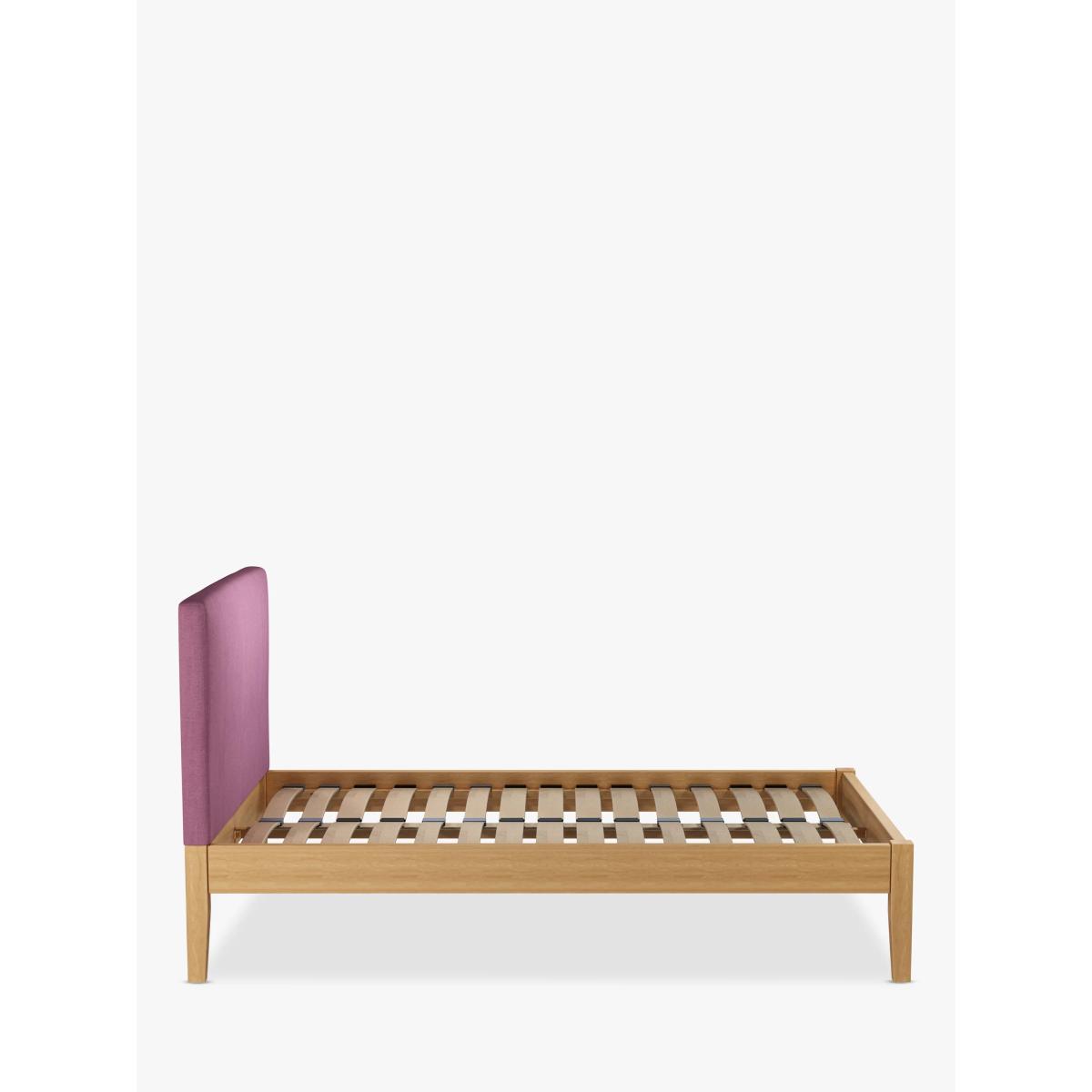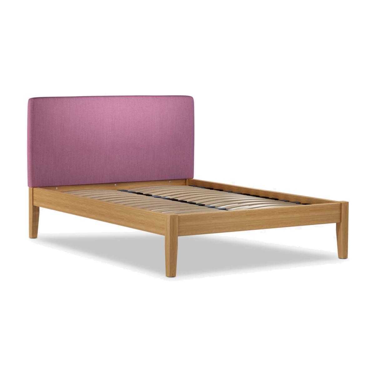 Meet Emily Kitami , our bed frame which is designed with an upholstered headboard and a sturdy solid oak base. It's a classic, clean-lined style but the well-padded headboard gives it a modern edge, and it can be upholstered in a fabric of your choice. Sprung slats in the base provide a supportive and responsive foundation for your mattress. Built with Smart Slats This bed frame is designed with wider slats at the shoulders, lumbar and feet. They provide maximum support for you and your mattress so that you experience perfect spinal alignment while you sleep. The standard slat caps are black so we have added grey slat caps to ensure that you know where to place the wider slats. Choose from one of our fabrics: Our Band A fabric, Topaz is woven to create a linen-effect feel Our Band A fabric, Saga is woven with man-made fibres, making it exceptionally durable and versatile Our Band B fabric, Erin has a velvet-style, chenille feel. It's woven with man-made fibres to create a beautifully soft yarn and can appear two-tone in different lights Our Band B fabric, Opulence is a soft and luxurious velvet-like fabric Our Band B fabric, Mole is a soft and cosy woven wool-blend. Piling and bobbling may occur naturally over time Our Band B fabric, Relaxed Linen is durable, resilient and versatile, woven from man-made and natural fibres Our Band C fabric, Aquaclean Harriet is made from a short, dense pile of velvet that has a soft, brushed finish. An Aquaclean treatment has been applied to this resilient fabric which means you can banish the majority of household stains with water. The treatment covers every fibre with an invisible coating so it doesn't need to be retreated or re-coated. It will naturally develop lines, scuffs and shading over time. Want to see it first? You may want to see and get a feel for the furniture before ordering. Pop into one of our shops to see the full range of colours and fabrics on offer. We'll be able to tell you where the range you'd like to view is on display.