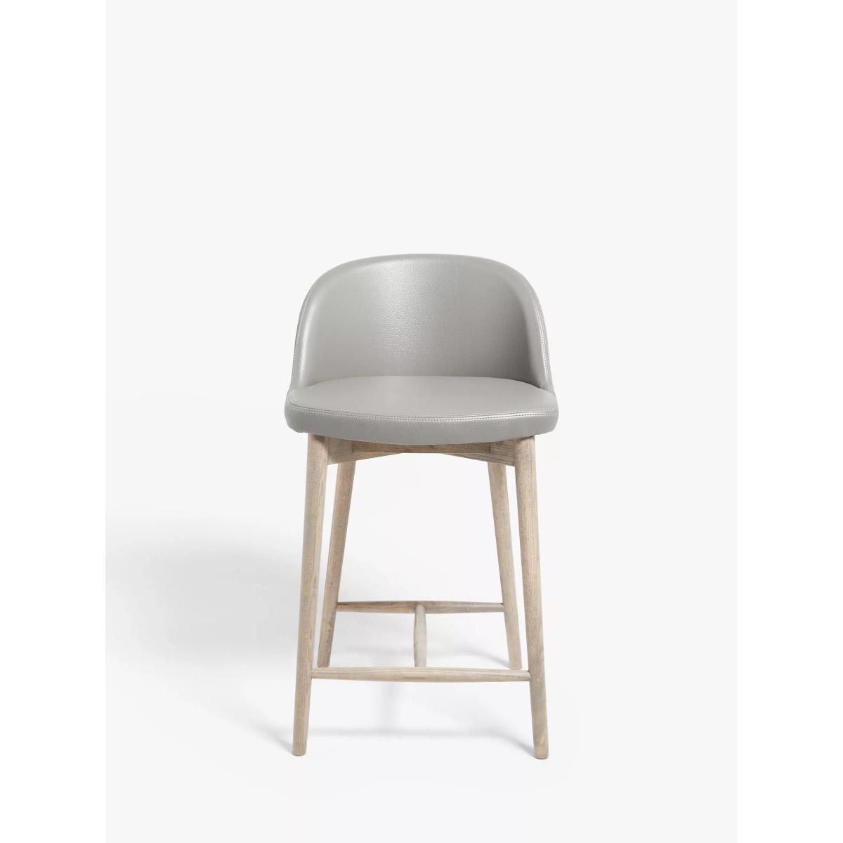 Made in Italy, this bar chair is a celebration of sturdy, high-quality woodwork and timeless design. It's made from solid ash wood in a light, natural finish and features a smooth, curving backrest. It's upholstered in practical, wipe-clean faux leather with stitch detailing and has a frame that gently tapers to the floor. Want to see it first? You may want to see and get a feel for the furniture in one of our shops before ordering. We'll be able to tell you where the range you'd like to view is on display.
