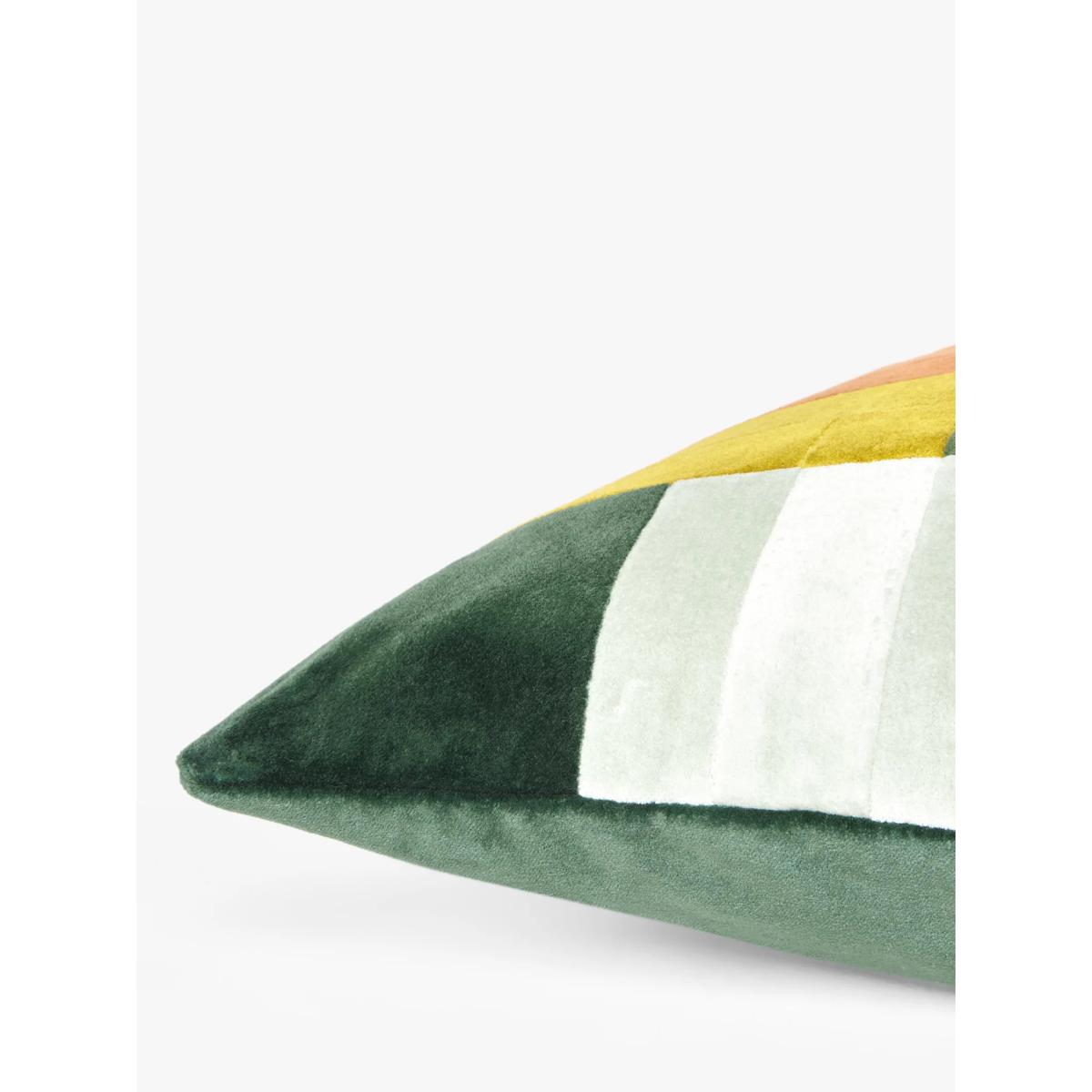 Cotton velvet fabric is patched together to make a vibrant geometric design. Perfect for adding colour and soft texture to a favourite armchair.