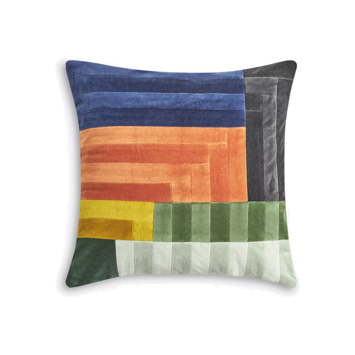 I love this cushion’s vibrant, multi-tonal design which instantly adds colour and personality to a neutral sofa or bed. Its geometric stripes make it versatile enough to work in contemporary spaces, or as a statement piece in more eclectic interiors. Practical styling tips include pairing it with more subdued cushions in complementary colours to avoid overwhelming the space, and placing it in a seating area where its colour and pattern can be appreciated. Due to its rich tones, it works particularly well in rooms with natural light, as this will help highlight its lively hues and textured fabric.