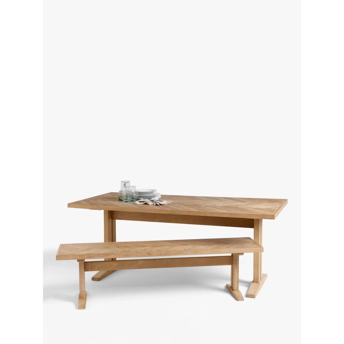 Boasting classic silhouettes and robust profiles, invest in our Estate range of furniture for your home. Crafted from hard-wearing solid wood with a rustic parquet finish, each piece will sit seamlessly in country-inspired settings. This traditional bench is impressively sturdy and offers seating for up to 3 people. Designed to sit with our Estate dining table, its attractive natural wood grains are highlighted throughout its robust silhouette. Want to see it first? You may want to see and get a feel for the furniture in one of our shops before ordering. We'll be able to tell you where the range you'd like to view is on display.