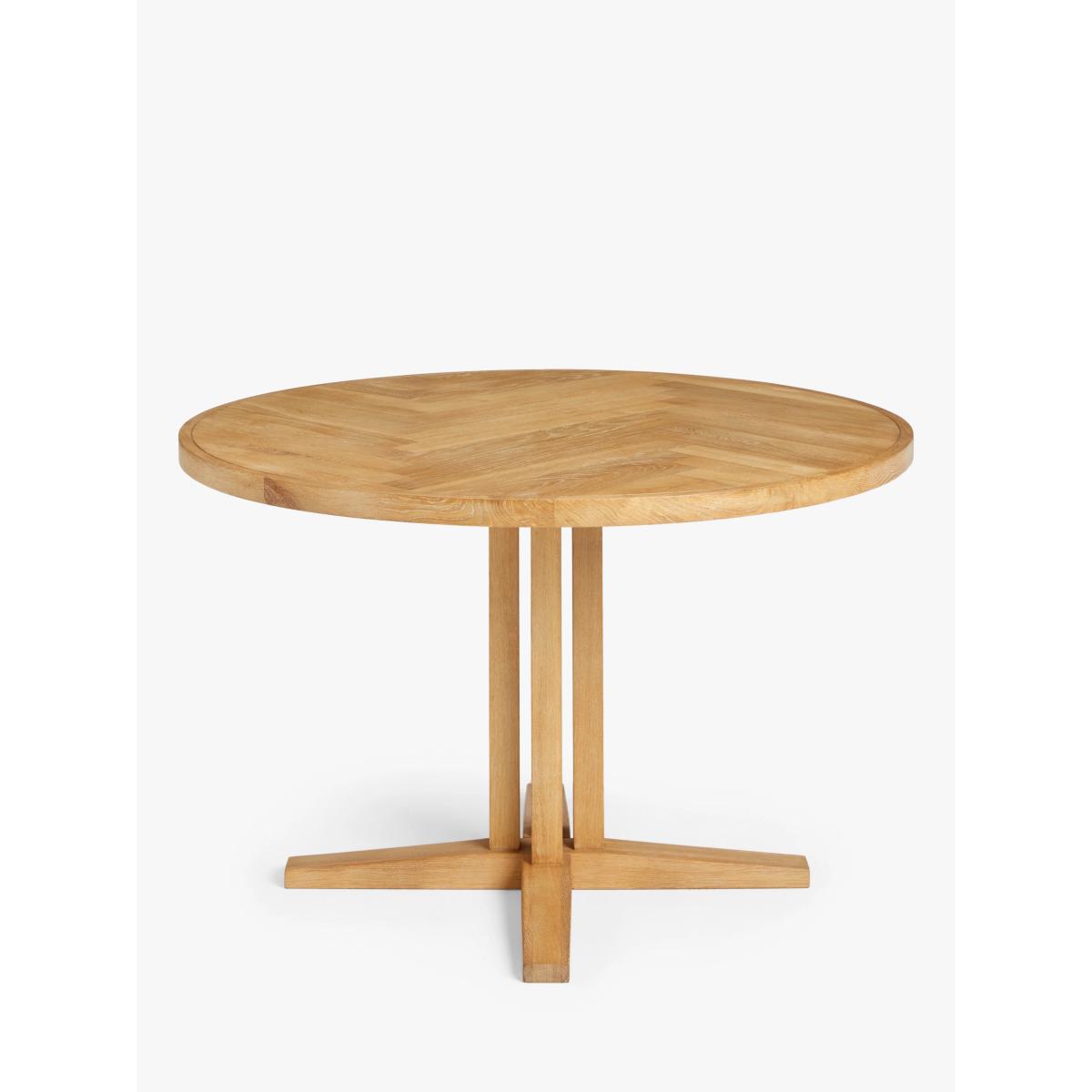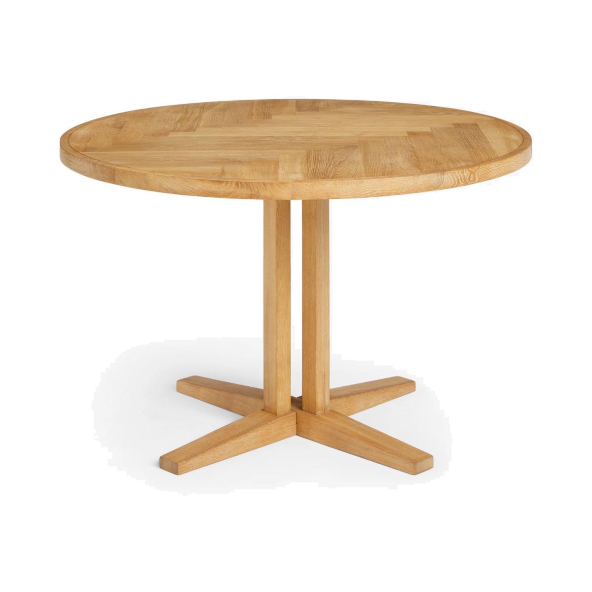 Our Estate range of furniture is characterised by its warm wood finish and parquet patterns. Functional pieces that suit country-inspired interiors, the look is calm and considered, with a lacquered coating that highlights the natural pattern and grain of the oak wood. This dining table seats up to four people. The wooden surface top is supported by sturdy feet with an open centre support, ensuring your room feels spacious and uncluttered. Want to see it first? You may want to see and get a feel for the furniture in one of our shops before ordering. We'll be able to tell you where the range you'd like to view is on display.
