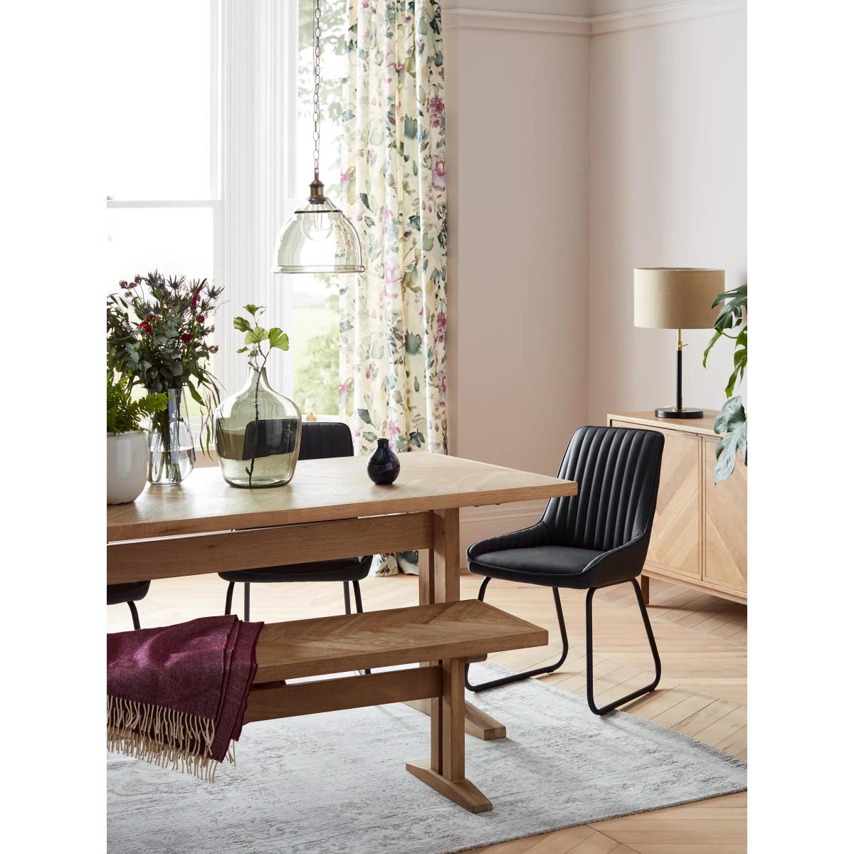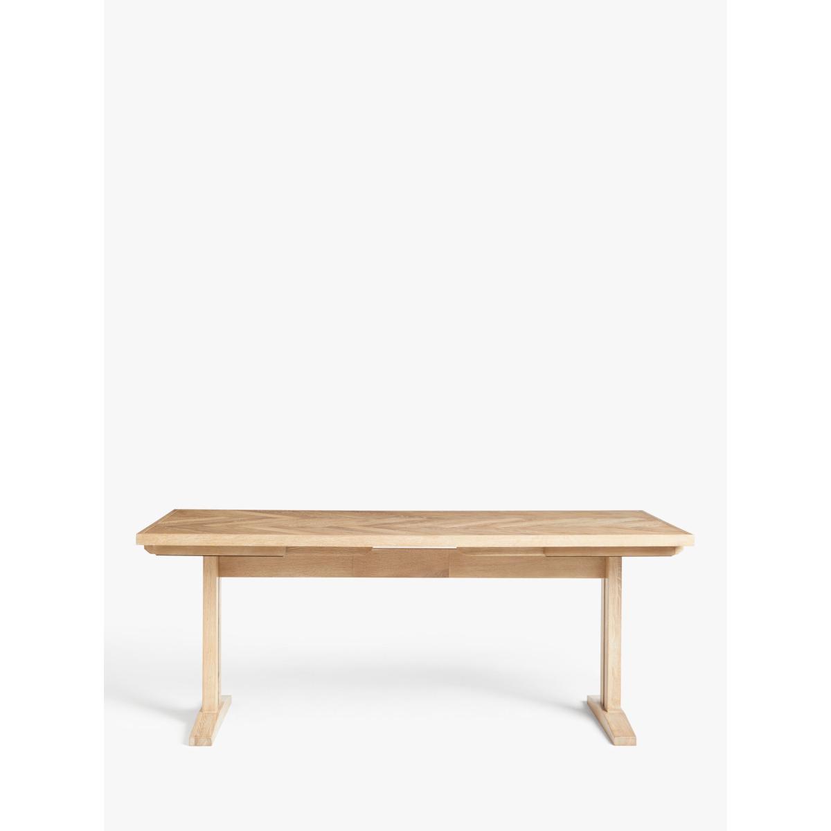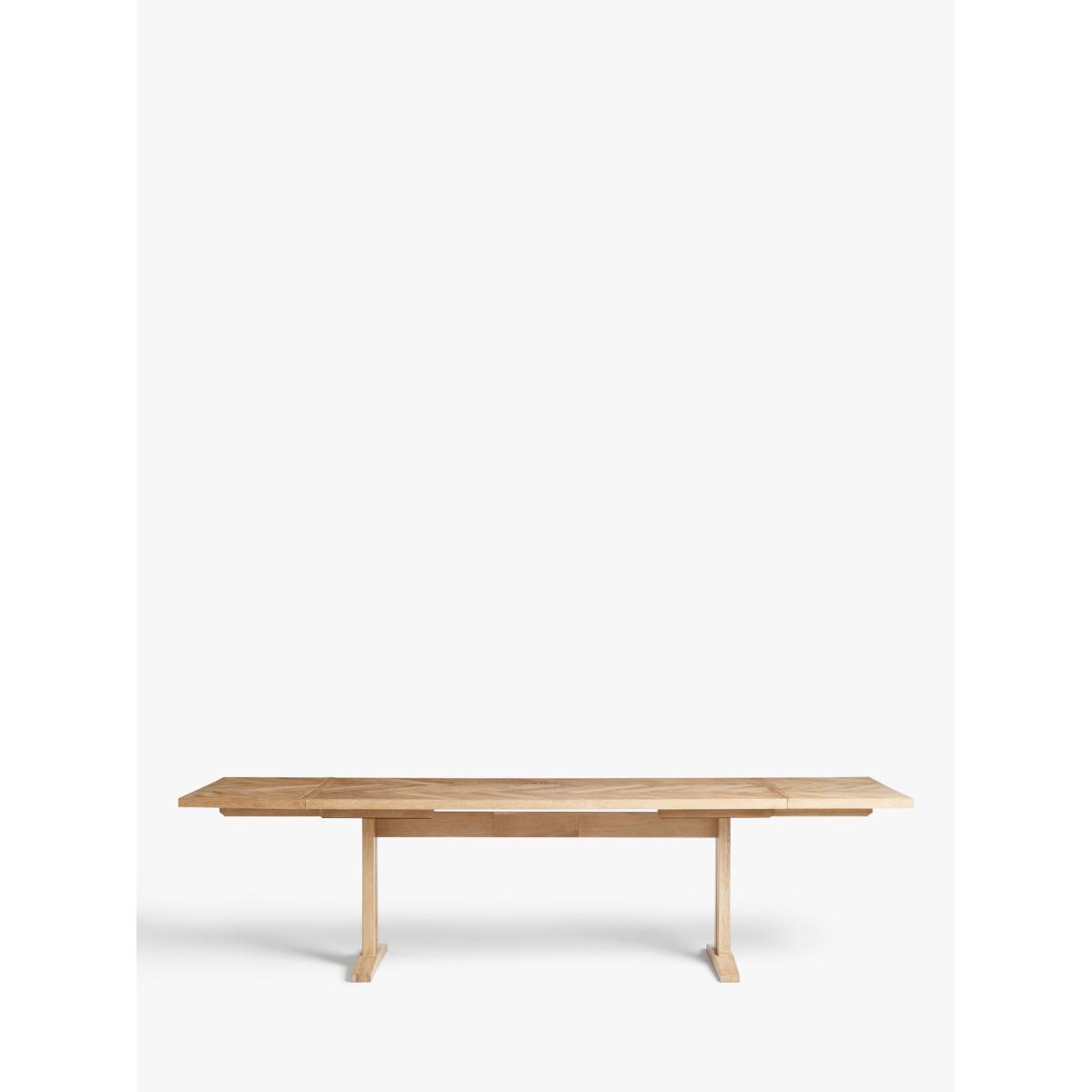 Boasting classic silhouettes and robust profiles, invest in our Estate range of furniture for your home. Crafted from hard-wearing solid wood with a rustic parquet finish, each piece will sit seamlessly in country-inspired settings. This dining table has an impressively sturdy and traditional frame, with its natural wood grains highlighted throughout its sleek surface top. Easy to extend via two extension leaves, this table offers space for up to 10 diners, making it ideal for entertaining. Want to see it first? You may want to see and get a feel for the furniture in one of our shops before ordering. We'll be able to tell you where the range you'd like to view is on display.
