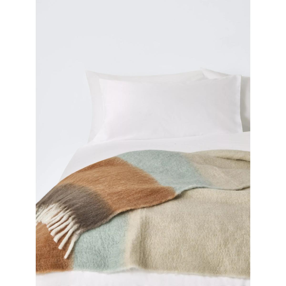 Designed with bands of soft colour, this fringed throw is woven from wool, acrylic and polyester fibre to give the appearance of mohair. It makes the perfect layer for your bed or sofa when a cosy night in calls. Our generously sized throws are perfect for an extra cosy, decorative layer on your bed or keeping you cosy anywhere at home or on the move.