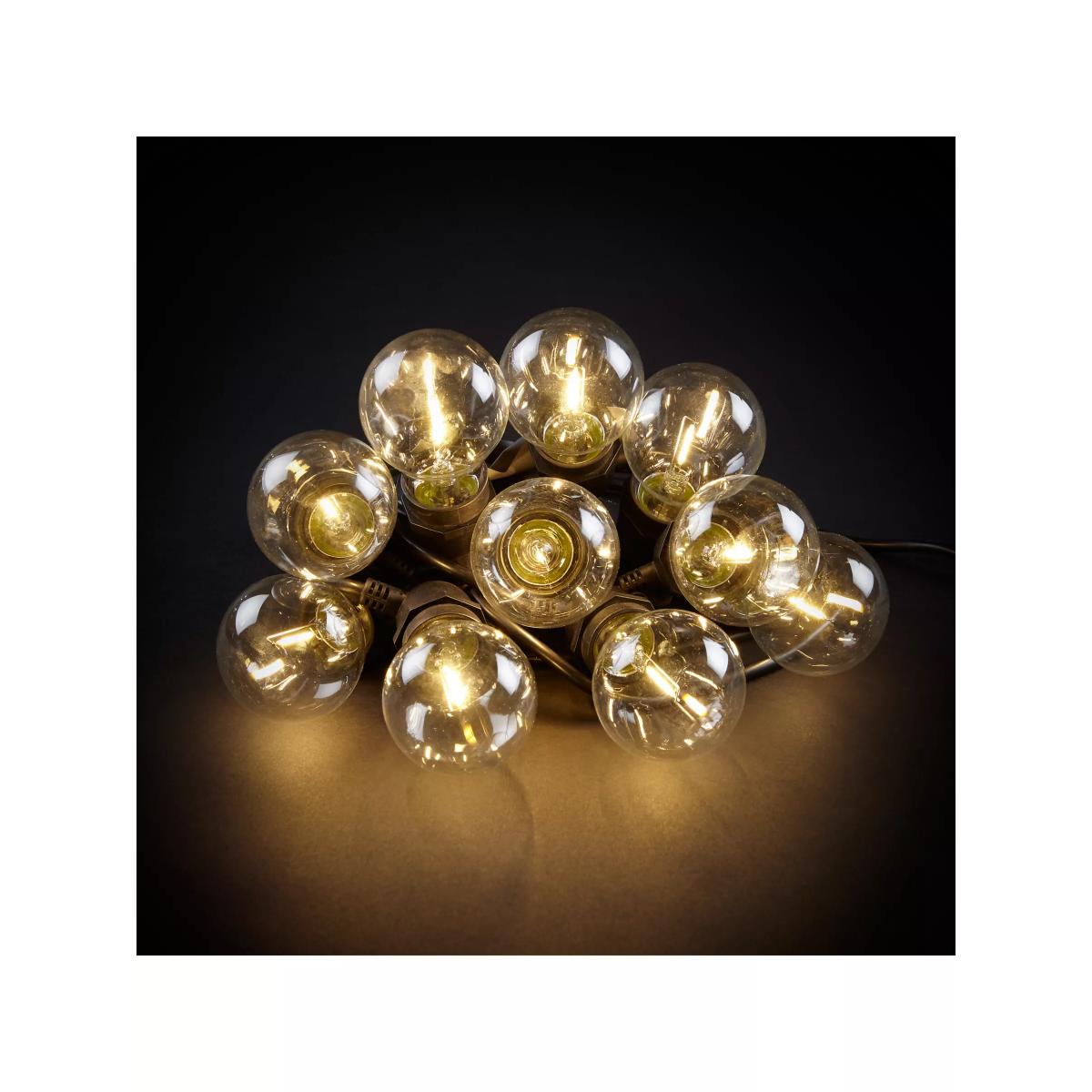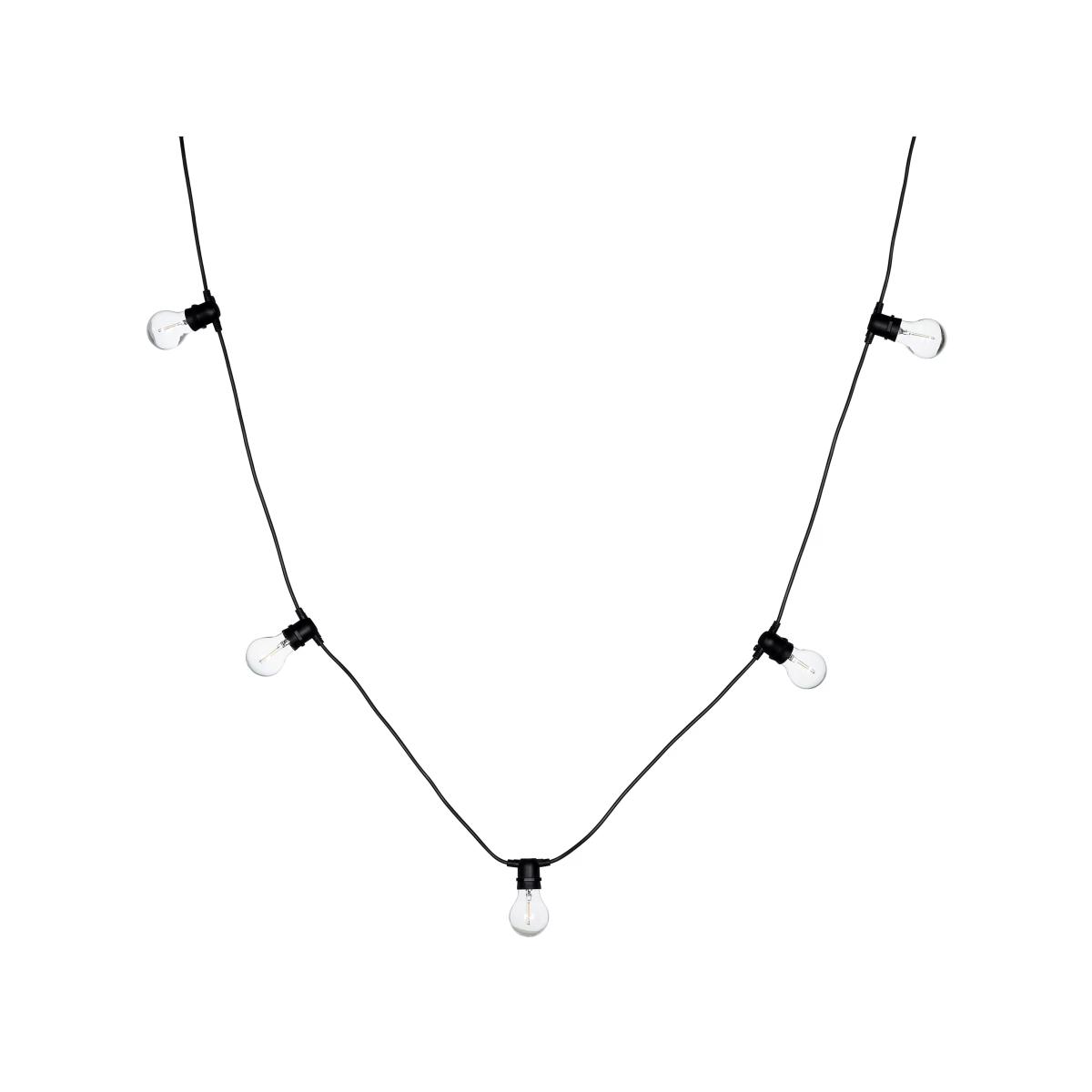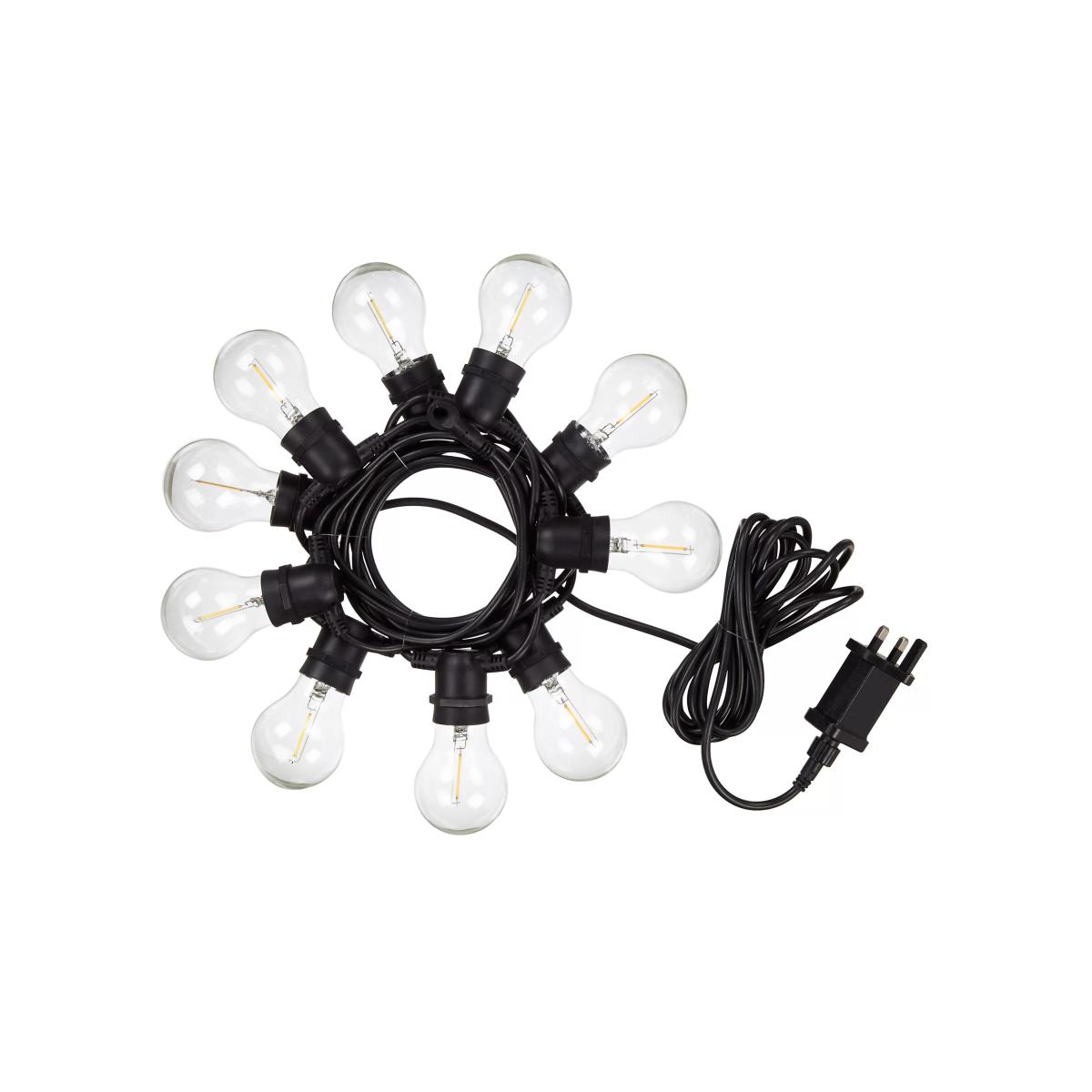 These festoon line lights will add a warm glow of light and character to both indoor and outdoor spaces, making the perfect decoration when you're entertaining. The cable length is 9.5m in total. When using the lights outside, make sure the power adaptor is kept indoors at all times.