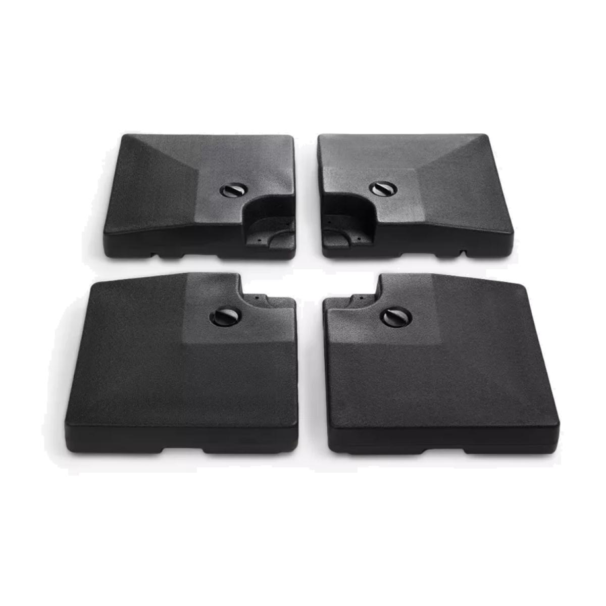 Compatible with freestanding parasols, this set of plastic base weights can be filled with up to 90kg of water to make sure your parasol stays in place. The four-part bases can be emptied for easier storage. Since the base can weigh up to 90kg when filled, ensure that you are happy with your parasol's location before filling the bases.