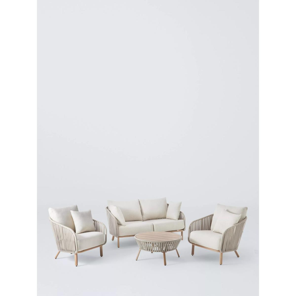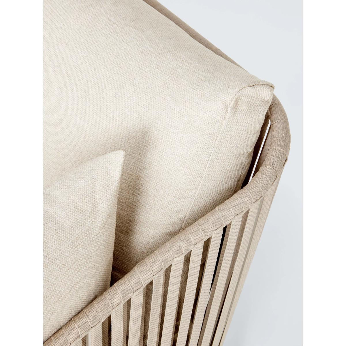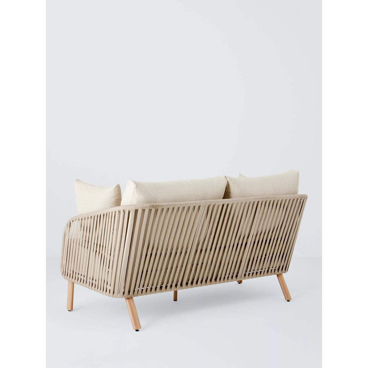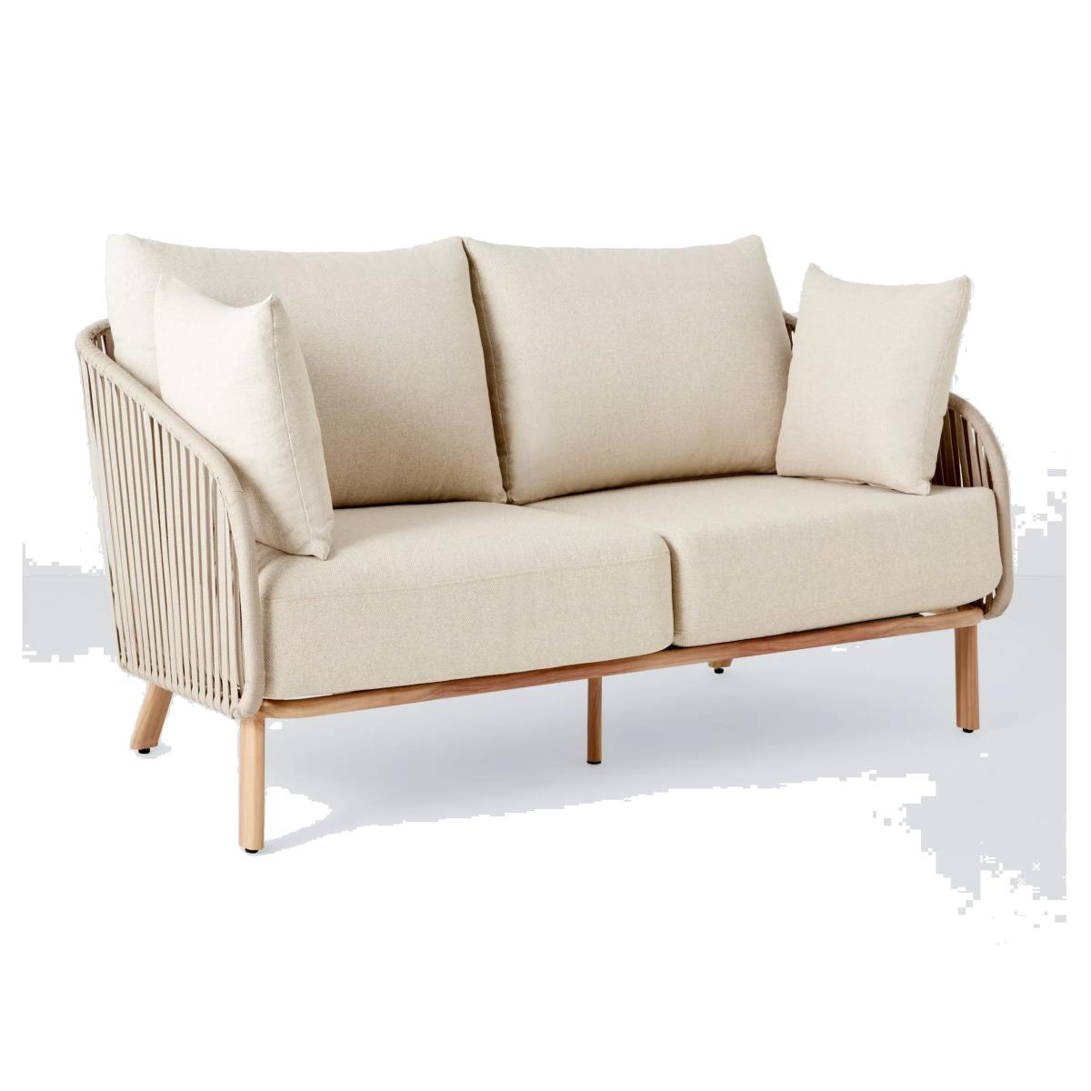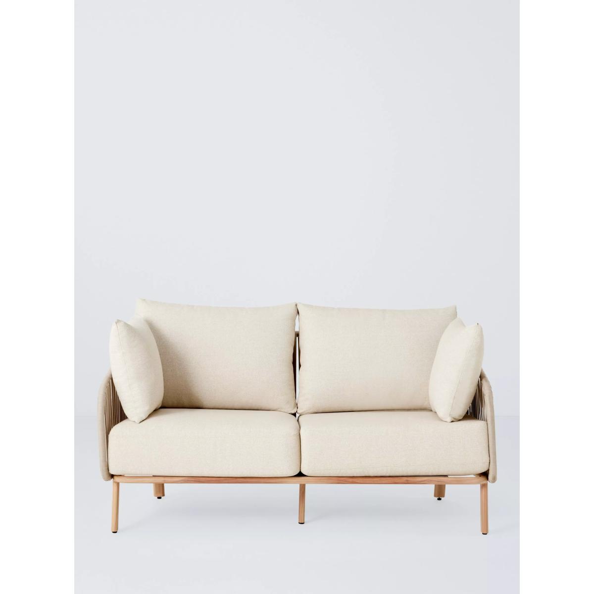 A contemporary design, our Flat Rope Weave furniture is made with an all-weather poly rope weave on robust yet lightweight wood-effect aluminium frames. This comfortable design includes sumptuous and shower-resistant seat and backrest cushions. Key features: 2-seater garden sofa Weather-resistant poly rope weave Lightweight yet robust wood-effect aluminium frame Shower-resistant sumptuous seat and backrest cushions and two scatter cushions Feet caps protect flooring and furniture legs Team with our Flat Rope Weave range of garden furniture Garden furniture care: To keep your outdoor furniture in the best condition, store it in a cool, dry, well-ventilated spot indoors over the winter. If it’s staying outside, use an outdoor furniture cover whenever the weather is wet or unseasonal. Make sure furniture is clean and dry before storing it away, and keep cushions in a clean and dry place when not in use.