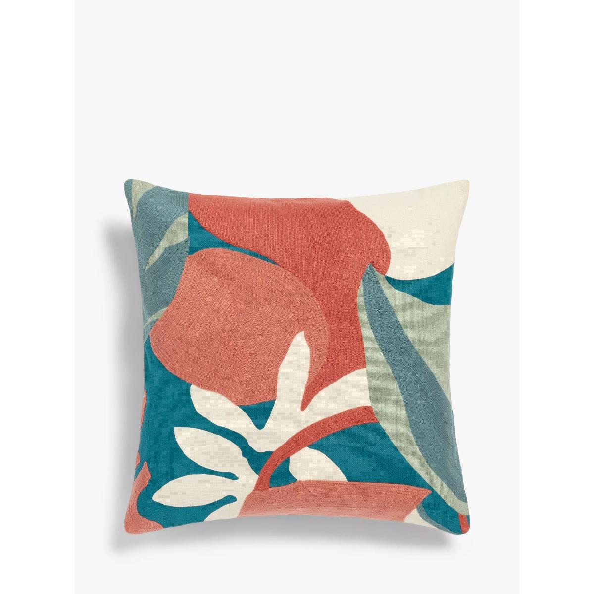 I really like this floral crop cushion for bringing a fresh, botanical touch to a range of interiors. Its embroidered detailing adds texture, making it a versatile piece that works well in both contemporary and traditional settings. It’s great for adding a pop of colour and pattern to neutral sofas or beds, and can be easily mixed with solid cushions for a curated look. Practical styling tips include pairing it with minimalist throws to highlight its embroidery or using it as a statement piece on layered seating. Its vibrant yet sophisticated palette means it’ll blend seamlessly with bright or muted colour schemes, making it a reliable choice for injecting personality into a space.