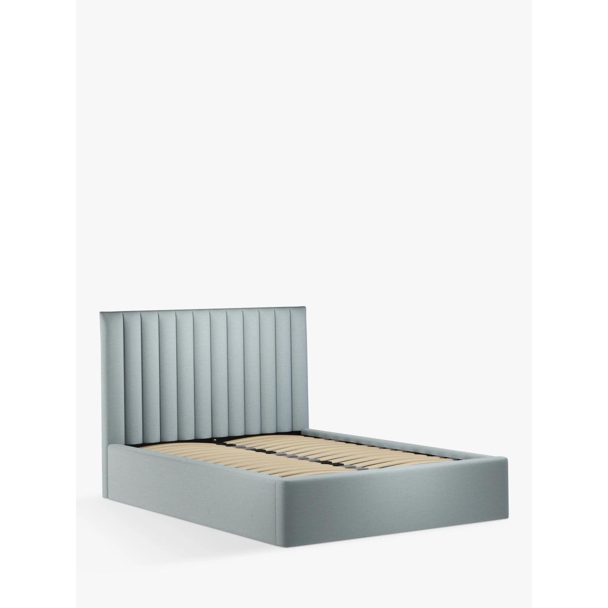 We’ve made the headboard a defining design element of the Fluted bed frame, adding extra padding to give the bed an elegant, curved side profile and giving even more depth to the flutes. Finished with a tapered dark stain leg to ensure the bed looks just as good in both traditional and contemporary rooms. With the help of hydraulic arms and a handle, it's easy to lift up the mattress to reveal a functional storage space in the base. Sprung slats provide a supportive foundation for your mattress. Made from high-quality timbers. Assembly service Our assembly service is included in the selling price for our Made to Order beds. At the same time as delivery, we'll build your new bed and place it in your room of choice. We'll take away all of the packaging too, for recycling. Built with Smart SlatsThis bed frame is designed with wider slats at the shoulders, lumbar and feet. They provide maximum support for you and your mattress so that you experience perfect spinal alignment while you sleep. The standard slat caps are black so we have added grey slat caps to ensure that you know where to place the wider slats. Choose from one of our fabrics: Our Band A fabric, Cotton Effect has a laid-back and fine-textured look that looks like cotton, but it's made from durable polyester fibres Our Band B fabric, Relaxed Linen gives you the fine texture of cotton, the durability of synthetic fibres and the laid-back look of linen Want to see it first? You may want to see and get a feel for the furniture before ordering. Pop into one of our shops to see the full range of colours and fabrics on offer. We'll be able to tell you where the range you'd like to view is on display.