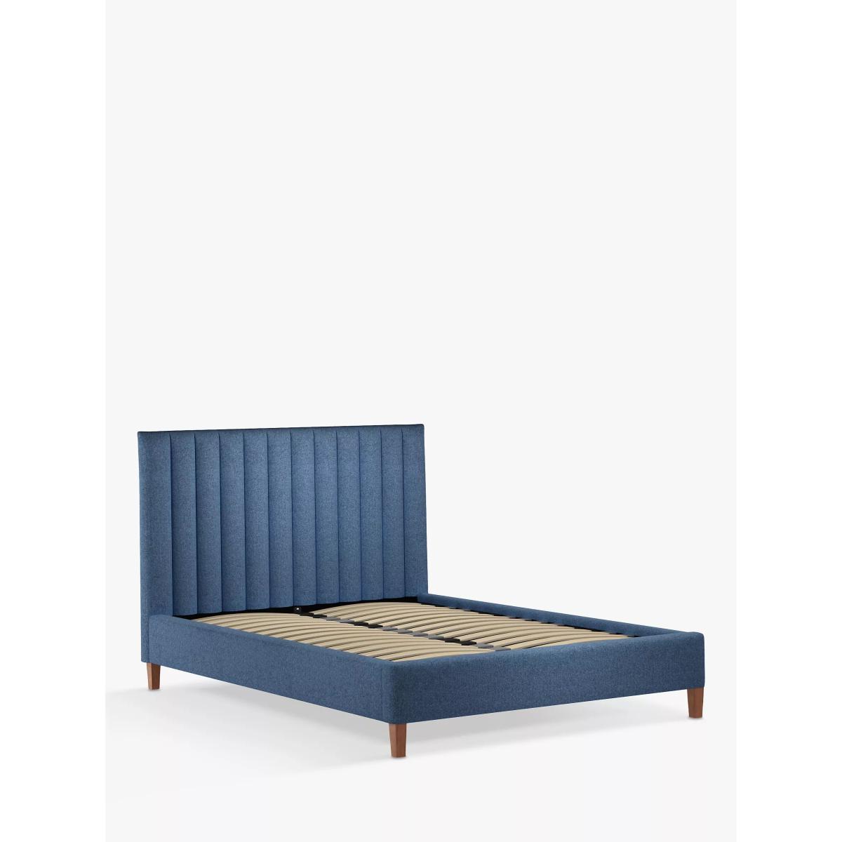 We’ve made the headboard a defining design element of the Fluted bed frame, adding extra padding to give the bed an elegant, curved side profile and giving even more depth to the flutes. Finished with a tapered dark stain leg to ensure the bed looks just as good in both traditional and contemporary rooms. Made from high-quality timbers. Its sprung slats provide a more supportive foundation for your mattress. Assembly service Our assembly service is included in the selling price for our Made to Order beds. At the same time as delivery, we'll build your new bed and place it in your room of choice. We'll take away all of the packaging too, for recycling. Built with Smart SlatsThis bed frame is designed with wider slats at the shoulders, lumbar and feet. They provide maximum support for you and your mattress so that you experience perfect spinal alignment while you sleep. The standard slat caps are black so we have added grey slat caps to ensure that you know where to place the wider slats. Choose from one of our fabrics: Our Band A fabric, Cotton Effect has a laid-back and fine-textured look that looks like cotton, but it's made from durable polyester fibres Our Band A fabric, Brushed Tweed is made with a brushed herringbone weave that has a cosy wool look and soft 'peach skin' feel. It's really hard-wearing and a brilliant all-rounder Our Band A fabric, Soft Weave has a casual cotton look with a brushed finish that's soft-to-touch and a subtle texture that's created by slight variations in the tones of the woven fibres Our Band B fabric, Soft Touch Chenille is made from a blend of fibres that give it a super-soft feel and added durability Our Band B fabric, Deep Velvet will bring warmth and luxury to your bedroom. It's a short pile velvet with a soft, plush feel Our Band B fabric, Relaxed Linen gives you the fine texture of cotton, the durability of synthetic fibres and the laid-back look of linen Our Band C fabric, Aquaclean Velvet will liven up your bedroom. It's plush, available in a range of bold colours and treated with Aquaclean so that it can be wiped clean with just water. A smart choice for families and those with pets Want to see it first? You may want to see and get a feel for the furniture before ordering. Pop into one of our shops to see the full range of colours and fabrics on offer. We'll be able to tell you where the range you'd like to view is on display.