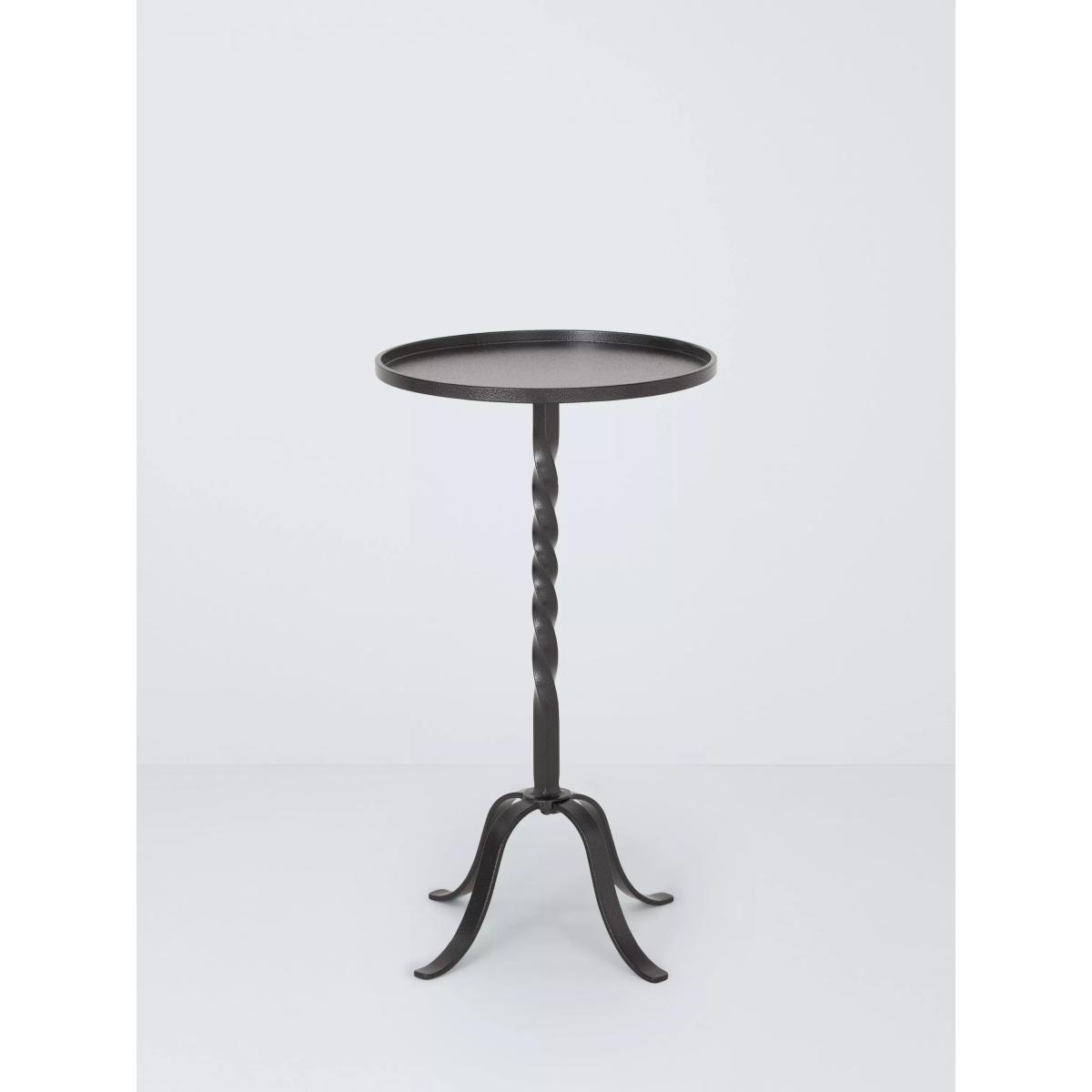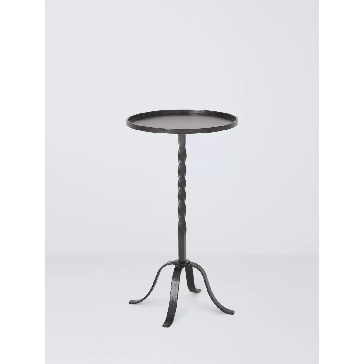 Our Forge range blends timeless design and expert craftsmanship. We've built this side table from robust powder-coated steel with a twisted frame and shapely round legs. With a textured finish that references classic hammered and hand-forged ironmongery, it's the perfect size for your reading nook, and styled with a table lamp. Want to see it first? You may want to see and get a feel for the furniture in one of our shops before ordering. We'll be able to tell you where the range you'd like to view is on display.