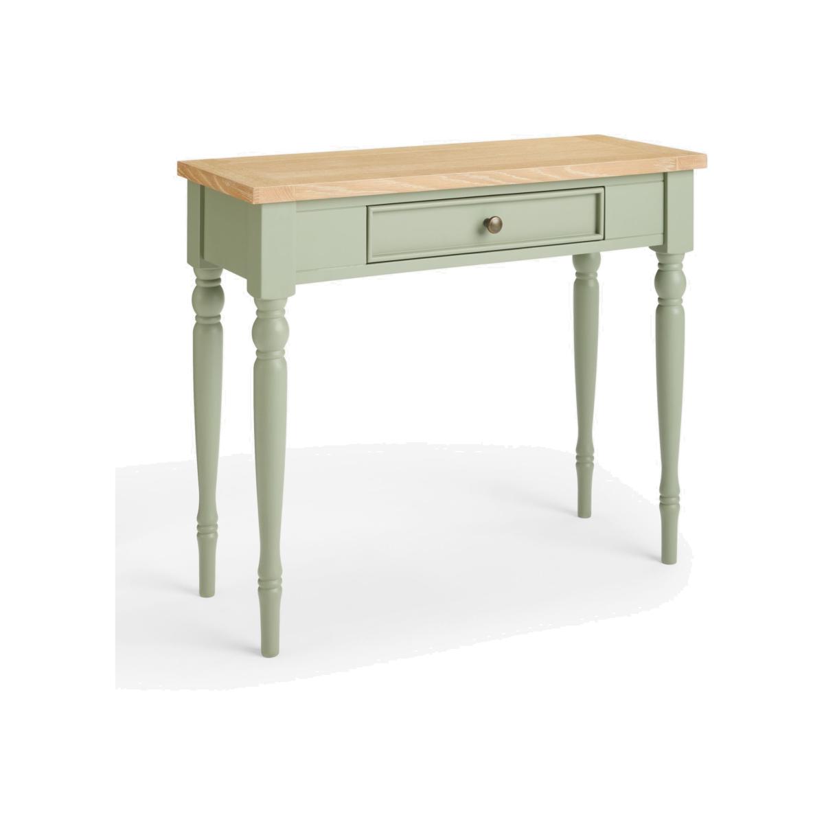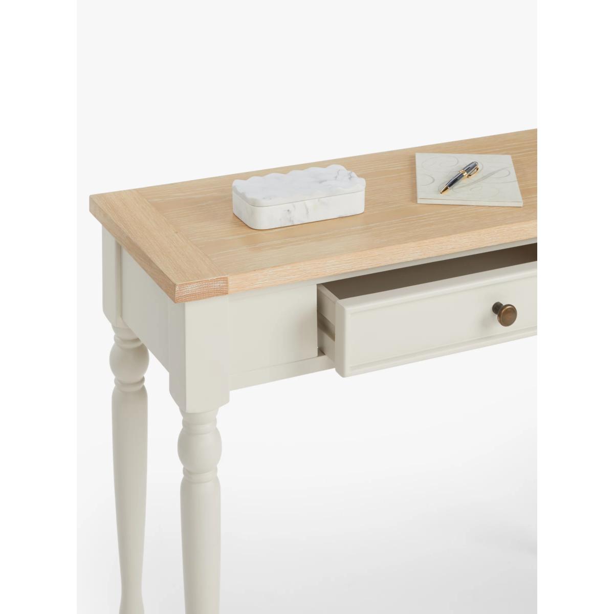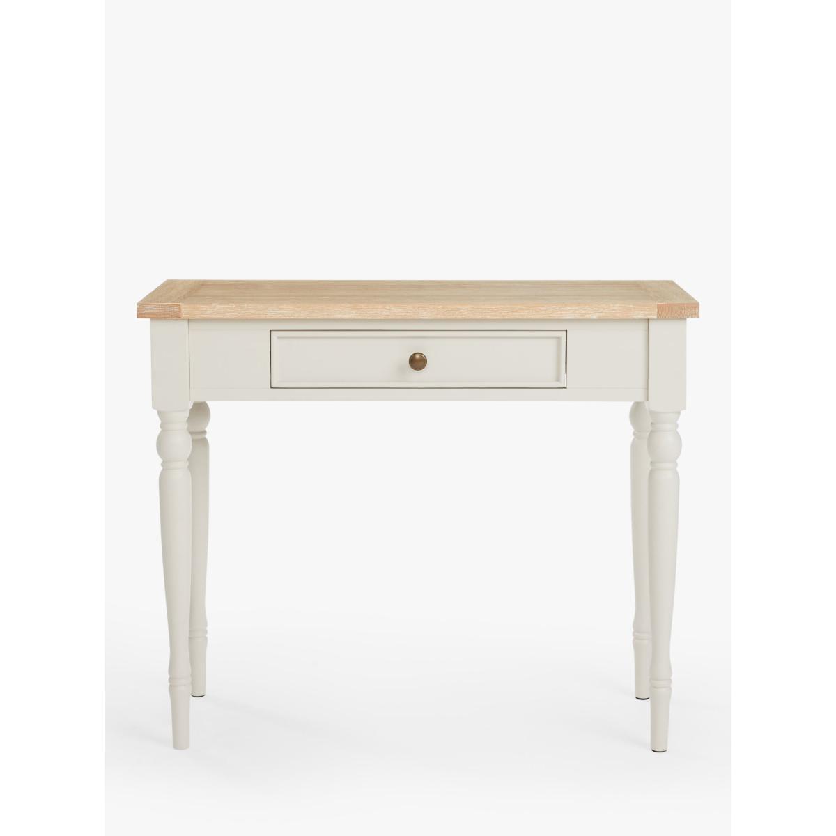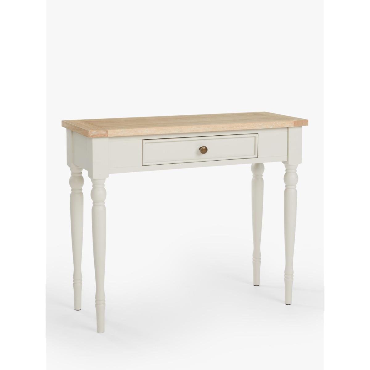 Our Foxmoor compact console table makes a useful addition to smaller hallway or living room spaces and comes with a drawer for storage. Foxmoor offers modern country style for a fresh and calming space you'll love to come home to. Details include hand-glazed oak veneer framed tops, elegantly turned legs and Shaker-style doors and drawers with beaded detailing. The hardwearing paint finish is beautifully complemented by aged brass effect handles and barrel hinges and coordinates well with other soft tones, as well as natural materials such as wicker and linen. All the wood used in our Foxmoor furniture range is FSC certified. By choosing this product you are supporting responsible management of the world's forests. The Forest Stewardship Council® (FSC®) is a global, not-for-profit organisation that helps take care of forests and the people and wildlife that call them home. To learn more, visit fsc.org. Want to see it first? You may want to see and get a feel for the furniture in one of our shops before ordering. We'll be able to tell you where the range you'd like to view is on display.