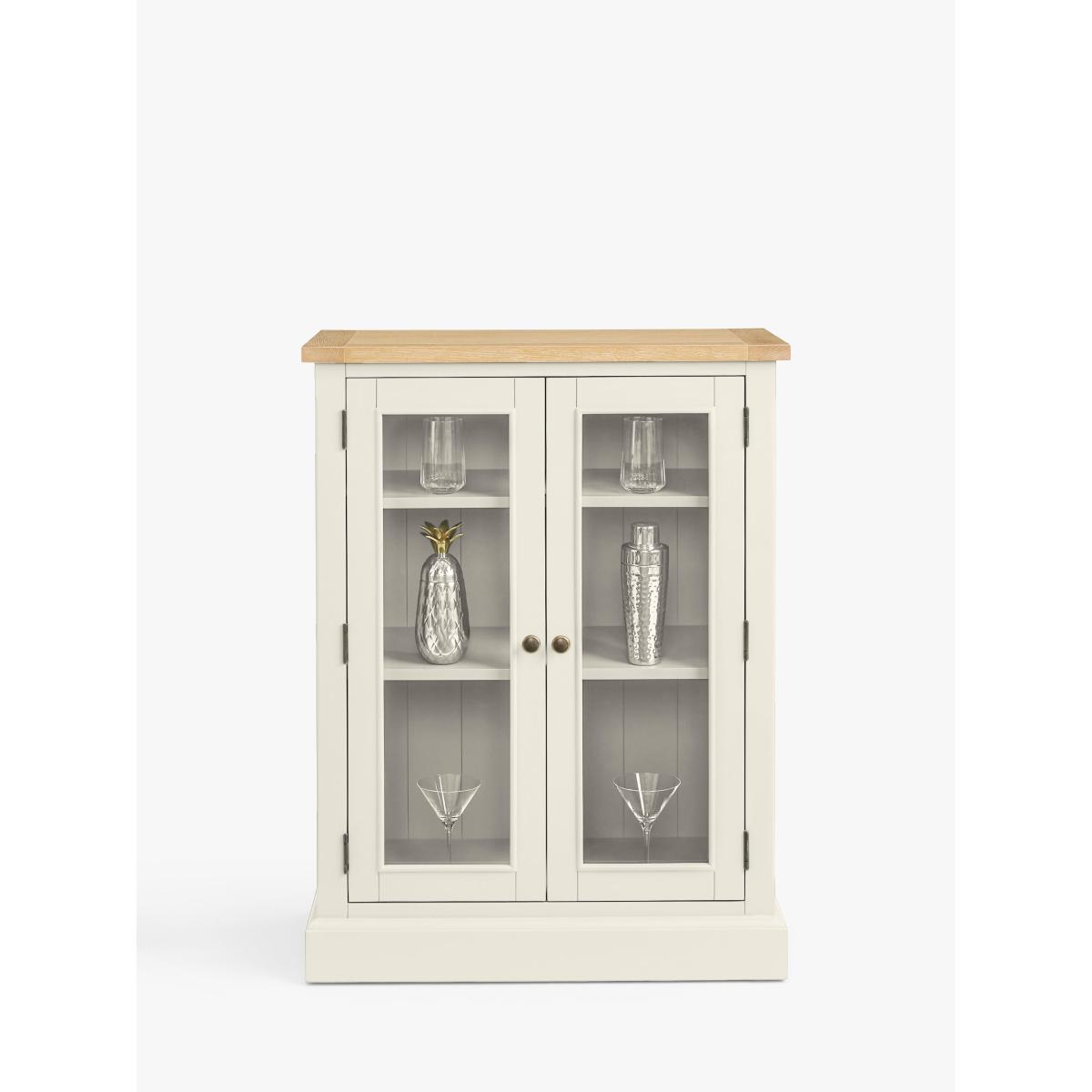 The Foxmoor drinks cabinet provides a neat, discreet way to store all your entertaining essentials including barware, glassware and decanters and features two fixed shelves. Foxmoor offers modern country style for a fresh and calming space you'll love to come home to. Details include hand-glazed oak veneer framed tops, elegantly turned legs and Shaker-style doors and drawers with beaded detailing. The hardwearing paint finish is beautifully complemented by aged brass effect handles and barrel hinges and coordinates well with other soft tones, as well as natural materials such as wicker and linen. All the wood used in our Foxmoor furniture range is FSC certified. By choosing this product you are supporting responsible management of the world's forests. The Forest Stewardship Council® (FSC®) is a global, not-for-profit organisation that helps take care of forests and the people and wildlife that call them home. To learn more, visit fsc.org. Want to see it first? You may want to see and get a feel for the furniture in one of our shops before ordering. We'll be able to tell you where the range you'd like to view is on display.