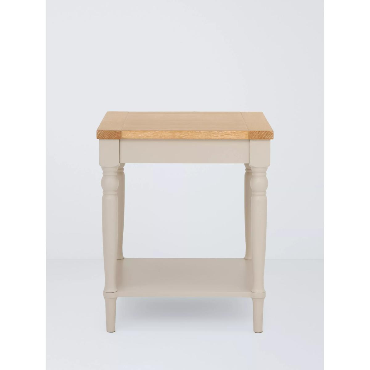 Our Foxmoor side table makes a useful addition to any room in your home. Use in the hallway, bedside the bed, or in the living room as a lamp table. It comes with a fixed shelf at the base. Foxmoor offers modern country style for a fresh and calming space you'll love to come home to. Details include hand-glazed oak veneer framed tops, elegantly turned legs and Shaker-style doors and drawers with beaded detailing. The hardwearing paint finish is beautifully complemented by aged brass effect handles and barrel hinges and coordinates well with other soft tones, as well as natural materials such as wicker and linen. All the wood used in our Foxmoor furniture range is FSC certified. By choosing this product you are supporting responsible management of the world's forests. The Forest Stewardship Council® (FSC®) is a global, not-for-profit organisation that helps take care of forests and the people and wildlife that call them home. To learn more, visit fsc.org. Want to see it first? You may want to see and get a feel for the furniture in one of our shops before ordering. We'll be able to tell you where the range you'd like to view is on display.