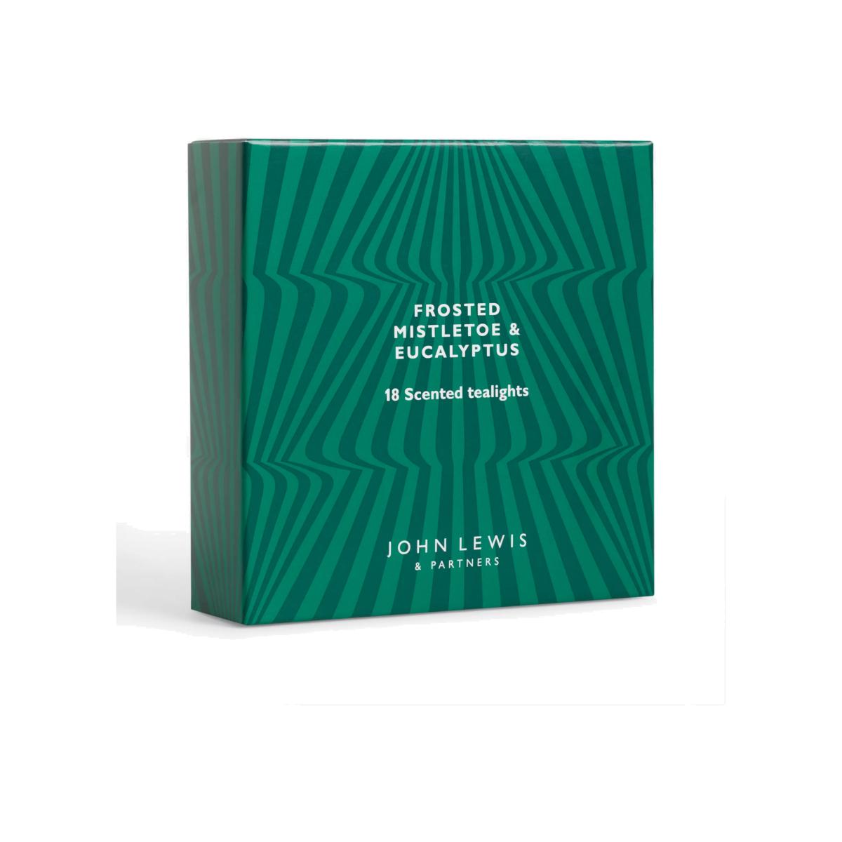 John Lewis Frosted Mistletoe & Eucalyptus Scented Tealights, Pack of 18
