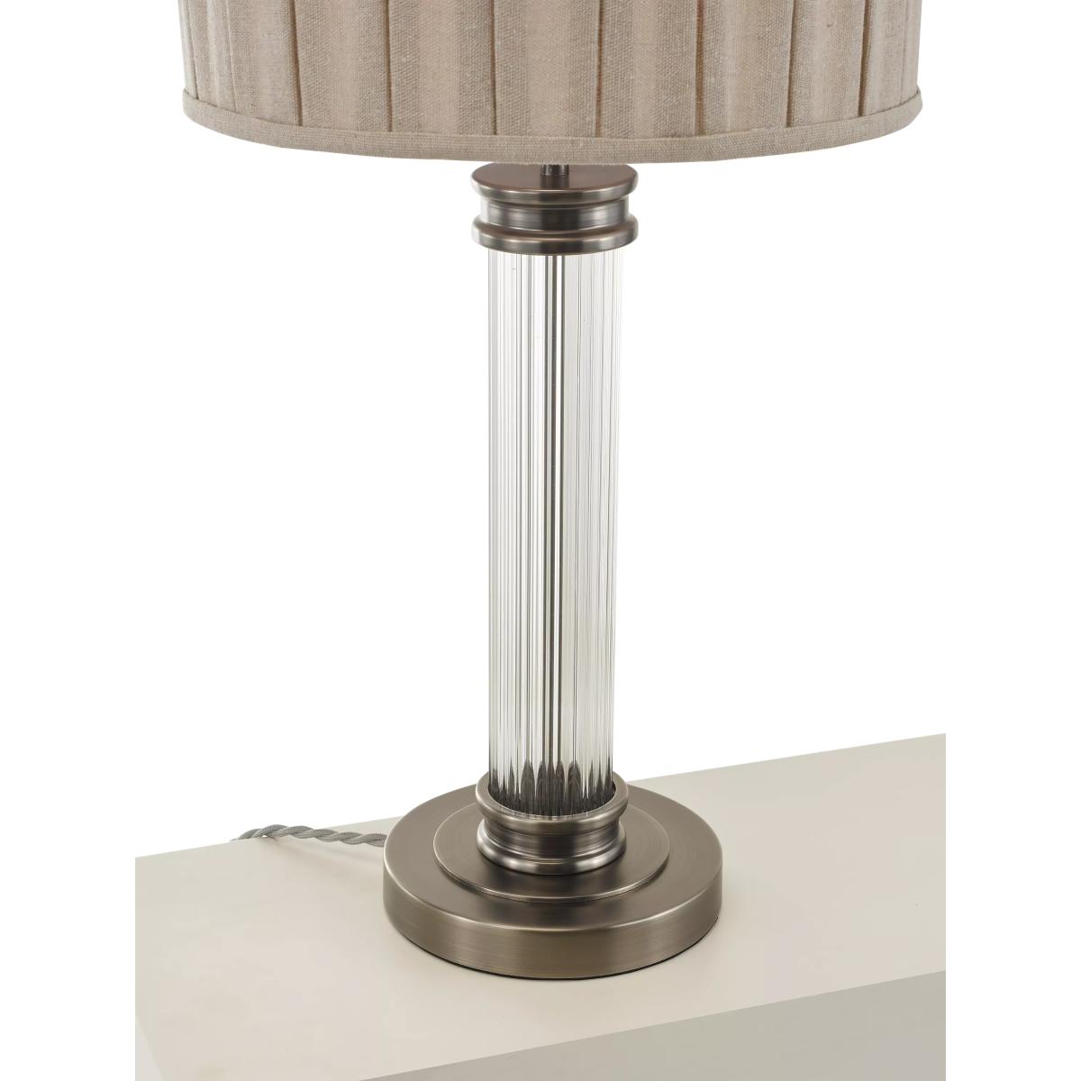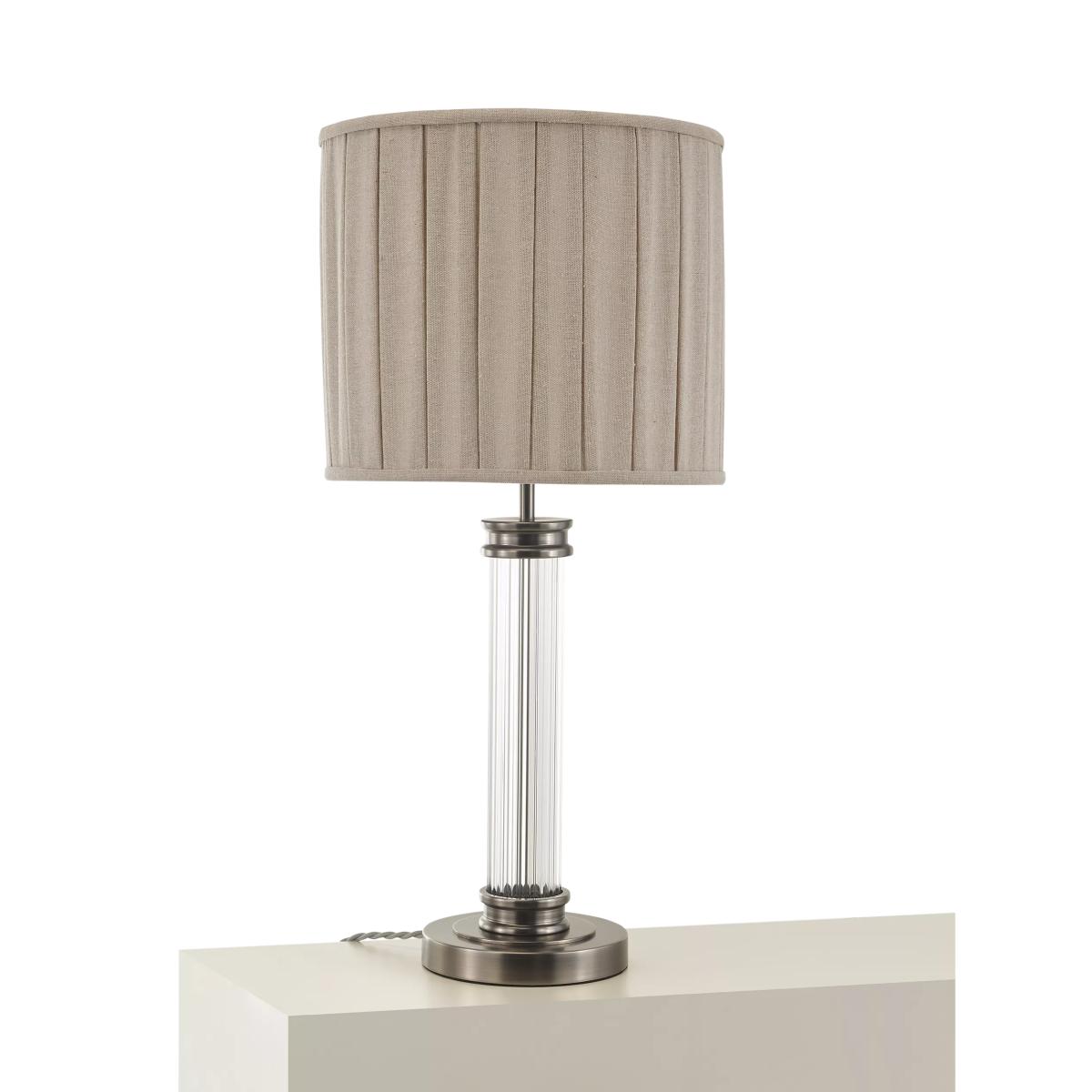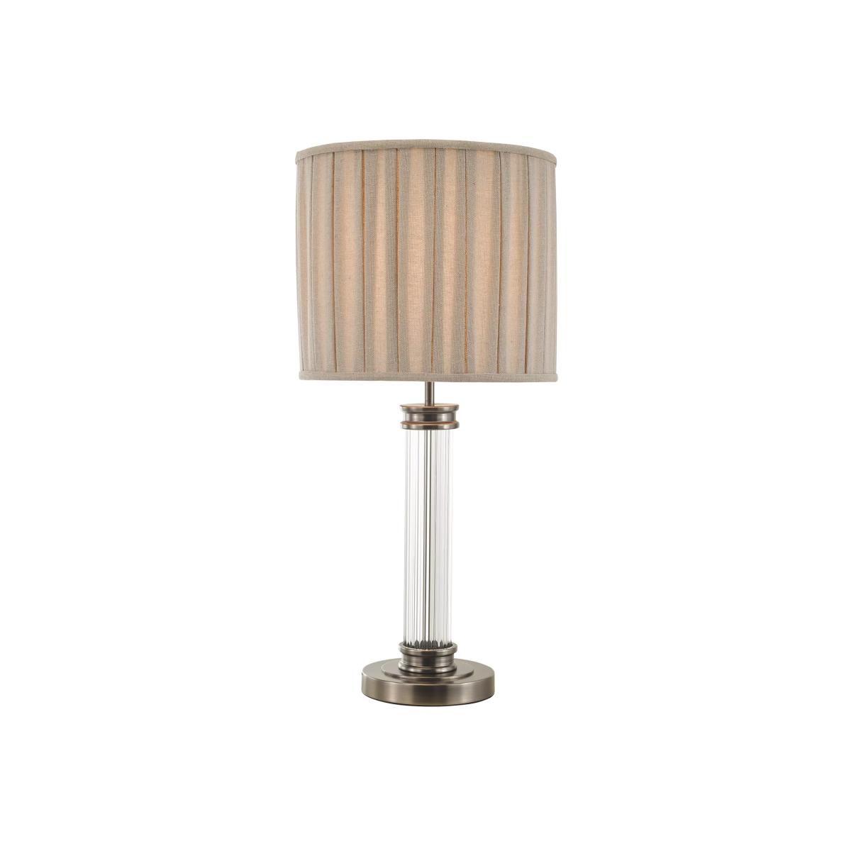 This rib glass table lamp includes contrasting aged pewter metal and a pleated linen lampshade. Coordinates well with other lights in the Gatsby range, for a coordinated look or as a stand alone piece.