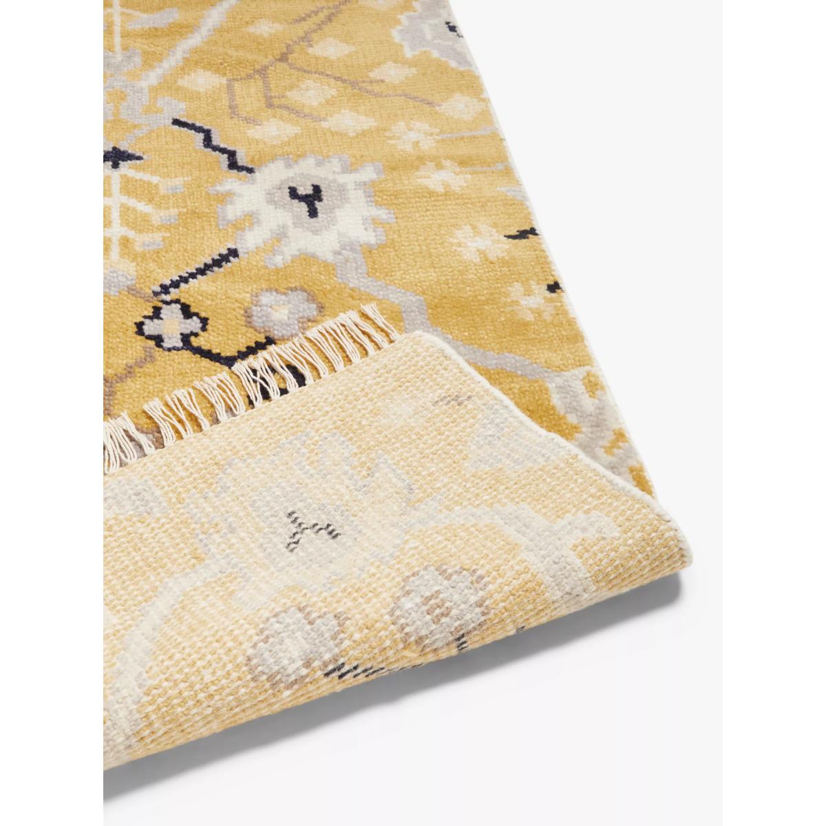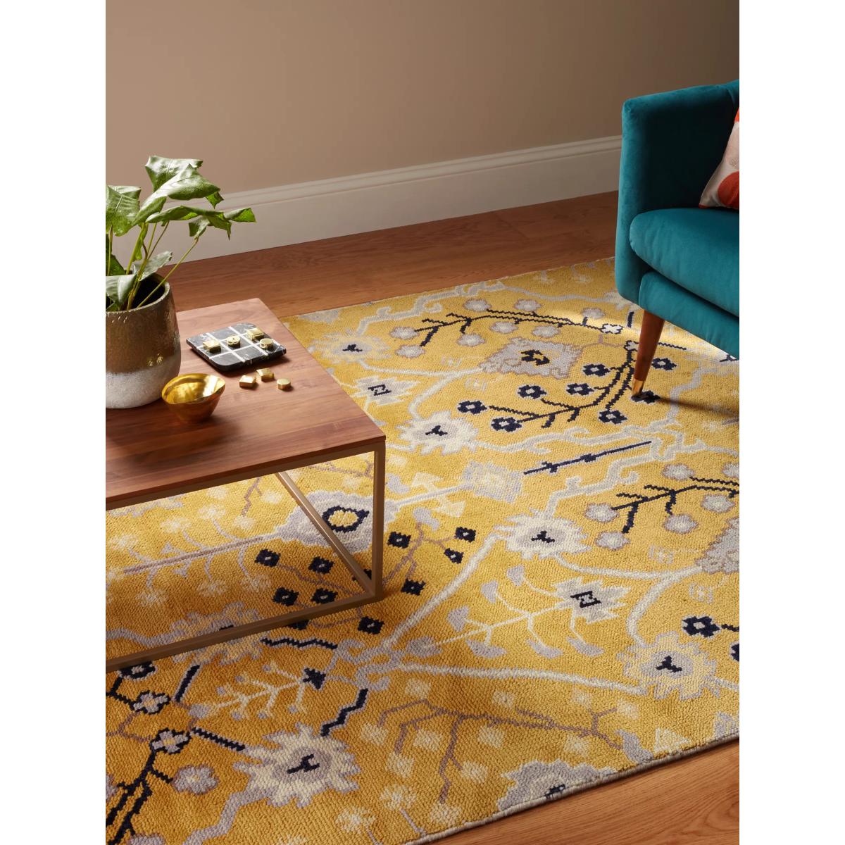 Combining the effortlessly majesty of traditional rug design with a modern and charming floral pattern, we created this rug to add just a hint of colour to your home. Made from pure wool for an unmistakably warming feel underfoot, it's finished with timeless tassels at either end. This rug has been knotted by hand, the oldest and most individual way a rug can be made. This involves an intricate process of weaving by hand on a loom where yarns are tied one at a time, giving the rug a durable construction. About your new rug We recommend John Lewis & Partners Rug Hold Underlay. It prevents your rug from moving underfoot and protects against colour transfer to the floor Natural fibres may shed. This will reduce over time, and shouldn't affect your rug's lifespan or performance When vacuuming your rug, use suction only. Rotating brushes may damage the fibres Blot any spills with a clean, dry cloth. Do not rub or use harsh detergents. Textile backed