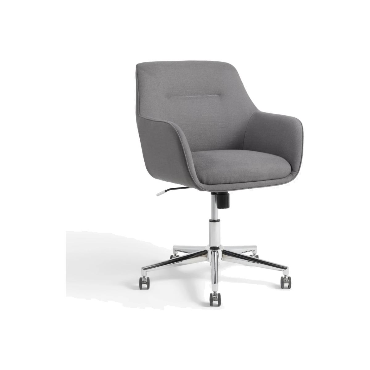 Create a 70s retro vibe in your home office with this grey, fabric-covered swivel chair. the comfy and supportive seat and backrest make it suitable for a full 8-hour working day. Wearing a crimplene suit and using a dial phone while you do it is entirely optional! Protect your floor For added protection to your floor and furniture, we recommend using floor pads or mats where possible. Want to see it first? You may want to see and get a feel for the furniture in one of our shops before ordering. We'll be able to tell you where the range you'd like to view is on display.
