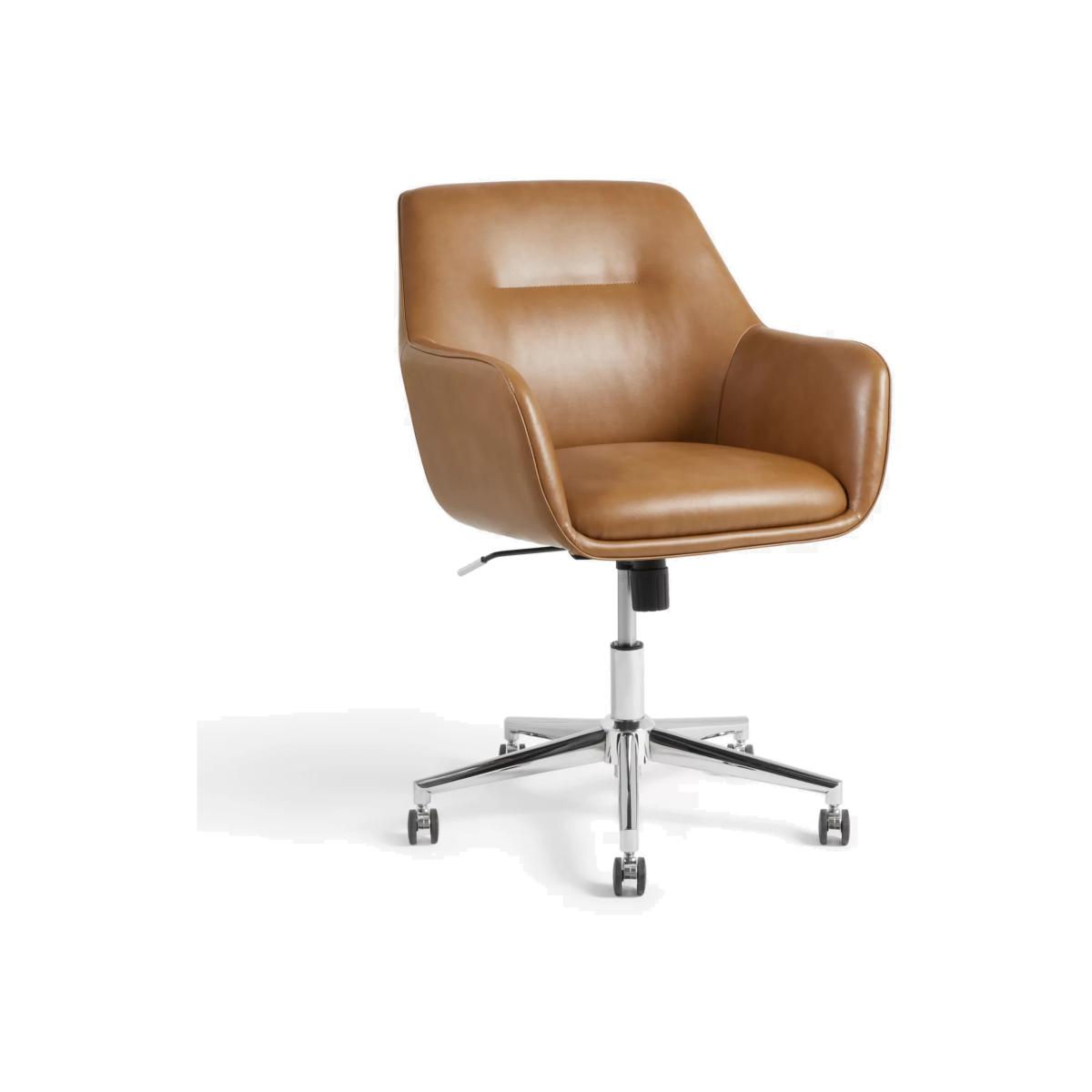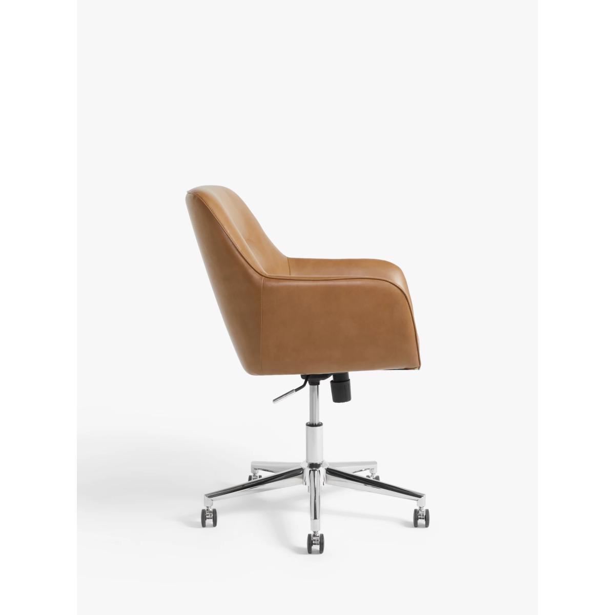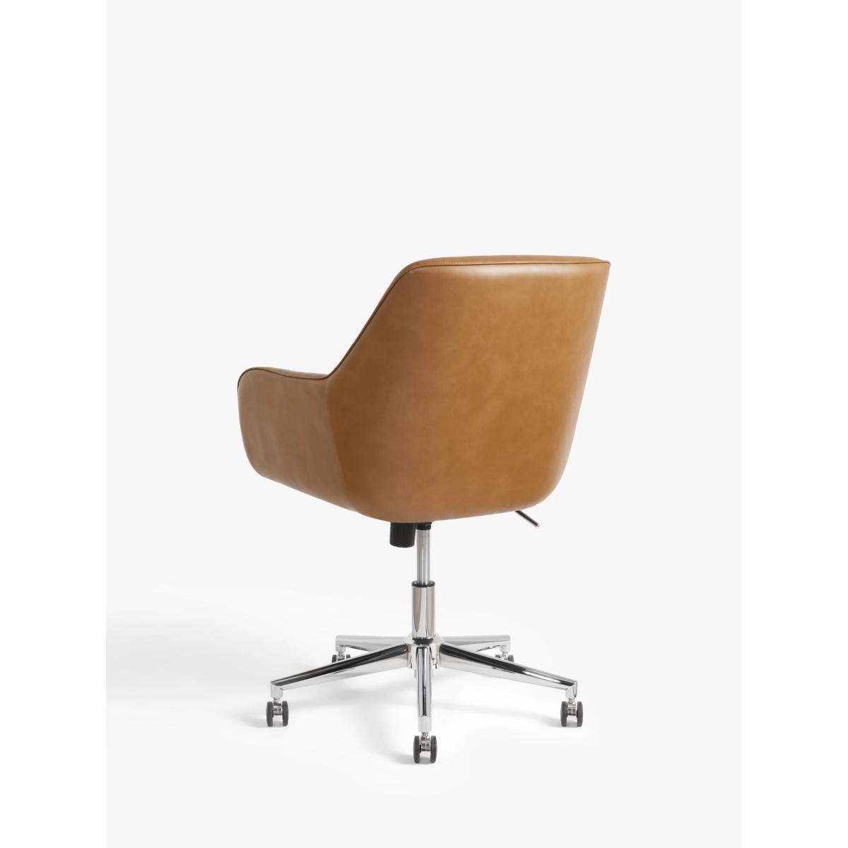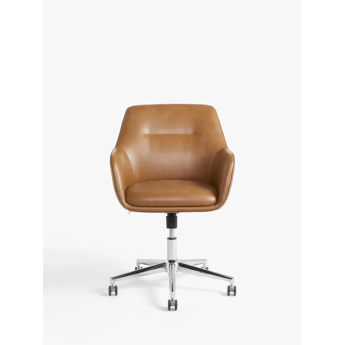 Create a 70s retro vibe in your home office with this tan, leather-look swivel chair. the comfy and supportive seat and backrest make it suitable for a full 8-hour working day. Wearing a crimplene suit and using a dial phone while you do it is entirely optional! Protect your floor For added protection to your floor and furniture, we recommend using floor pads or mats where possible. Want to see it first? You may want to see and get a feel for the furniture in one of our shops before ordering. We'll be able to tell you where the range you'd like to view is on display.