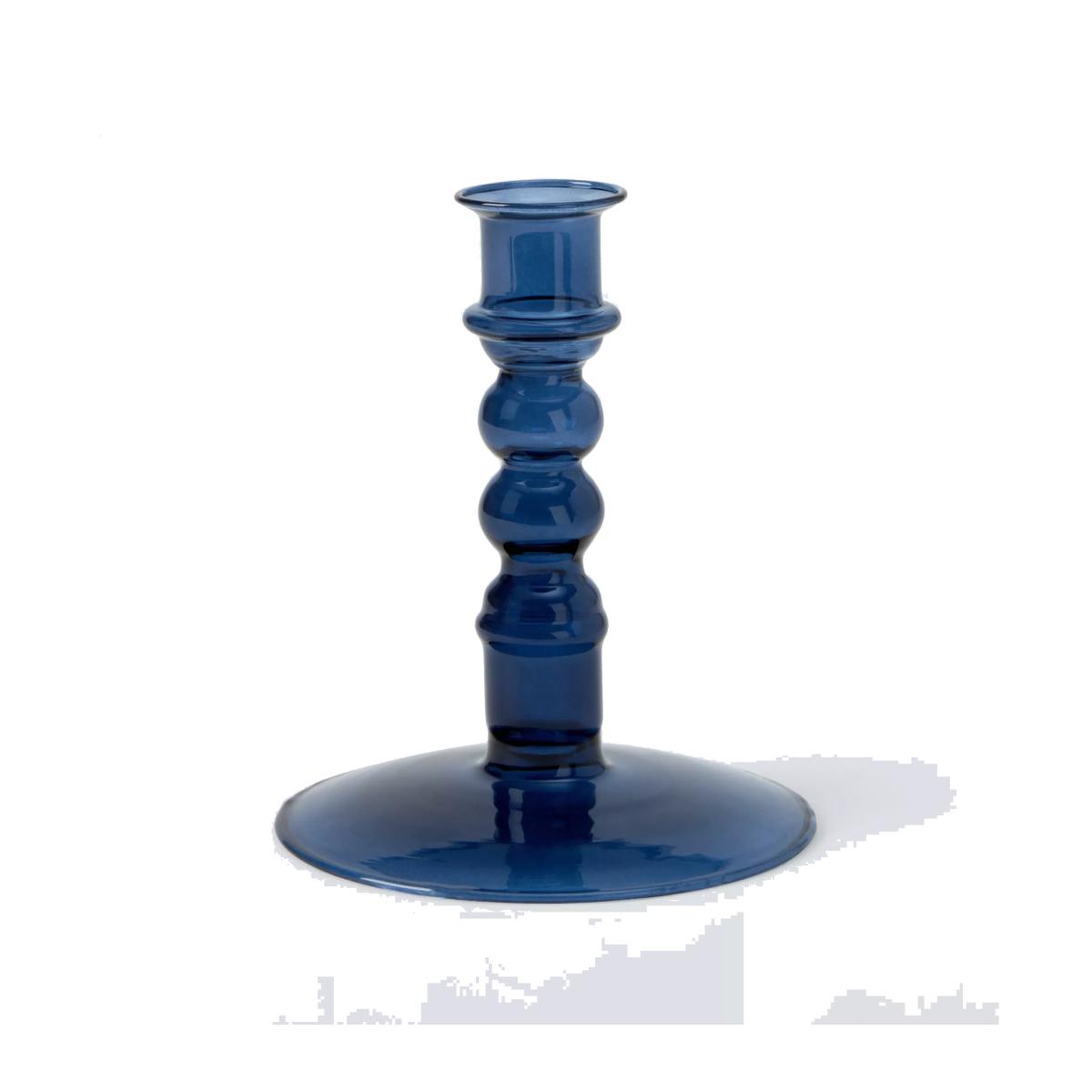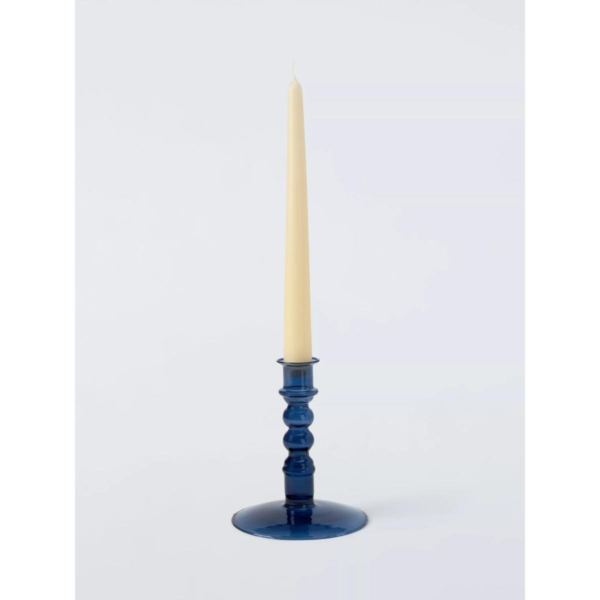 John Lewis Glass Bobbin Candle Holder, H14 cm, Navy