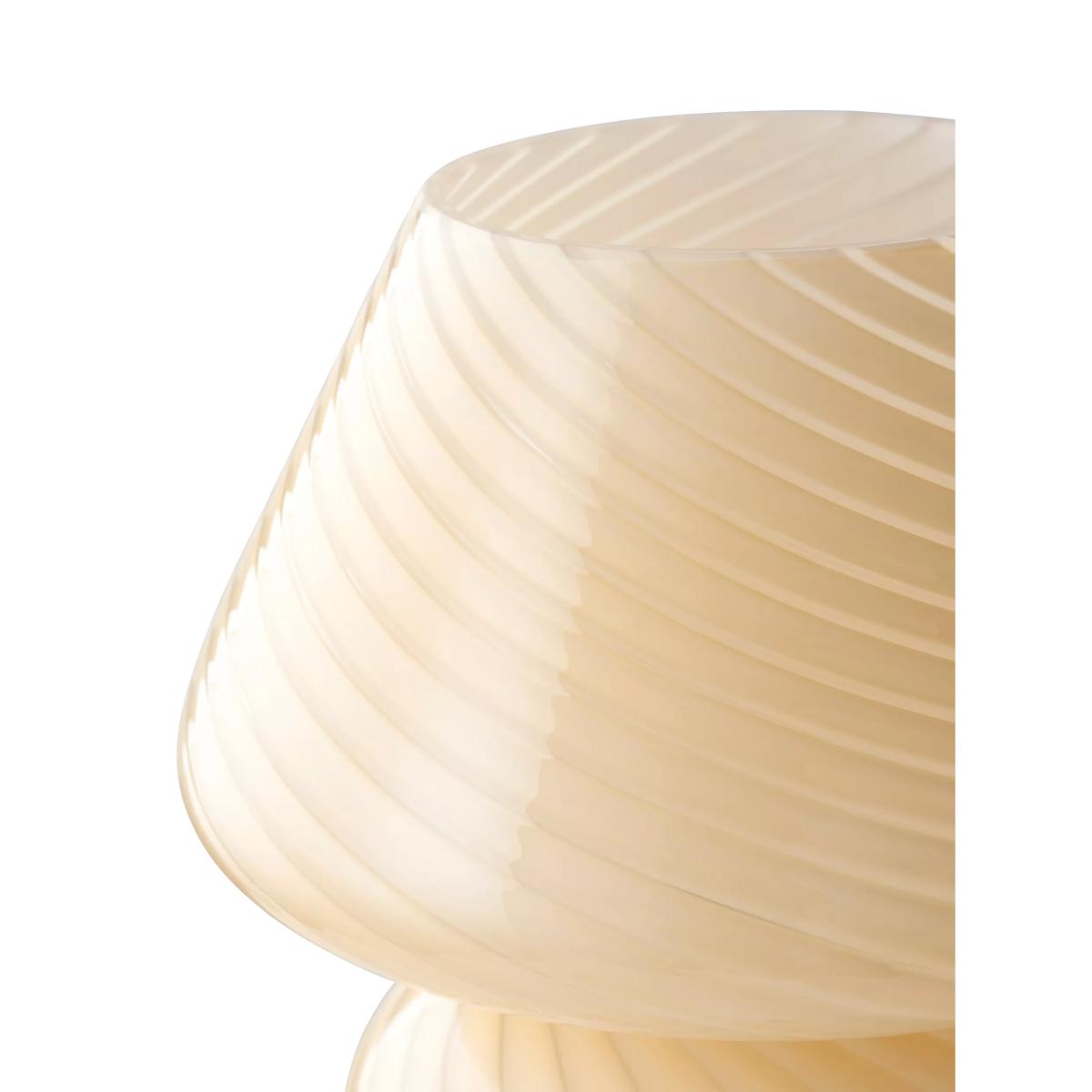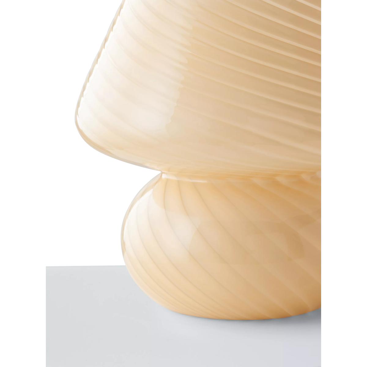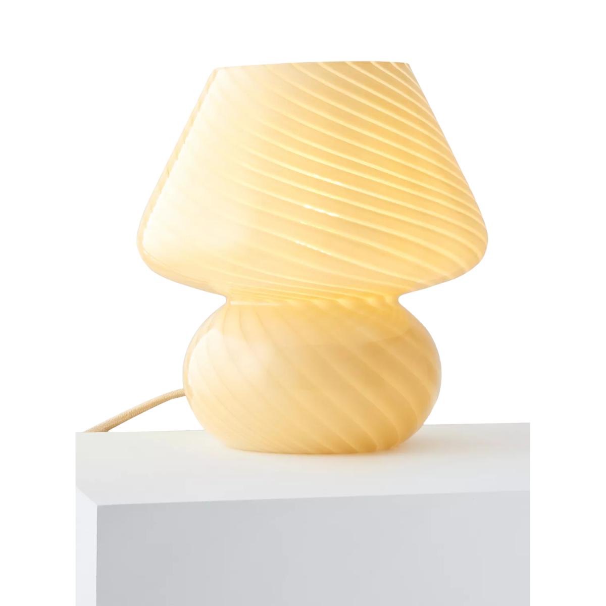 Embrace the retro trend with our classic Glass Mushroom Table Lamp. Great for illuminating your living space and available in a range of fresh colours. Its distinctive mushroom shape, adorned with swirl detailing on the glass shade and base, serves as a stylish focal point for any room.