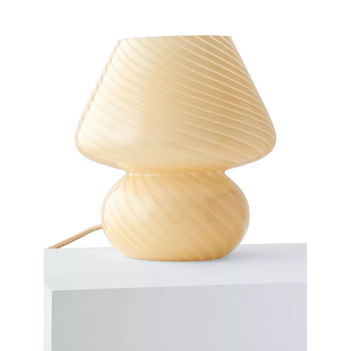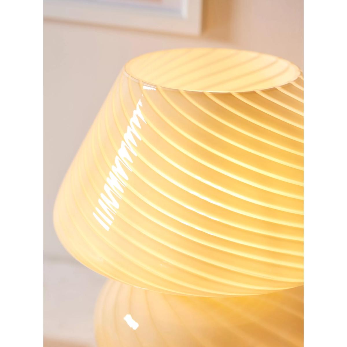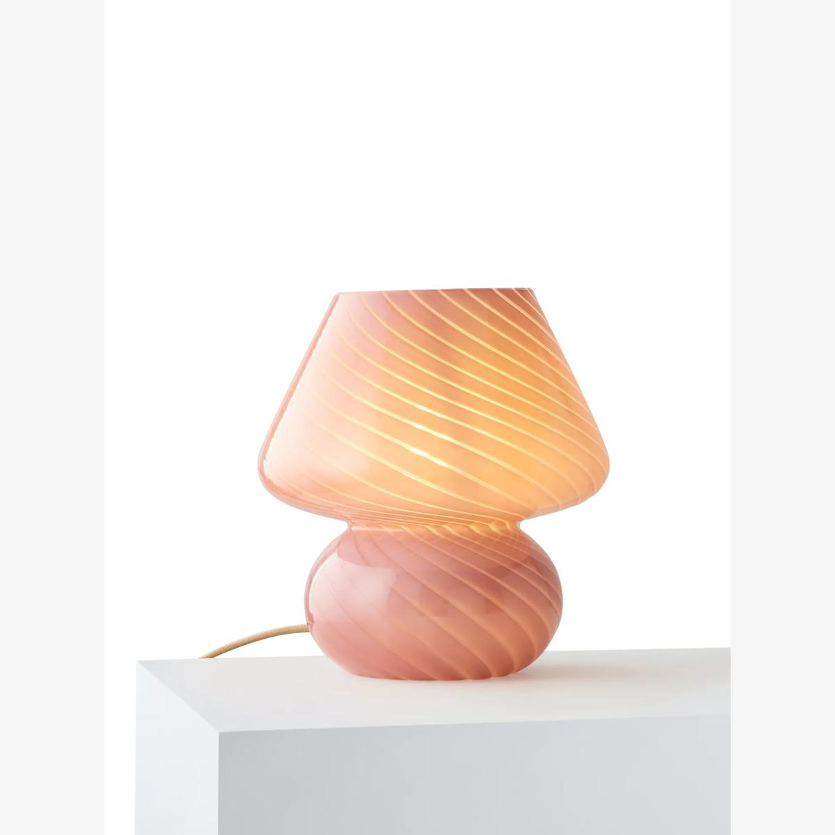 Embrace the retro trend with our classic Glass Mushroom Table Lamp. Great for illuminating your living space and available in a range of fresh colours. Its distinctive mushroom shape, adorned with swirl detailing on the glass shade and base, serves as a stylish focal point for any room.