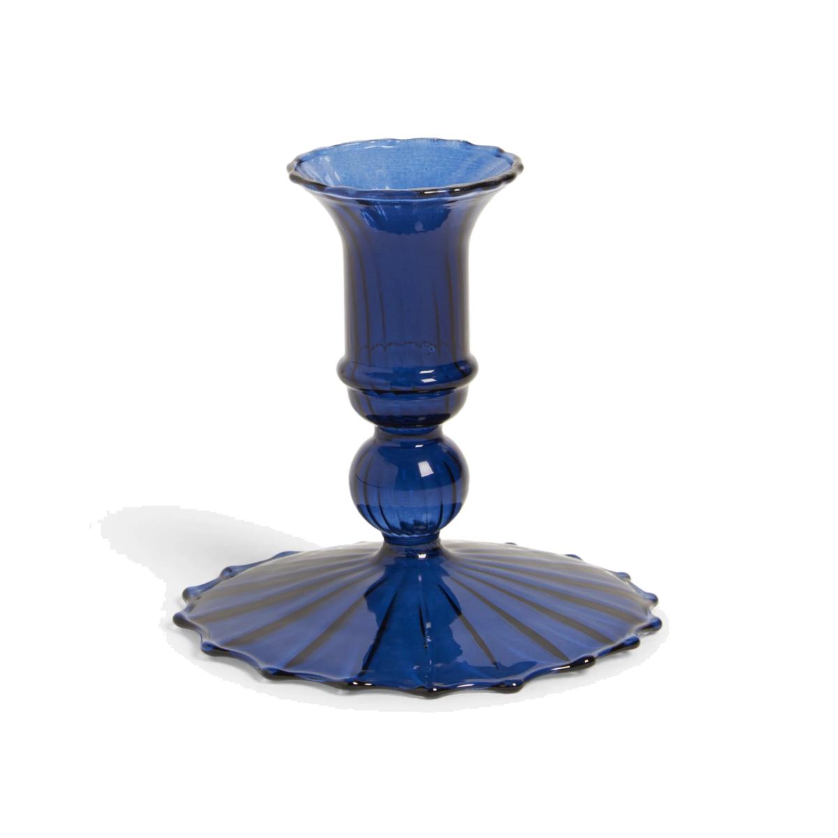 I love this little blue candle holder for its sleek, understated elegance. Its short bobbin design is versatile and adds a touch of vintage charm, making it suitable for both traditional and contemporary interiors. It works particularly well styled in clusters on a dining table or sideboard, combined with other glassware for an eclectic look, or as a standalone statement piece on a shelf. Practical styling tips include using it with tapered candles for a cosy feel, or mixing it with metallic accents or neutral ceramics to elevate its colour without overpowering the space. Overall, it’s a simple yet stylish accessory that brings warmth and character to any room.