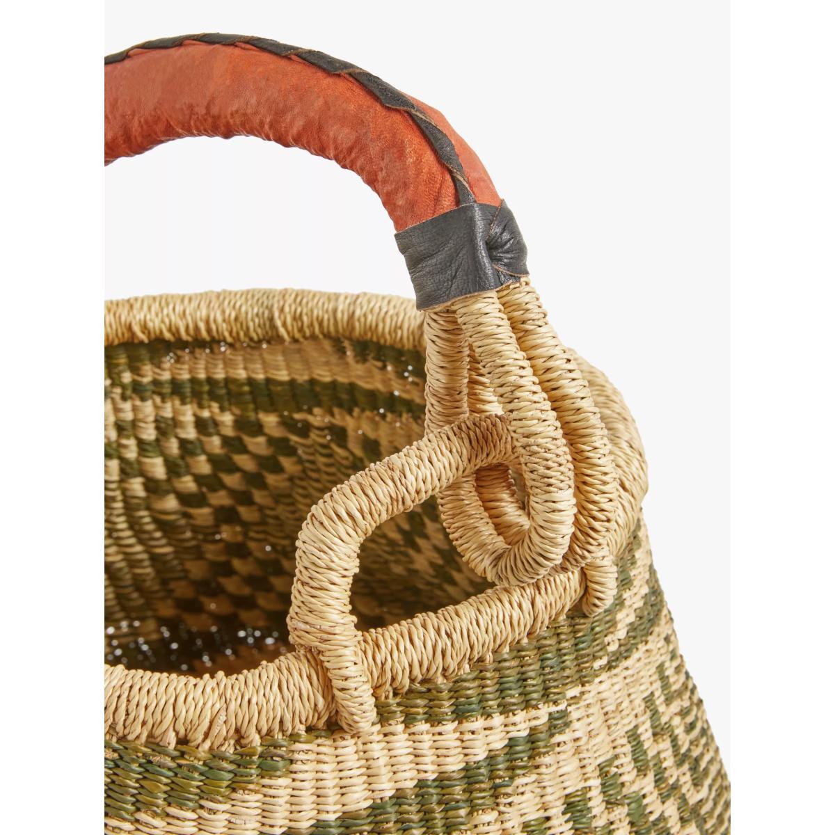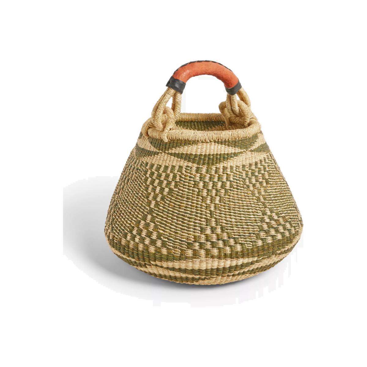 The Golba Refresh basket is a multi-purpose storage container. It can be used to store fruits - fresh or dried, vegetables, clothing, clothing accessories and more up to a maximum weight of 15kg. It's woven using elephant grass from North African grasslands. This material holds vibrant colours that artisans use to create decorative yet durable pieces using traditional weaving techniques from Ghana villages. We've worked with Partner Africa to ensure working conditions are fair. This allows the artisans in the villages to sustain their weaving businesses and teach the women weavers many life skills. In the event that this basket loses its original shape owing to packing or other reasons, please follow the actions below to reshape it: Spray or sprinkle the affected parts of the basket with ordinary water Push out with your fist the sprayed areas, from inside the basket, to the original shape Leave the reshaped basket to dry