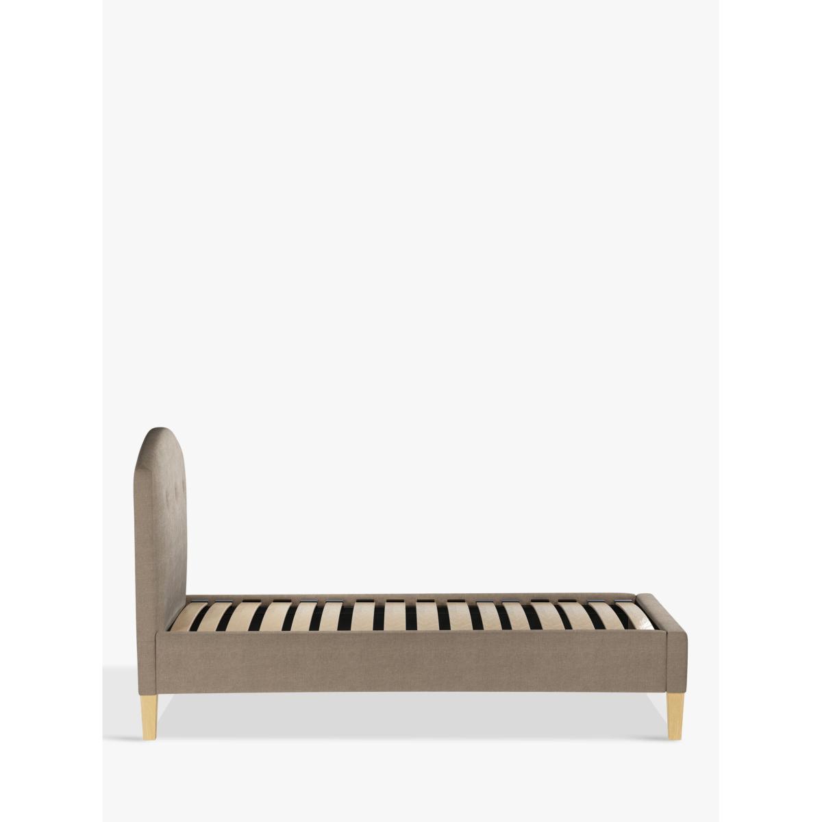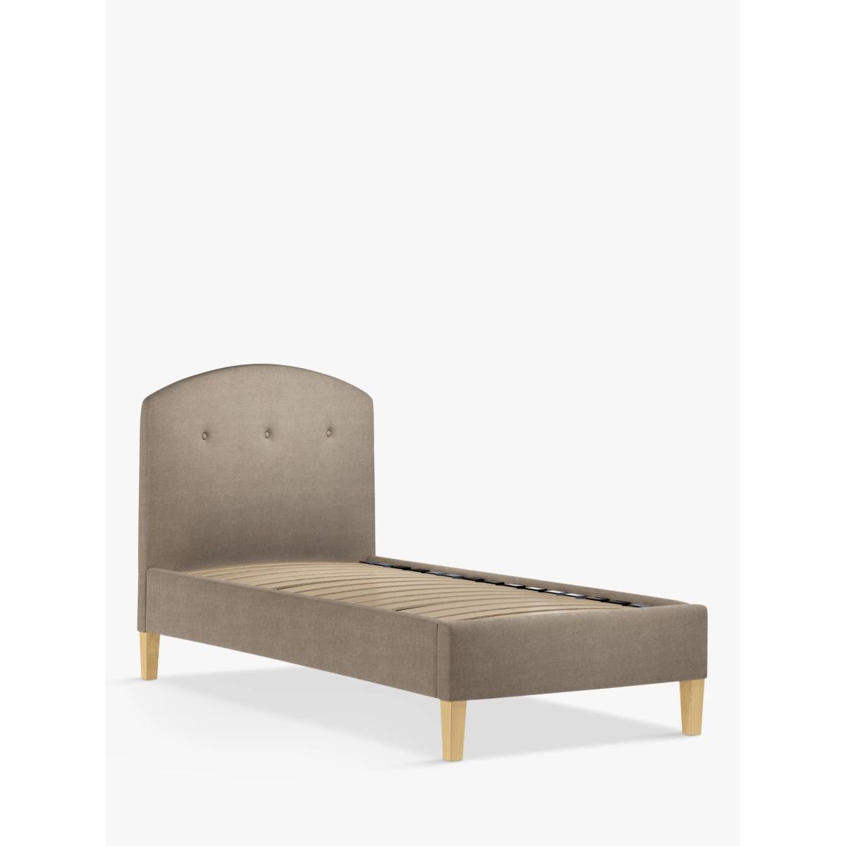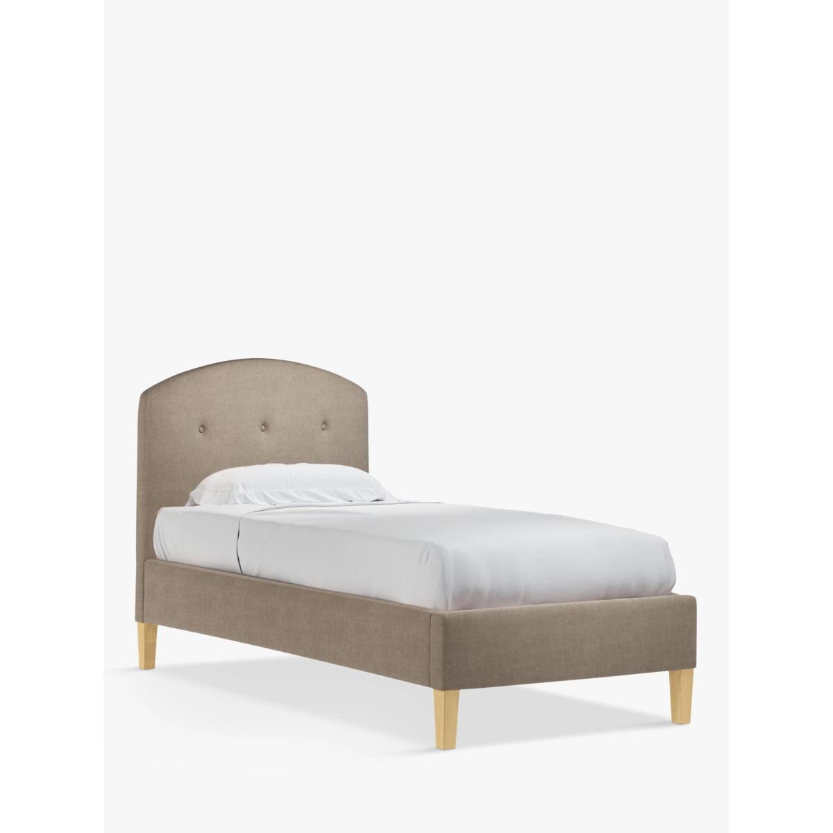 The Grace bed frame has an understated sophistication to its design, thanks to button detailing on its curved headboard. Featuring sprung slats that offer additional support for you and your mattress, it's supported by robust wooden legs for a durable finish. Built with Smart Slats This bed frame is designed with wider slats at the shoulders, lumbar and feet. They provide maximum support for you and your mattress so that you experience perfect spinal alignment while you sleep. The standard slat caps are black so we have added grey slat caps to ensure that you know where to place the wider slats. Choose from one of our fabrics: Our Band A fabric, Cotton Effect has a laid-back and fine-textured look that looks like cotton, but it's made from durable polyester fibres Our Band A fabric, Brushed Tweed is made with a brushed herringbone weave that has a cosy wool look and soft 'peach skin' feel. It's really hard-wearing and a brilliant all-rounder Our Band A fabric, Soft Weave has a casual cotton look with a brushed finish that's soft-to-touch and a suble texture that's created by slight variations in the tones of the woven fibres Our Band B fabric, Deep Velvet will bring warmth and luxury to your bedroom. It's a short pile velvet with a soft, plush feel Our Band B fabric, Soft Touch Chenille is made from a blend of fibres that give it a super-soft feel and added durability Our Band B fabric, Boucle is luxe and oh-so cosy. This plush knitted fabric is super-soft and durable with a thick texture that calls for comfort Our Band B fabric, Deep Velvet will bring warmth and luxury to your bedroom. It's a short pile velvet with a soft, plush feel Our Band B fabric, Mole is a soft and cosy woven wool-blend. Piling and bobbling may occur naturally over time Our Band B fabric, Cord is rich in texture and available in neutral shades that will suit every space. Our Band B fabric, Relaxed Linen gives you the fine texture of cotton, the durability of synthetic fibres and the laid-back look of linen Our Band C fabric, Marylamb is woven from both man-made and natural fibres, creating a tactile and soft-touch feel. Our Band C fabric, Aquaclean Velvet will liven up your bedroom. It's plush, available in a range of bold colours and treated with Aquaclean so that it can be wiped clean with just water. A smart choice for families and those with pets Worth Knowing: Child Compliant bed frames This bed conforms to BS 8509:2008+A1:2011 (Childrens beds for domestic use. Safety requirements and test methods). We recommend it is used with a standard single mattress, L190 x W90cm. Not suitable for children under the age of 4 years. Want to see it first? You may want to see and get a feel for the furniture before ordering. Pop into one of our shops to see the full range of colours and fabrics on offer. We'll be able to tell you where the range you'd like to view is on display.