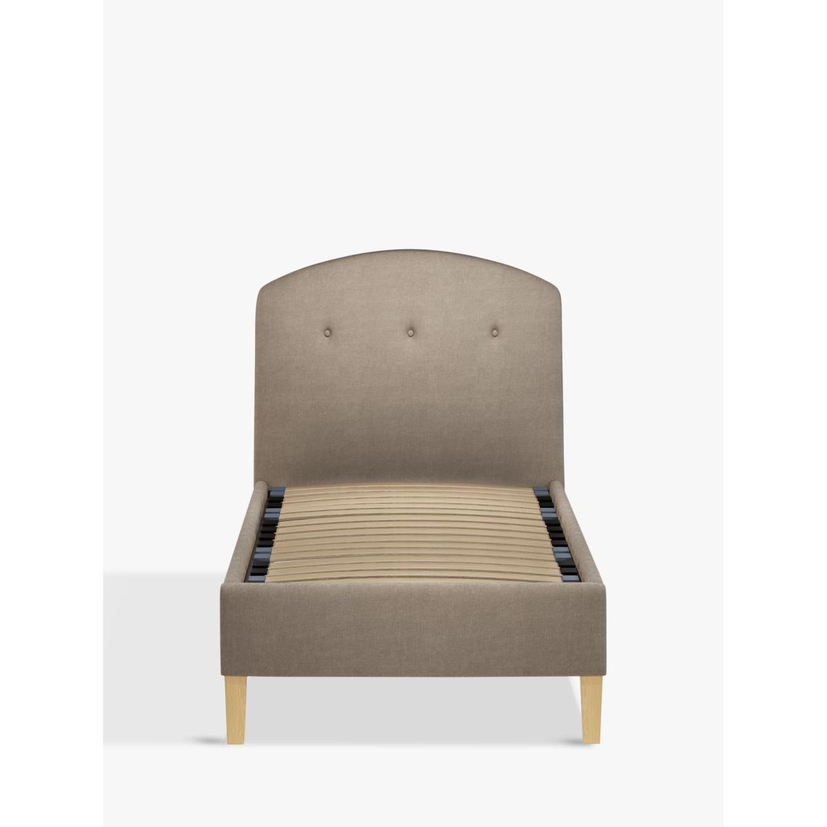 The Grace bed frame has an understated sophistication to its design, thanks to button detailing on its curved headboard. Featuring sprung slats that offer additional support for you and your mattress, it's supported by robust wooden legs for a durable finish. Built with Smart Slats This bed frame is designed with wider slats at the shoulders, lumbar and feet. They provide maximum support for you and your mattress so that you experience perfect spinal alignment while you sleep. The standard slat caps are black so we have added grey slat caps to ensure that you know where to place the wider slats. Choose from one of our fabrics: Our Band A fabric, Cotton Effect has a laid-back and fine-textured look that looks like cotton, but it's made from durable polyester fibres Our Band A fabric, Brushed Tweed is made with a brushed herringbone weave that has a cosy wool look and soft 'peach skin' feel. It's really hard-wearing and a brilliant all-rounder Our Band A fabric, Soft Weave has a casual cotton look with a brushed finish that's soft-to-touch and a suble texture that's created by slight variations in the tones of the woven fibres Our Band B fabric, Deep Velvet will bring warmth and luxury to your bedroom. It's a short pile velvet with a soft, plush feel Our Band B fabric, Soft Touch Chenille is made from a blend of fibres that give it a super-soft feel and added durability Our Band B fabric, Boucle is luxe and oh-so cosy. This plush knitted fabric is super-soft and durable with a thick texture that calls for comfort Our Band B fabric, Deep Velvet will bring warmth and luxury to your bedroom. It's a short pile velvet with a soft, plush feel Our Band B fabric, Mole is a soft and cosy woven wool-blend. Piling and bobbling may occur naturally over time Our Band B fabric, Cord is rich in texture and available in neutral shades that will suit every space. Our Band B fabric, Relaxed Linen gives you the fine texture of cotton, the durability of synthetic fibres and the laid-back look of linen Our Band C fabric, Marylamb is woven from both man-made and natural fibres, creating a tactile and soft-touch feel. Our Band C fabric, Aquaclean Velvet will liven up your bedroom. It's plush, available in a range of bold colours and treated with Aquaclean so that it can be wiped clean with just water. A smart choice for families and those with pets Worth Knowing: Child Compliant bed frames This bed conforms to BS 8509:2008+A1:2011 (Childrens beds for domestic use. Safety requirements and test methods). We recommend it is used with a standard single mattress, L190 x W90cm. Not suitable for children under the age of 4 years. Want to see it first? You may want to see and get a feel for the furniture before ordering. Pop into one of our shops to see the full range of colours and fabrics on offer. We'll be able to tell you where the range you'd like to view is on display.