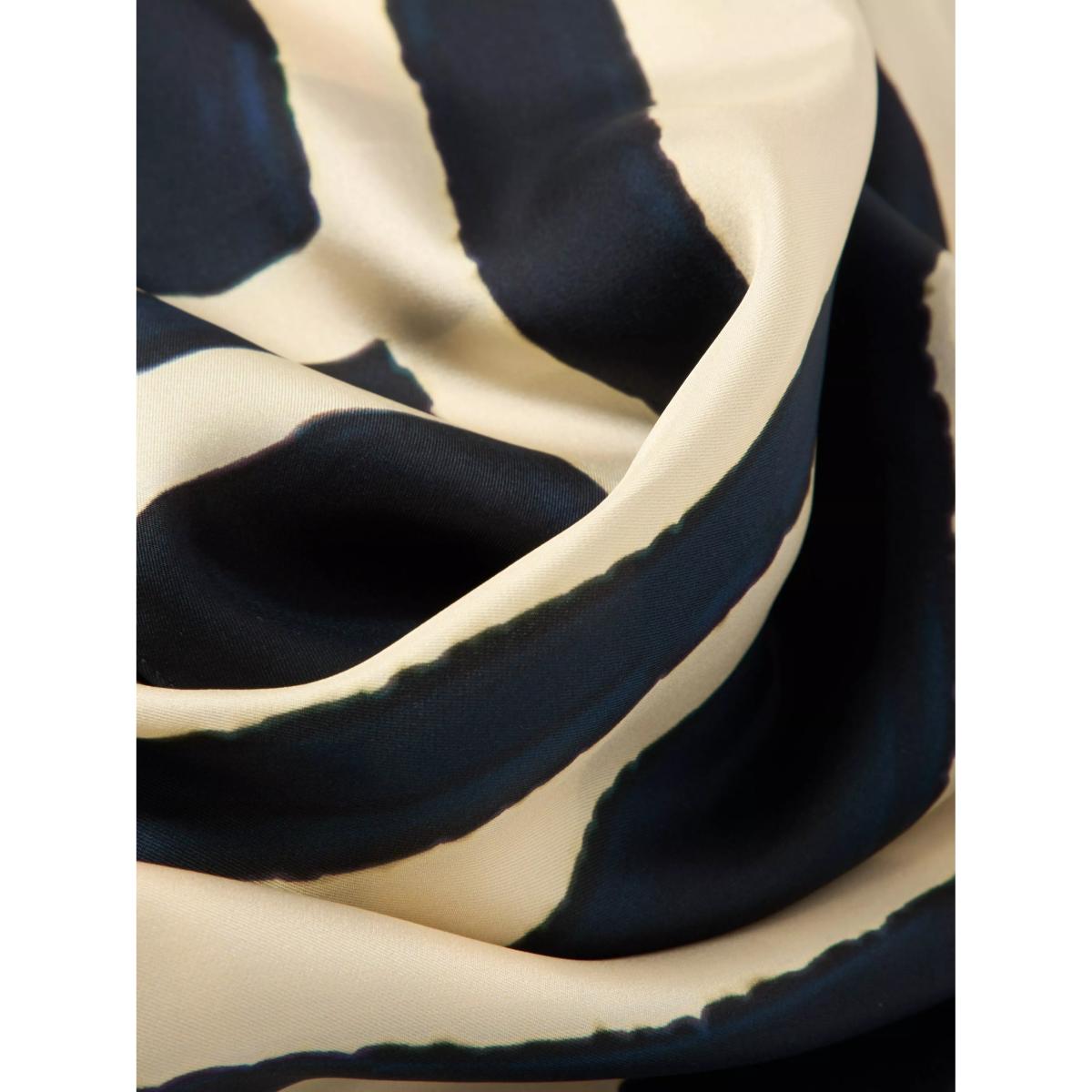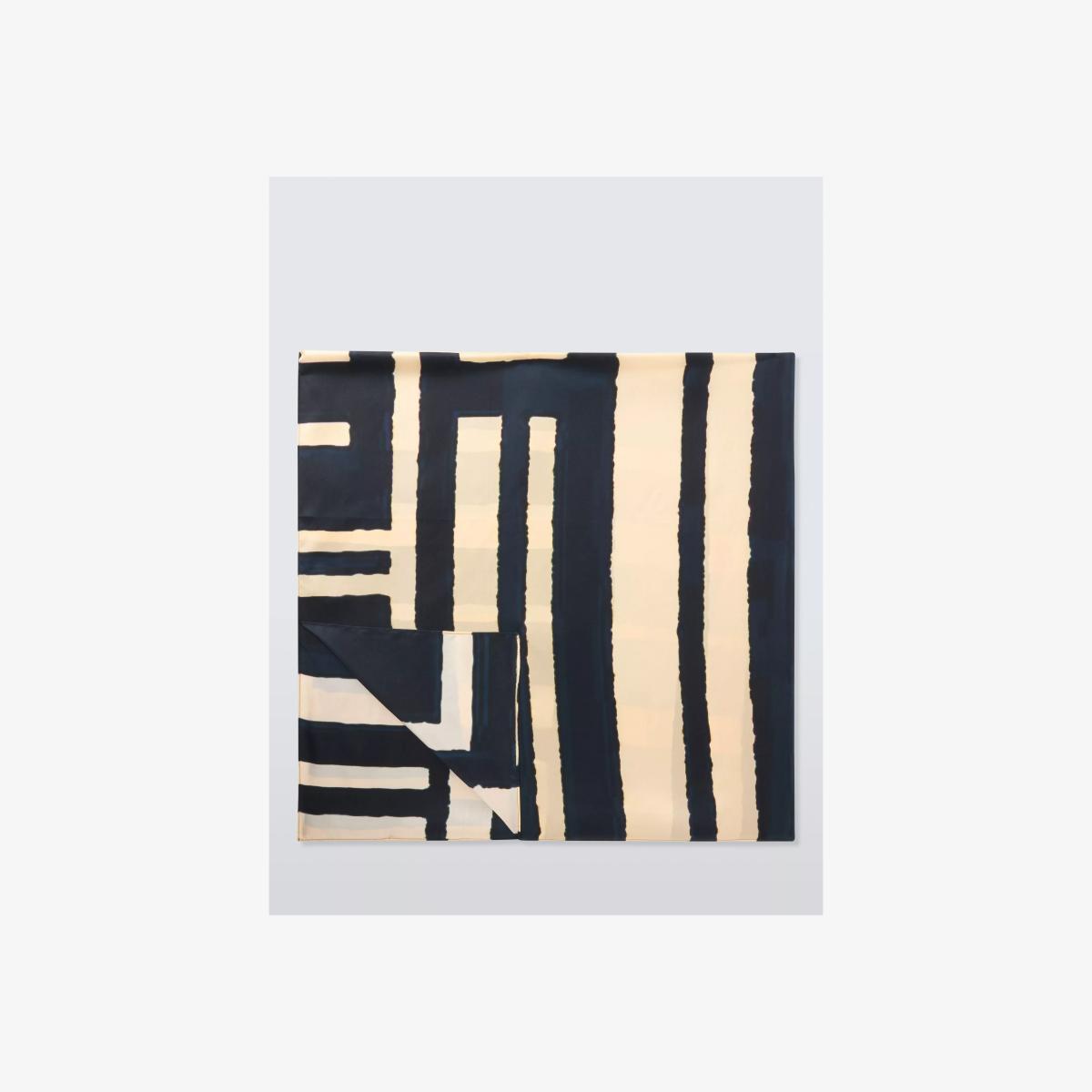 Square silk scarf with a monochrome graphic design to add pattern to an outfit.