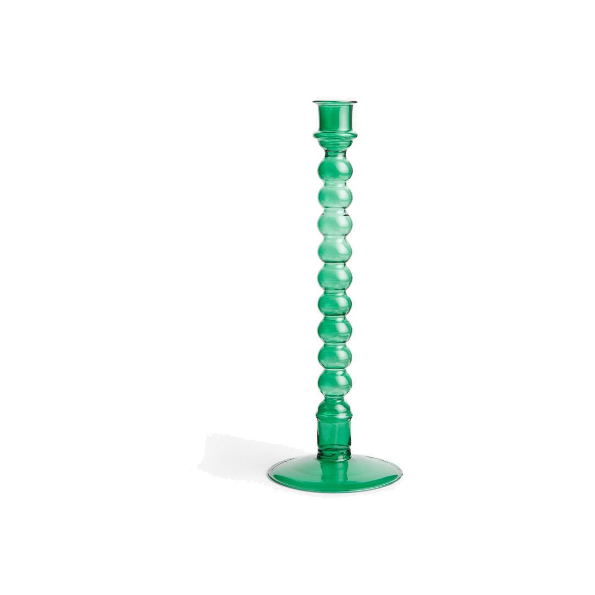 A modern and colourful addition to your home, we designed this candlestick holder in an intriguing curved design in 100% glass.