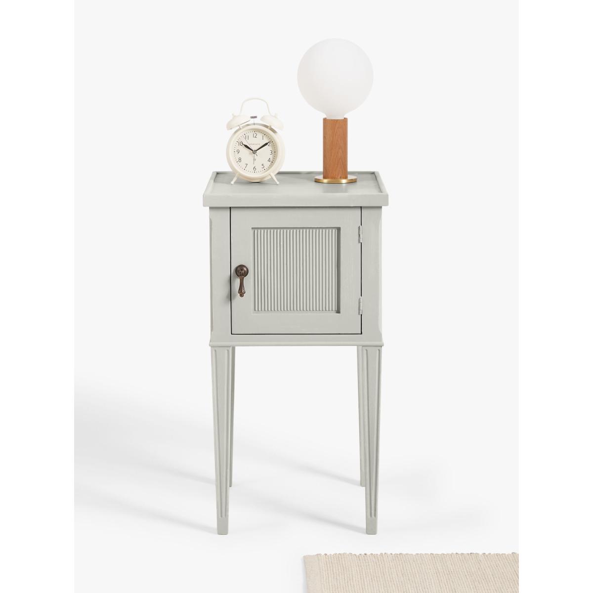 This Gustav bedside table is made from solid poplar wood and MDF ensuring a sturdy build. Rib Panel detailing on its door adds a modern twist to traditional quality and design and makes it easy to style in both modern or more traditional interiors. It's compact, but the cupboard door design provides just the right amount of space for your bedside essentials. Want to see it first? You may want to see and get a feel for the furniture in one of our shops before ordering. We'll be able to tell you where the range you'd like to view is on display.