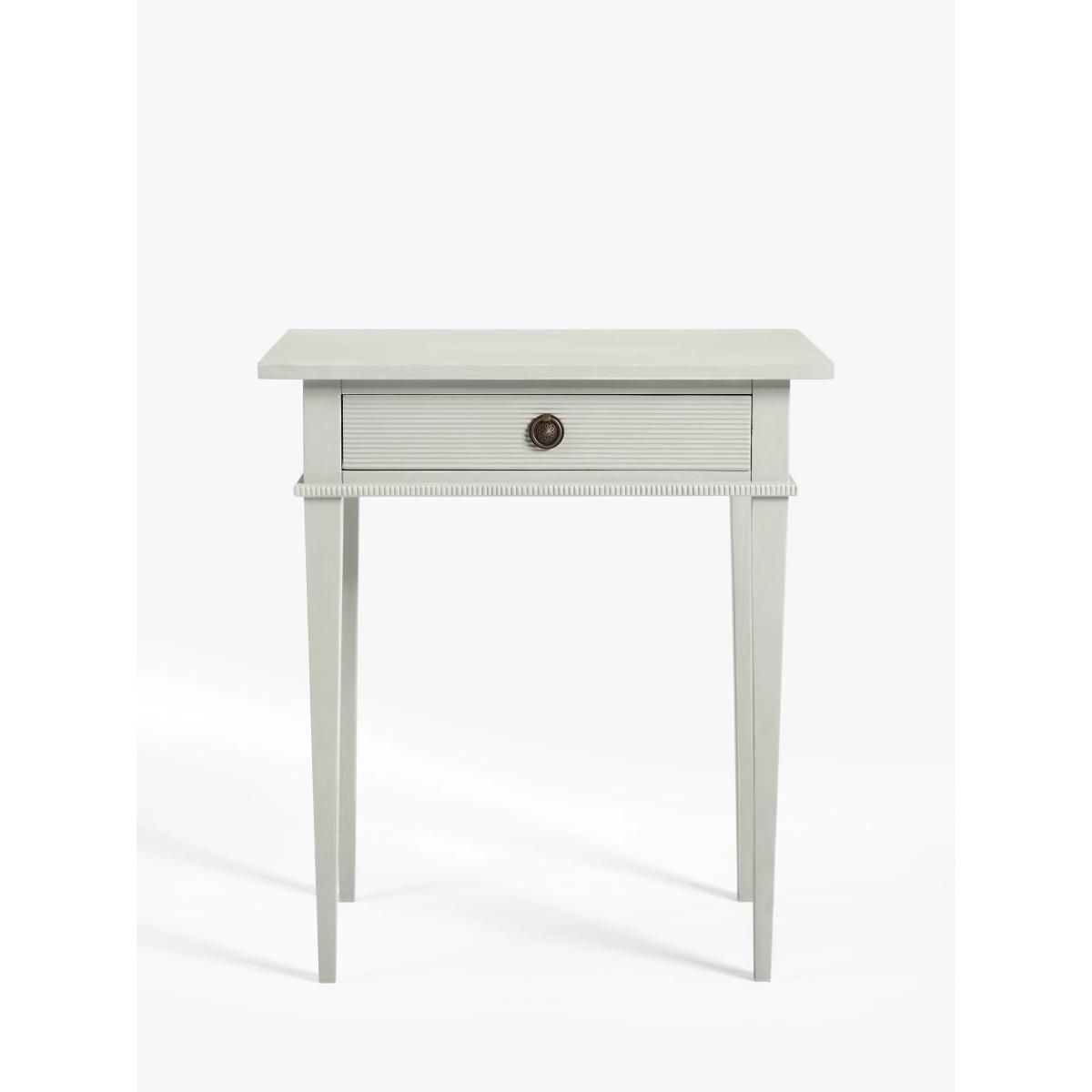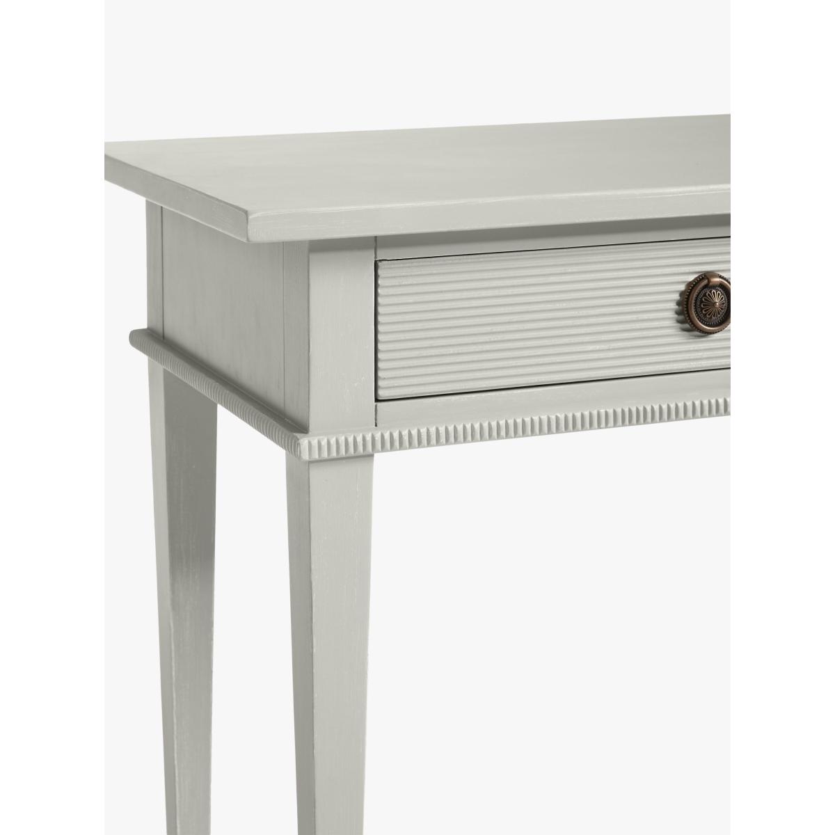 This Gustav compact dressing table is made from solid poplar wood and MDF ensuring a sturdy build. Rib panel detailing on the drawer adds a modern twist to traditional quality and design and makes it easy to style in both modern or more traditional interiors. The compact design makes it perfect for small spaces and a drawer in the centre provides space for your dressing table essentials Want to see it first? You may want to see and get a feel for the furniture in one of our shops before ordering. We'll be able to tell you where the range you'd like to view is on display.