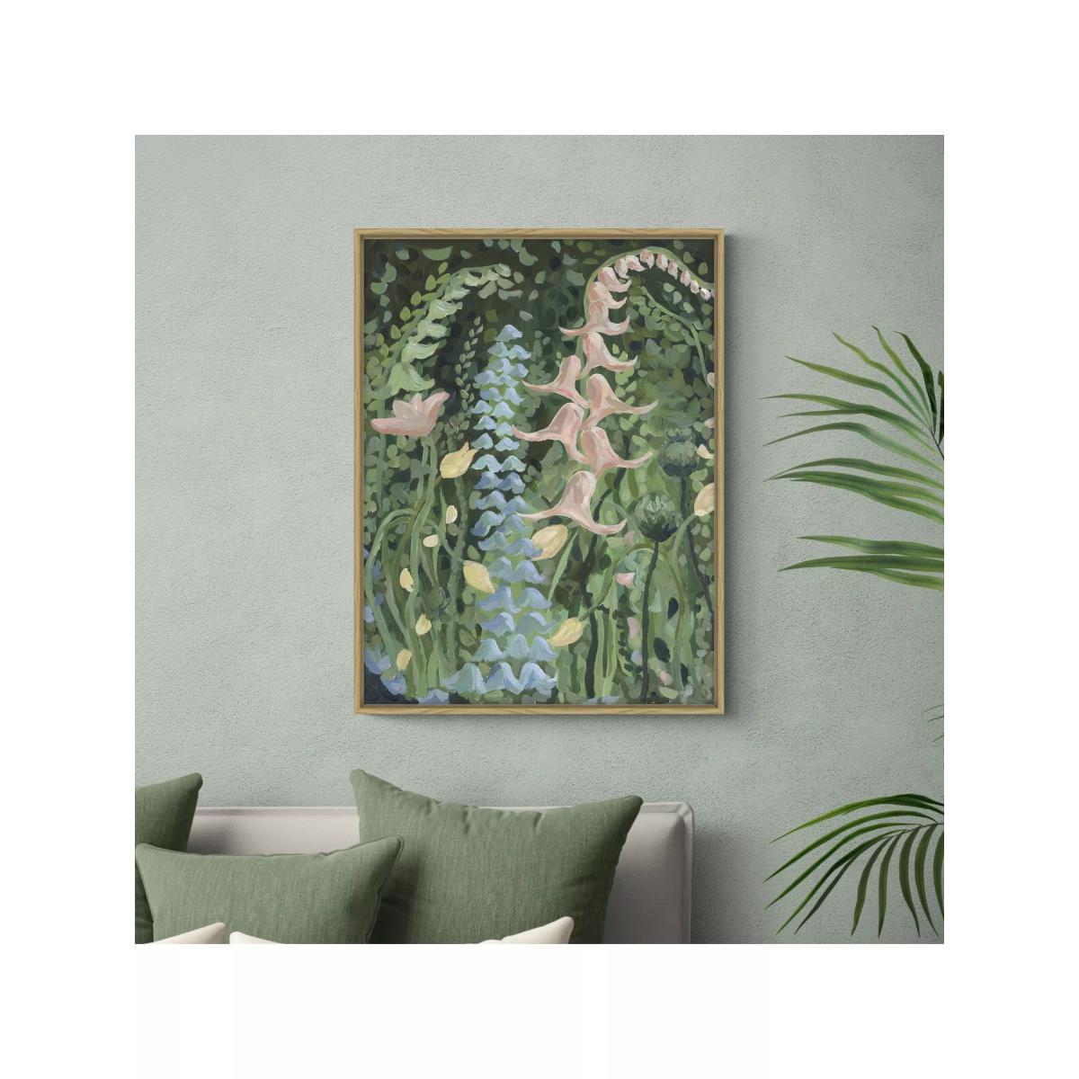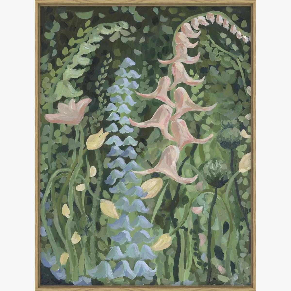 'In the Midst of Spring' framed canvas print by Harlie Briggs. Made in the UK and ready to wall hang, this stretched canvas print has an oak wood frame. Born and raised in London, Harlie developed an early fascination with nature's beauty and complexity. This appreciation, combined with a longing for the tranquillity of the outdoors, now forms the cornerstone of her artistic practice. Have you thought about wall hooks and fittings?