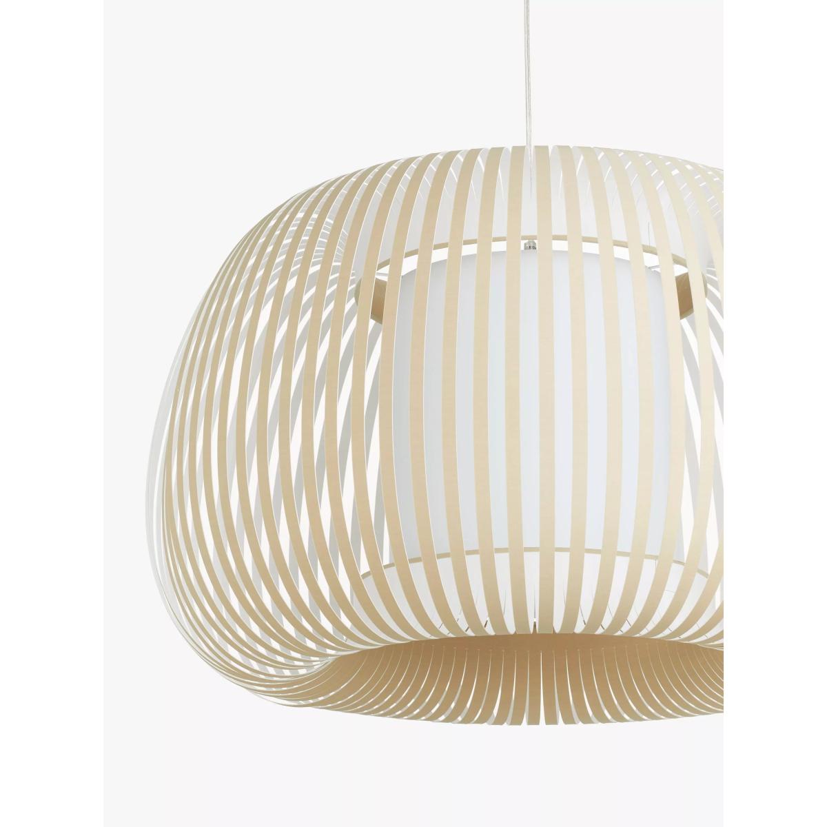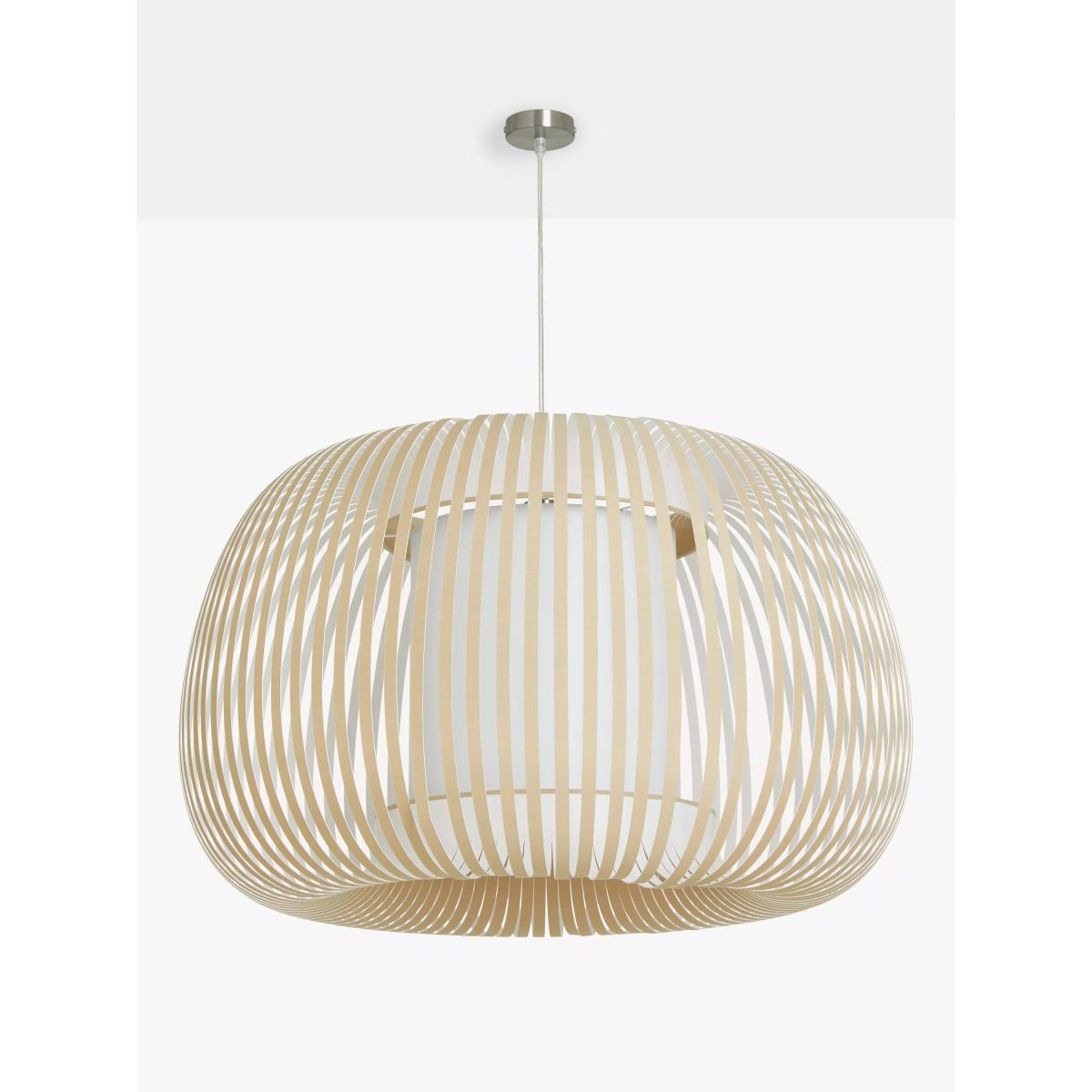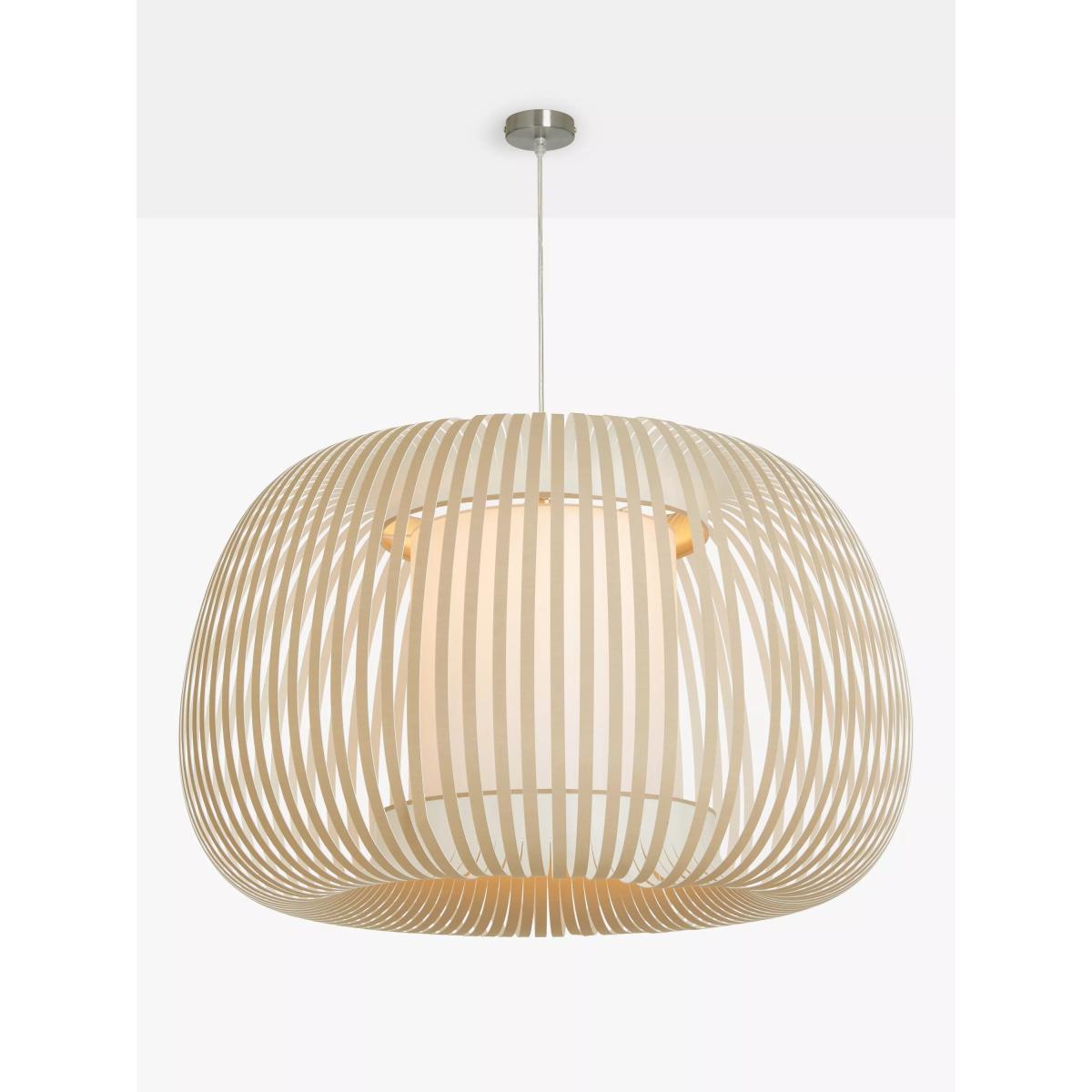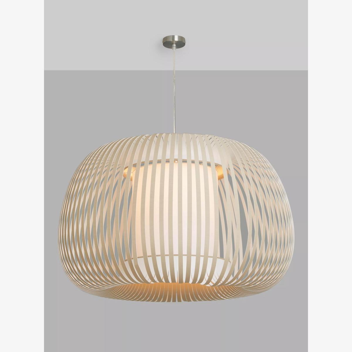I really like this pendant - it offers a sleek, modern take on lighting that works well in a variety of interiors. Its sculptural, open-slatted design creates beautiful light patterns and a warm ambiance, making it suitable for contemporary or minimalist spaces, but it can also add a touch of interest to more eclectic or Scandinavian-inspired rooms. Practical tips include hanging it at a height that maximises its visual impact, especially over dining tables or kitchen islands. Pair it with bulbs that complement its warm tone, and consider layering with other lighting to create a balanced, inviting atmosphere. It’s a versatile piece that blends form and function effortlessly.
