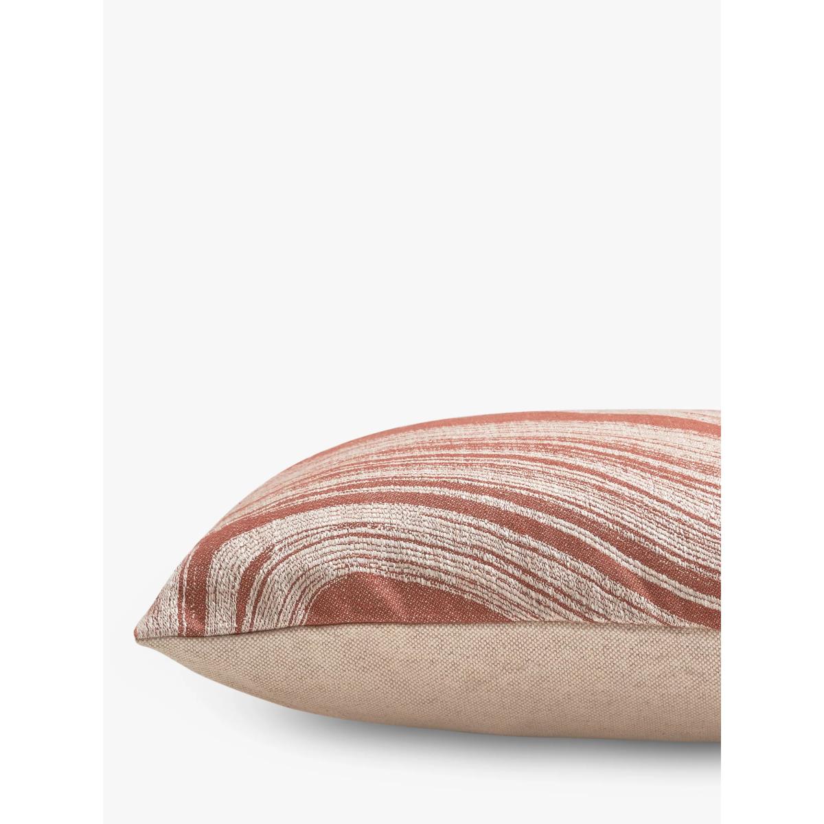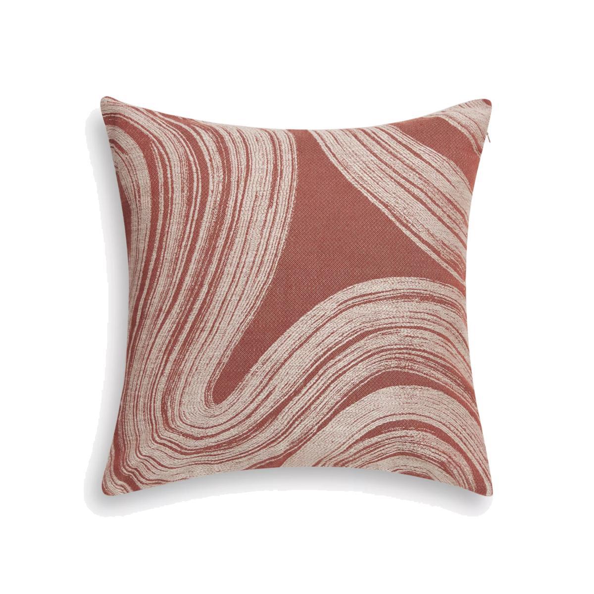 This bolster cushion has a calming design that evokes a meandering stream or rock strata. The reverse is plain.