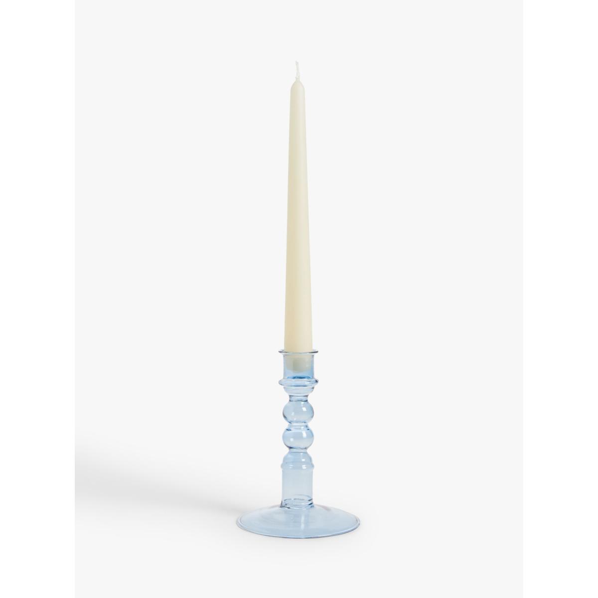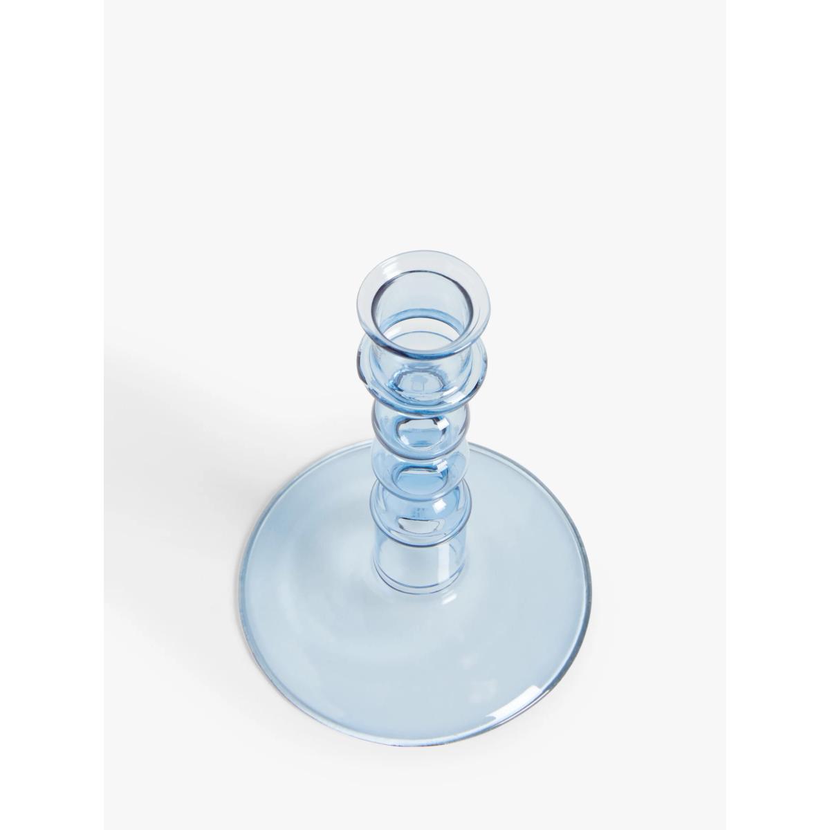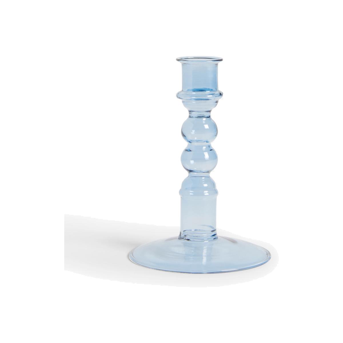 I love this candle holder for its contemporary yet versatile look. The bubble glass and soft blue hue make it a great statement piece that adds a touch of colour and interest without overpowering a room. It works particularly well in minimalist or coastal-inspired interiors, where its light tone can complement neutral palettes or shades of blue. Practical styling tips include grouping it with other candlesticks of different heights on a dining table or sideboard, or using it as a standalone piece on a mantel or bedside table for a calming glow. Its generous size and clear glass also make it ideal for creating cosy atmospheres in living rooms or bedrooms.
