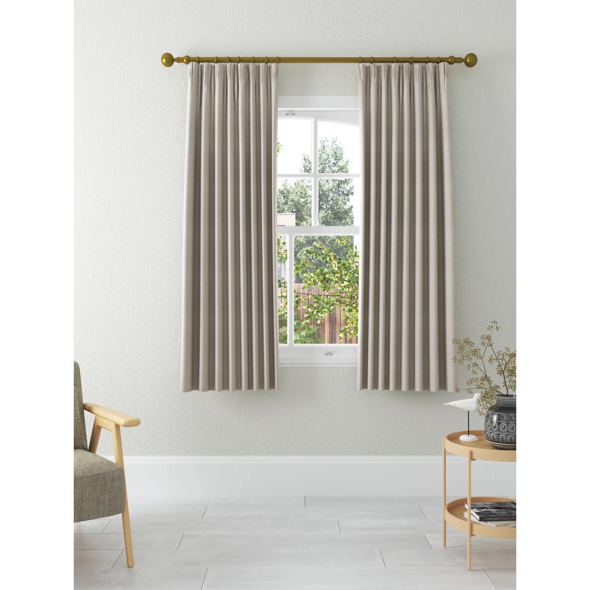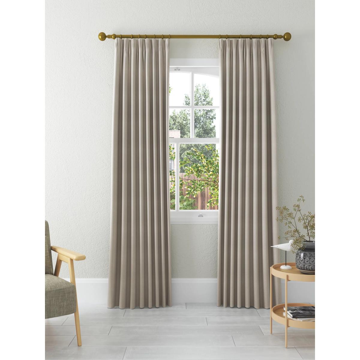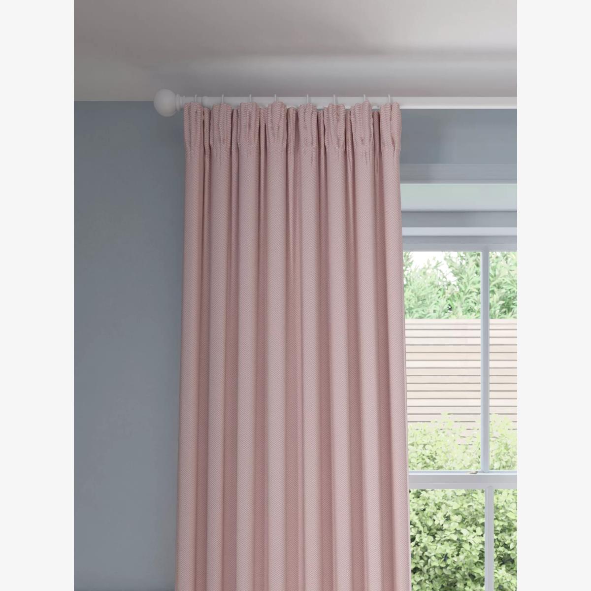 A pair of lined curtains with a classic herringbone weave pattern. The pencil pleat heading creates small, neat folds at the top and the lining lends a full look to the curtains, improving the drape and enhancing the vibrancy of the pattern. Better Cotton By choosing our cotton products, you’re supporting our investment in Better Cotton’s mission to help cotton communities survive and thrive while protecting and restoring the environment. Better Cotton Farmers are farmers who care for the environment and respect workers’ rights and wellbeing. This product is sourced via a system of mass balance and therefore may not contain Better Cotton. bettercotton.org/massbalance Choosing the right size These curtains can be hung with a pole or track using curtain hooks (not included). There are three hook positions on the heading, allowing you to choose how your curtains sit against the track or pole. For example, if you're using a track you may want to use the middle or lower row of hooks to cover the track, whereas if you're using a pole you may want to use the top row of hooks so the curtains hang below the rings. The specified drop is taken from the top row of hook pockets to the bottom edge of the curtain. The width stated indicates the size of one curtain panel when laid completely flat. This pack contains two panels, and the track/pole length we've recommended allows for the two panels to be gathered when the curtains are drawn. For a fuller look, increase the curtain width. One pair of 167cm width curtains will fit a curtain track/pole size 133-167cm One pair of 228cm width curtains will fit a curtain track/pole size 182-228cm Worth knowing... We package our curtains in recycled materials to keep them protected whilst they make their way to you. This means that when they arrive there could be some creases in them. We recommend you hang them for a few days to allow them to flatten and for the creases to fall out. If after this period your curtains still show signs of being folded then follow the ironing instructions on the back of the packaging. Be aware that each style of curtain has different ironing instructions, including heat limitations according to the fabric, so do make sure you follow the guidance provided to get the best results. Do you need a curtain pole and accessories? Shop them here.