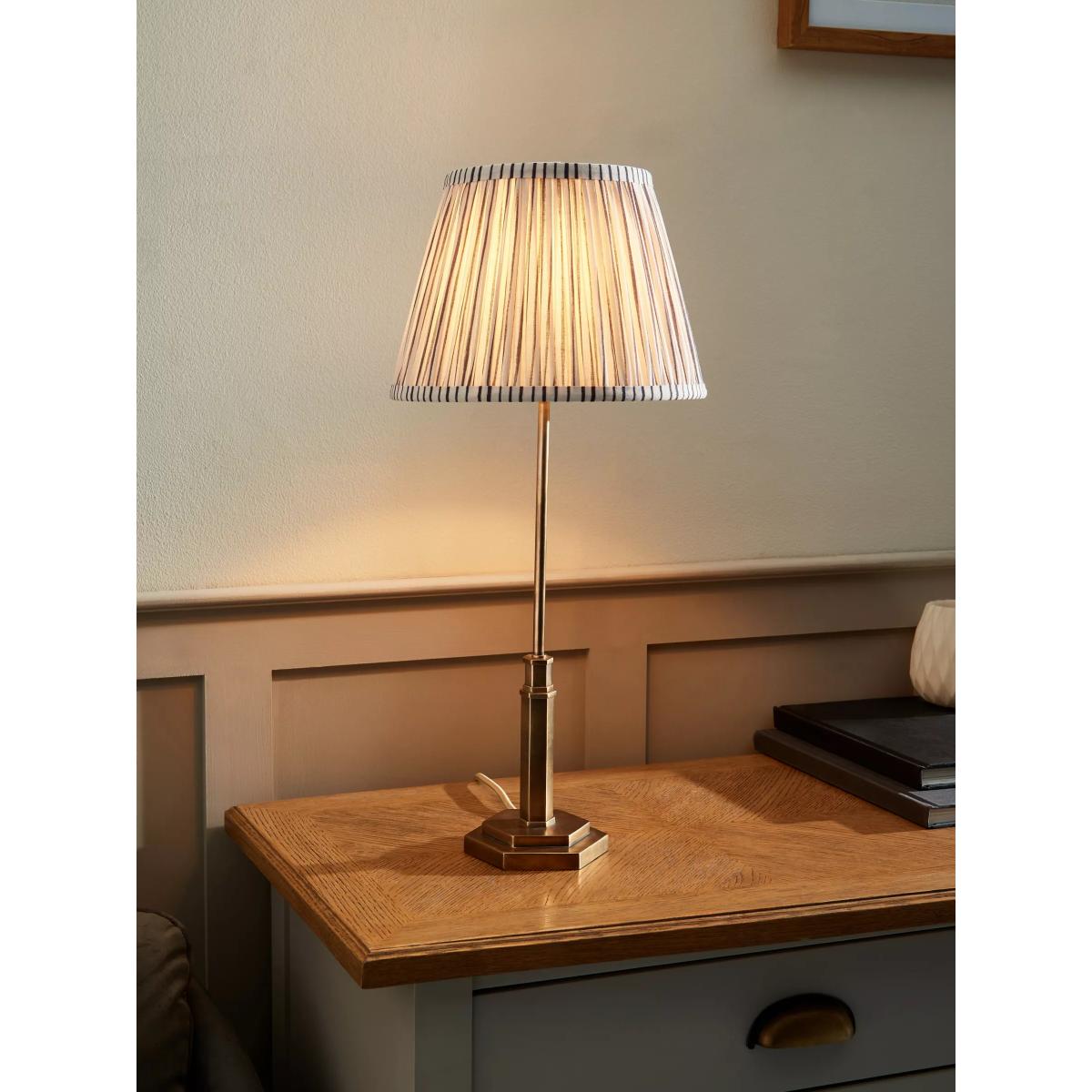 I love this little lamp base for its vintage-inspired appeal and its versatile aged brass finish, which adds warmth and sophistication. It works particularly well in contemporary, eclectic, or traditional interiors where a touch of metallic detail can elevate the overall look. For styling, I recommend pairing it with a neutral or textured lampshade to highlight the brass's richness. It’s ideal for side tables, desks, or bedside tables, and for a more layered effect, you can mix metals or incorporate other brass accents in the room. Just ensure the proportions fit your space so that the lamp isn't overwhelmed and remains a stylish yet functional feature.