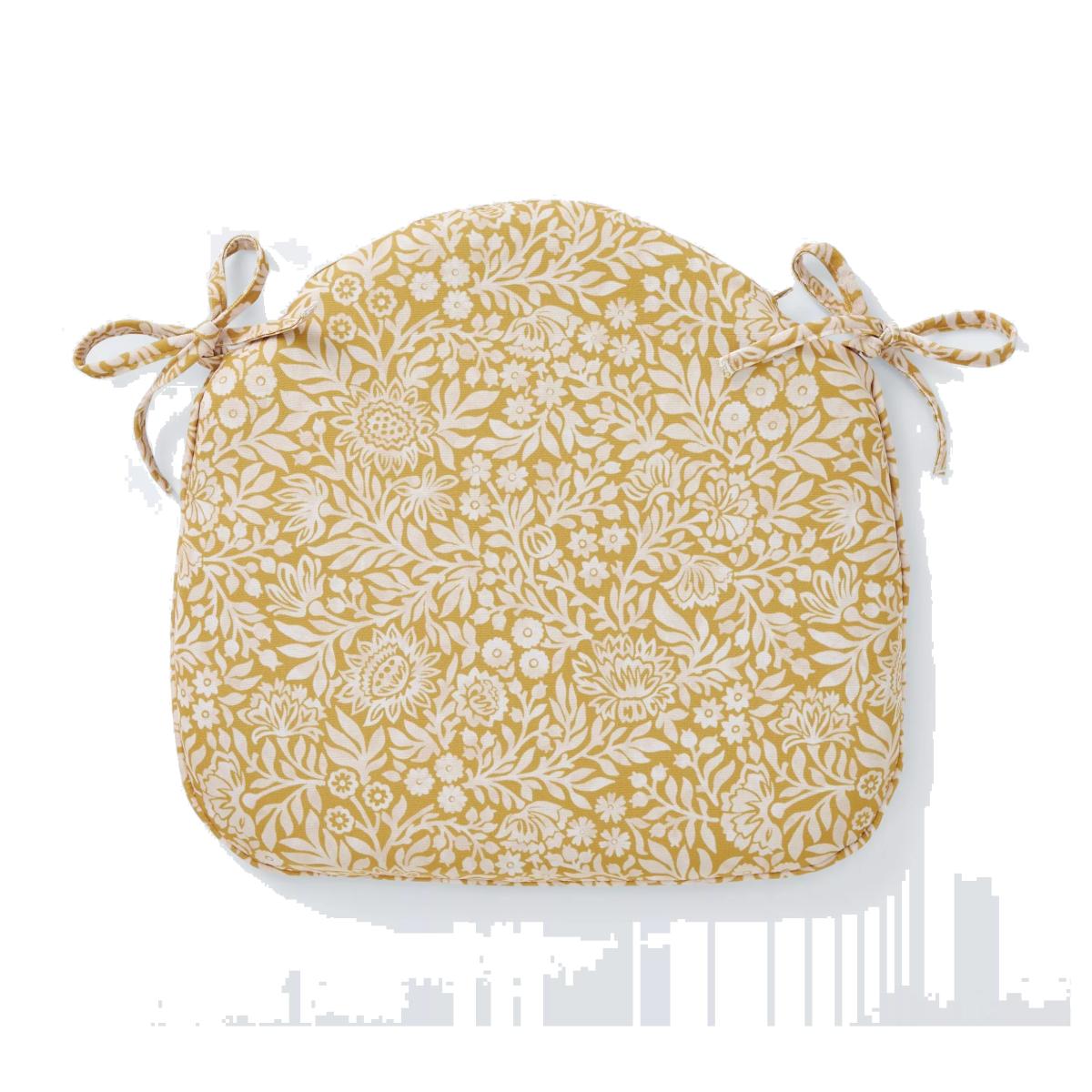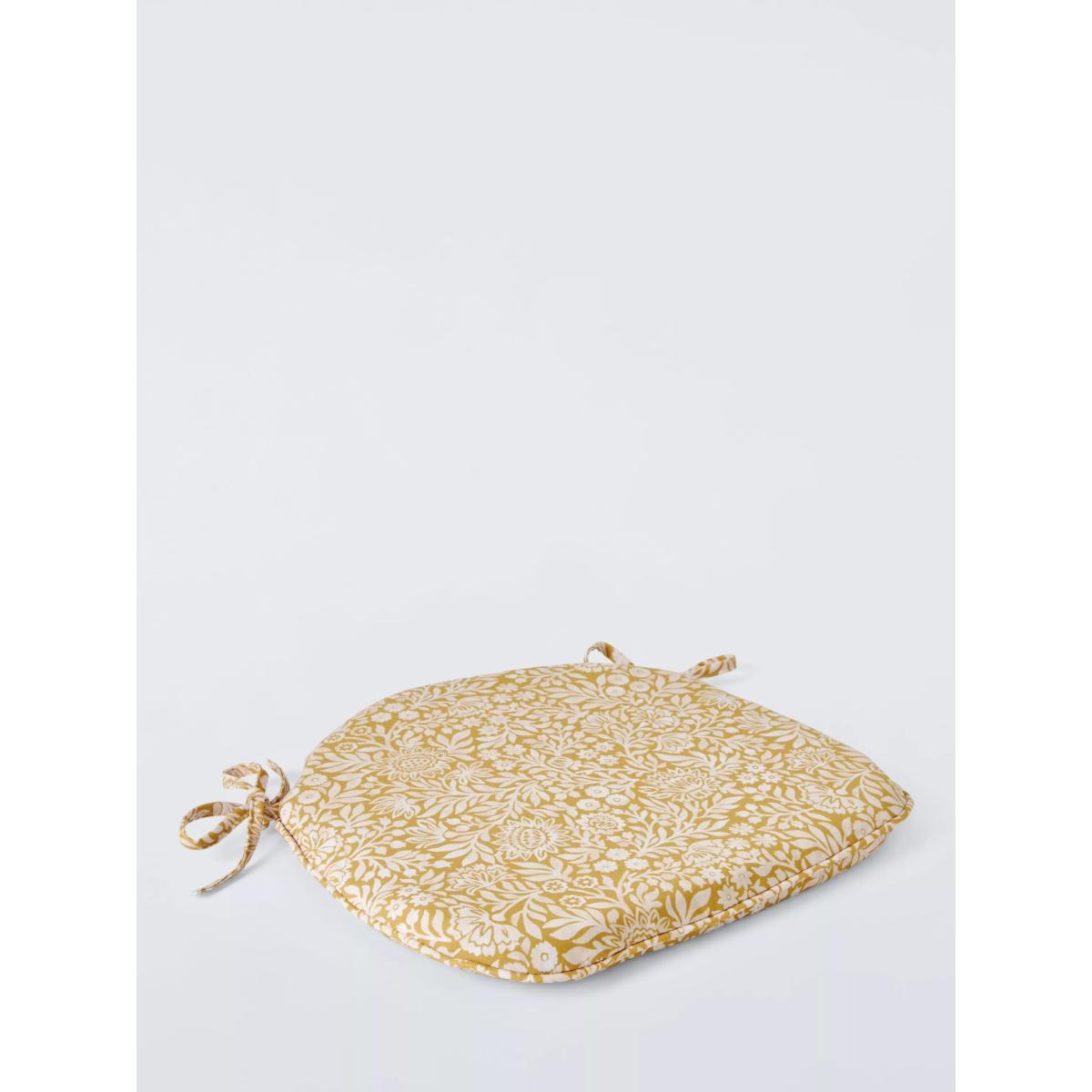 This foam-filled seat pad will add extra comfort to a wooden dining chair and fastens with cotton ties. The floral design was derived from a John Lewis archive print.