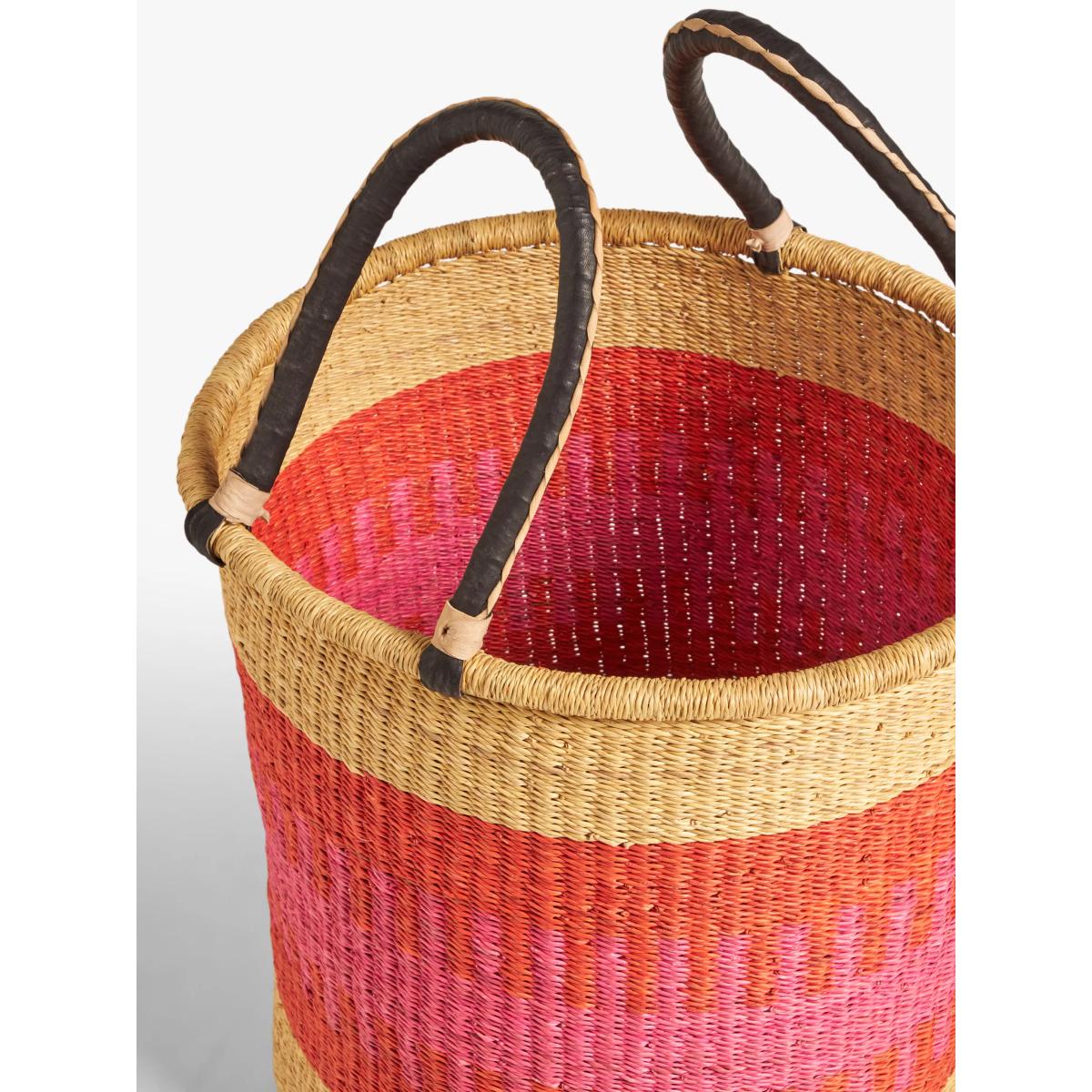I love this basket for its mix of natural texture and a pop of colour, making it both functional and visually appealing. It works well in a variety of interiors-from boho and coastal schemes to Scandinavian-style spaces-adding a relaxed yet organised touch. Practical tips include using it as a stylish storage solution for toys, throws, or magazines in living rooms, or as a laundry basket in bedrooms. Its sizeable, sturdy design makes it versatile, and layering it with other textured or colourful accessories can really elevate the look. Keep it in view as a statement piece or tuck it away in a corner for a neat but stylish storage option.