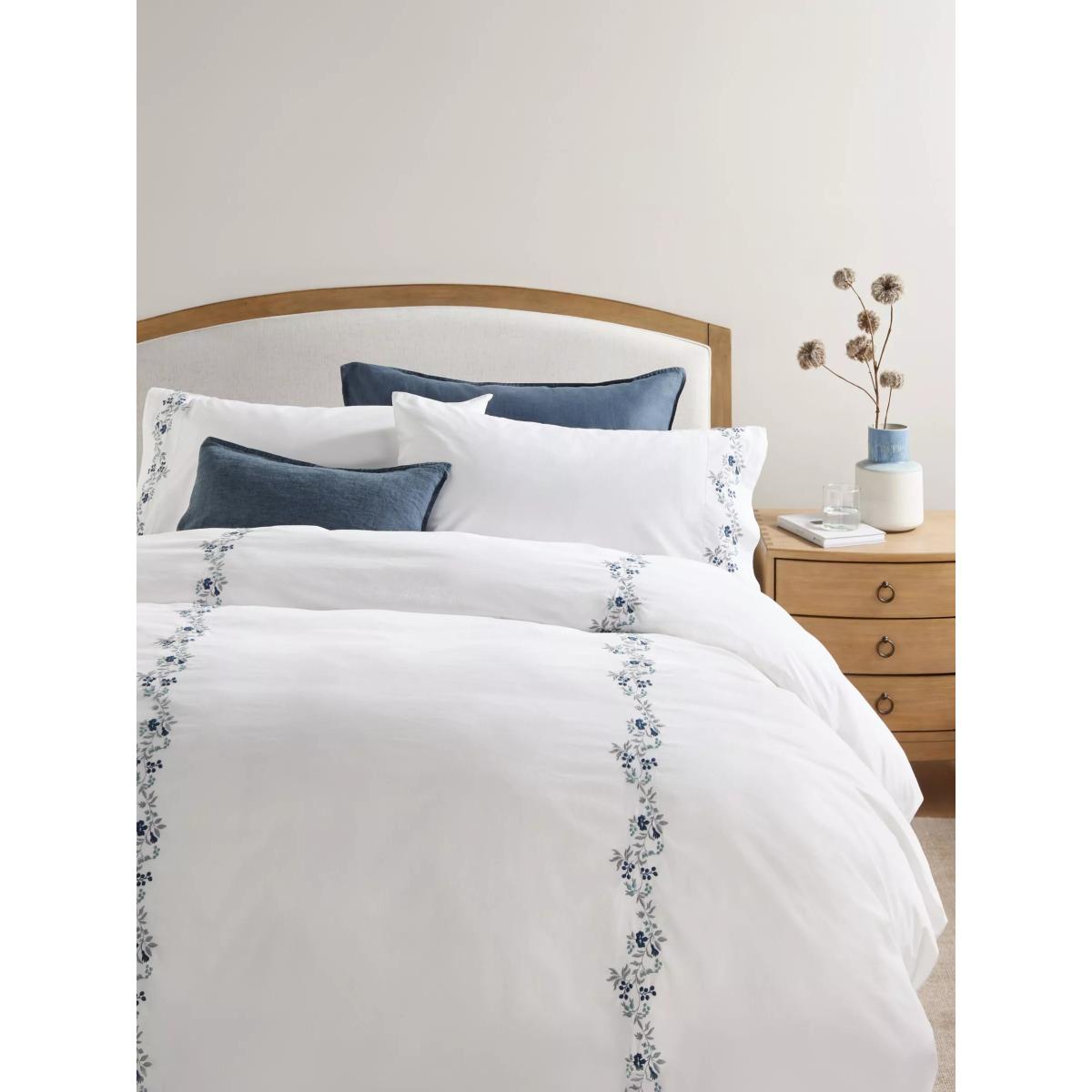 This bedding is made from soft, washed cotton and embroidered with a delicate floral trellis. The fabric is naturally breathable, helping to keep you cool and comfortable all night long. Please note that pillowcases are available to buy individually and not in sets. Bedding sizes To fit duvet/pillow size (cm) Standard pillowcase, L75 x W50cm Single duvet cover, L200 x W135cm Double duvet cover, L200 x W200cm King duvet cover, L220 x W225cm Super king duvet cover, L220 x W260cm