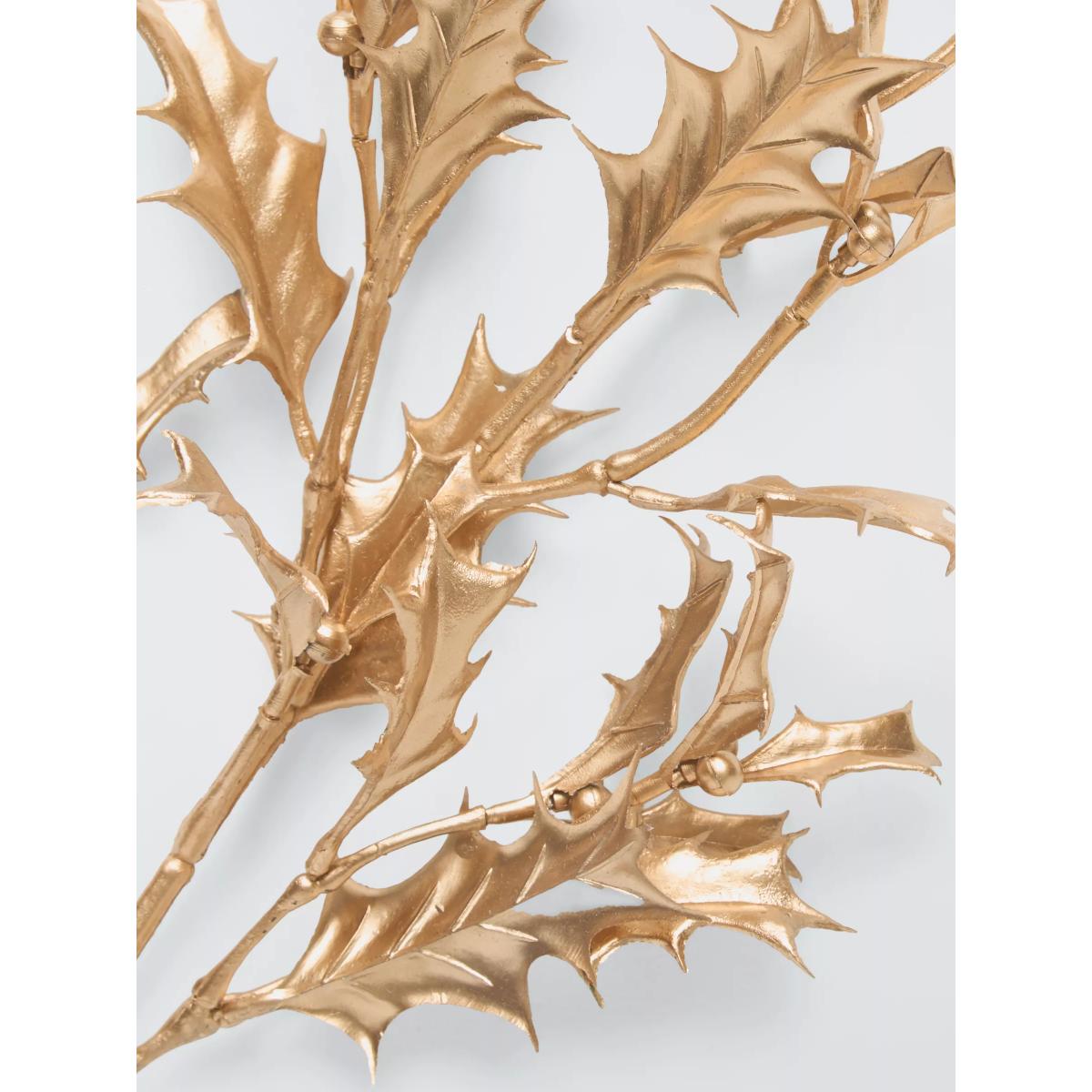 A realistic holly spray in shimmering gold. Great for adding to festive flower arrangements.