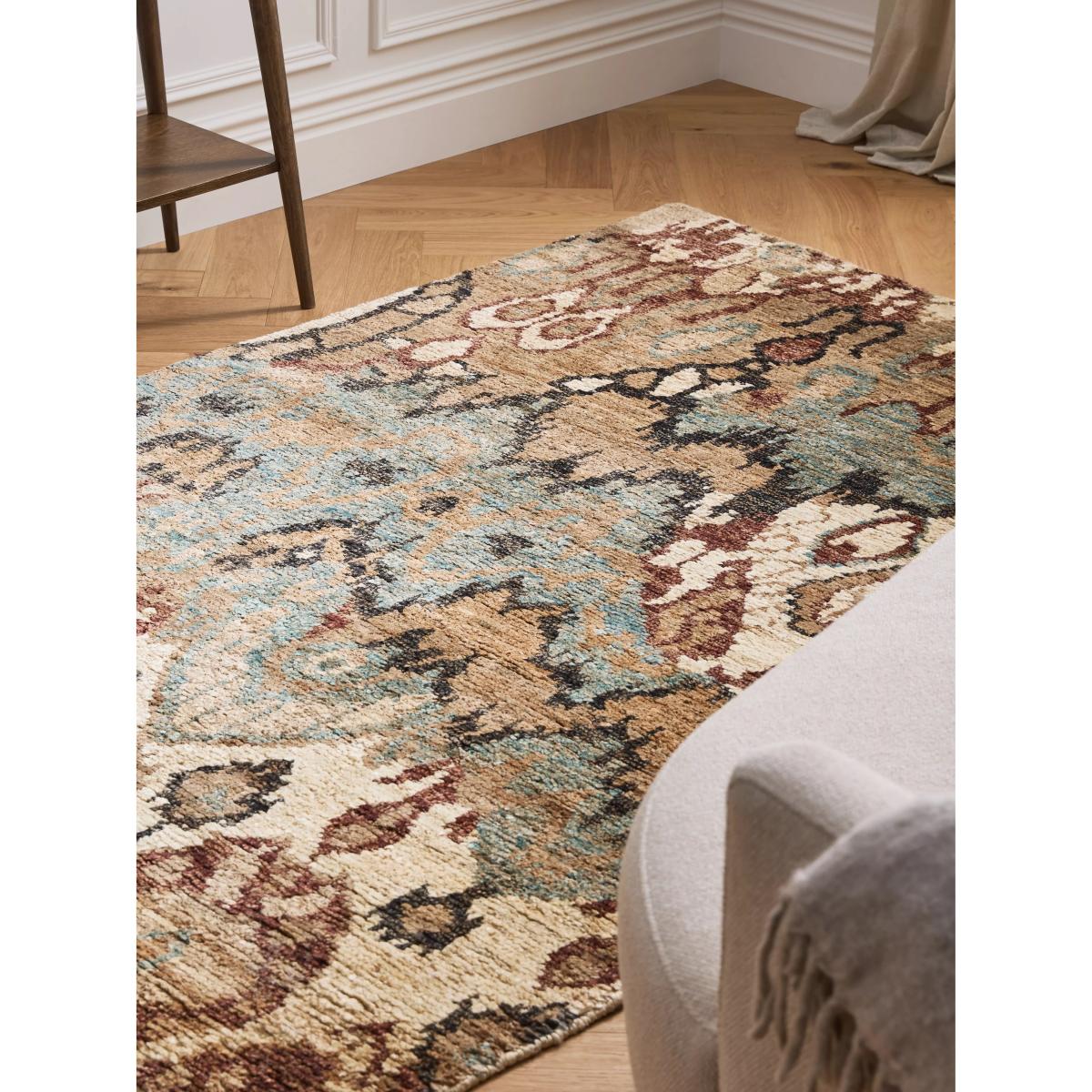 With a hypnotising pattern that draws the eye, this enchanting rug is made from a durable jute blend. This rug has been knotted by hand, the oldest and most individual way a rug can be made. This involves an intricate process of weaving by hand on a loom where yarns are tied one at a time, giving the rug a durable construction. About your new rug We recommend John Lewis & Partners Rug Hold Underlay. It prevents your rug from moving underfoot and protects against colour transfer to the floor Natural fibres may shed. This will reduce over time, and should not have an impact on the lifespan or performance of your rug When vacuuming your rug, use suction only. Rotating brushes may damage the fibres Blot any spills with a clean, dry cloth. Do not rub or use harsh detergents. Jute is a natural fibre meaning colour variance is expected both in its natural form and when dyed. This means each rug could have a slightly different tone, making your new rug unique.