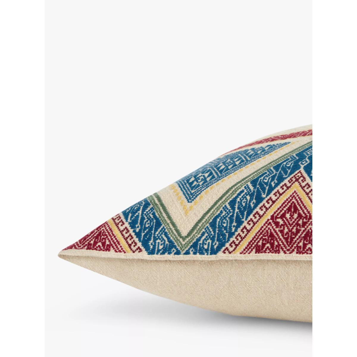 I love the John Lewis Indira cushion for its bold, vibrant pattern that can really lift a neutral or monochrome sofa. Its mix of colours and geometric design make it versatile for both contemporary and boho interiors, adding a touch of personality without overwhelming the space. Practical styling tips include pairing it with more subdued cushions to let it stand out, or mixing with textured throws for a layered look. It works well on both sofas and armchairs, and because of its striking pattern, it’s best used as an accent piece to inject colour and visual interest into your living room.