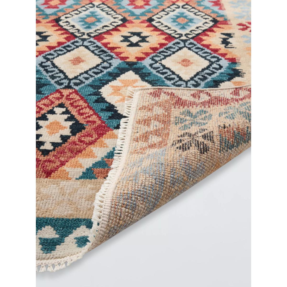 With a beautifully intricate pattern throughout, inspired by centuries of traditional design, this rug is indulgently hand knotted from pure wool. This rug has been knotted by hand, the oldest and most individual way a rug can be made. This involves an intricate process of weaving by hand on a loom where yarns are tied one at a time, giving the rug a durable construction. The benefits of a wool rug Warm and durable, wool feels beautifully soft underfoot and is long-lasting Naturally flame-retardant and odour resistant Water repellent so easier to clean Naturally biodegradable, wool is part of the circular economy and contains no micro plastics About your new rug We recommend John Lewis & Partners Rug Hold Underlay. It prevents your rug from moving underfoot and protects against colour transfer to the floor As this rug is made using natural fibres, shedding is to be expected. This will reduce over time, and should not have an impact on the lifespan or performance of your rug. When you first get your rug, please use the brush attachment on your vacuum cleaner whilst the shedding dies down. After that, when vacuuming your rug, use suction only. Rotating brushes may damage the fibres. When vacuuming your rug, use suction only. Rotating brushes may damage the fibres Blot any spills with a clean, dry cloth. Do not rub or use harsh detergents. Attend to spillages immediately and blot with a clean, dry cloth to prevent staining. Dilute a small amount of appropriate carpet shampoo in water. Dampen a colourfast cloth in the diluted shampoo solution and dab the rug, lightly agitating, moving in the direction of the pile. Treat the whole rug and not just the affected area. To restore the appearance of the affected area, use a soft bristled brush to gently comb in the direction of the pile. Allow the rug to thoroughly dry.