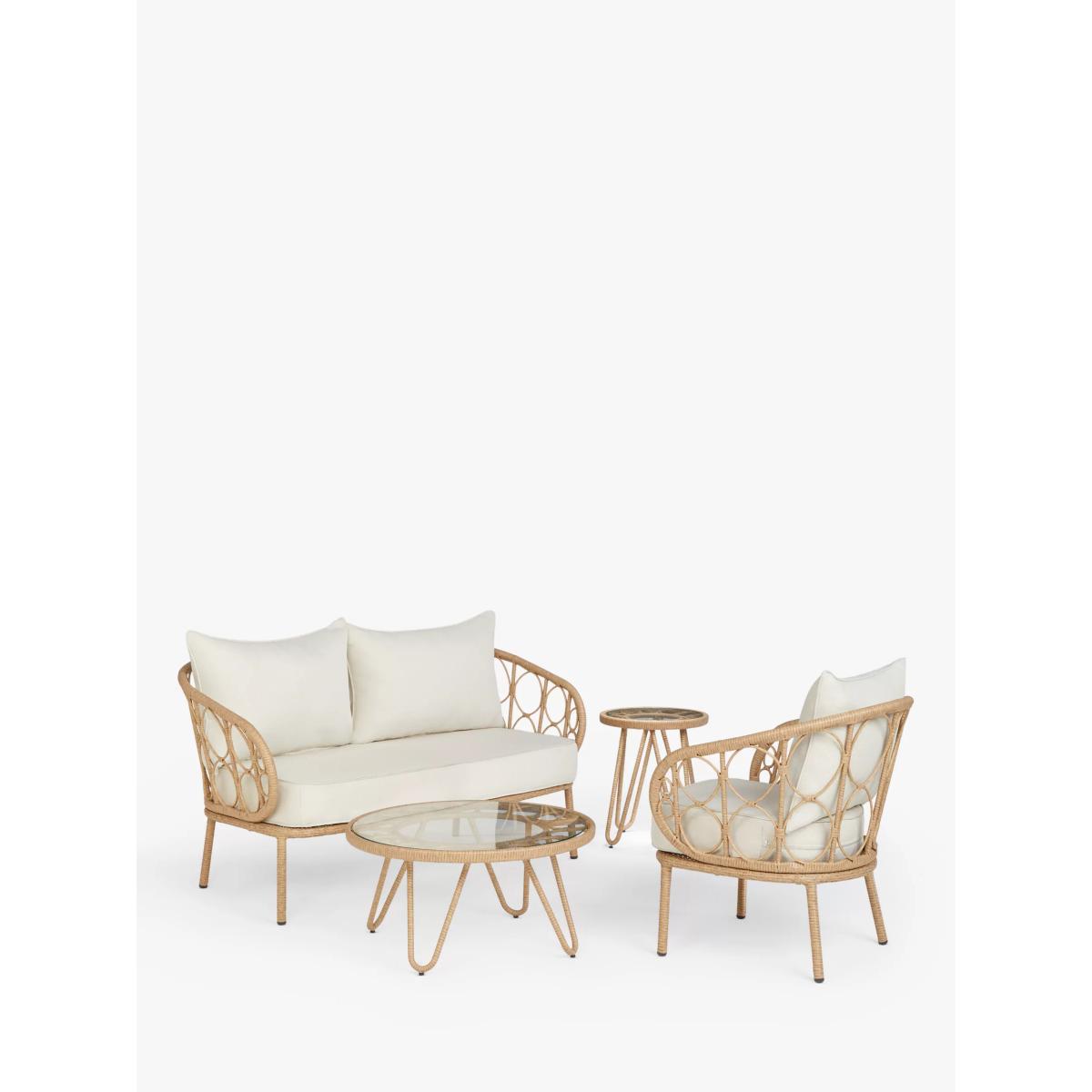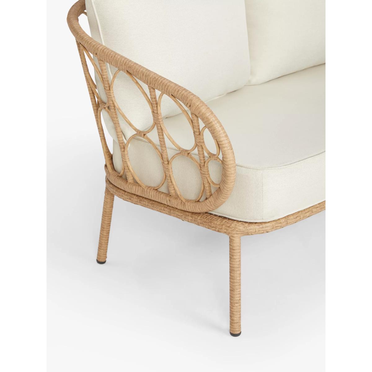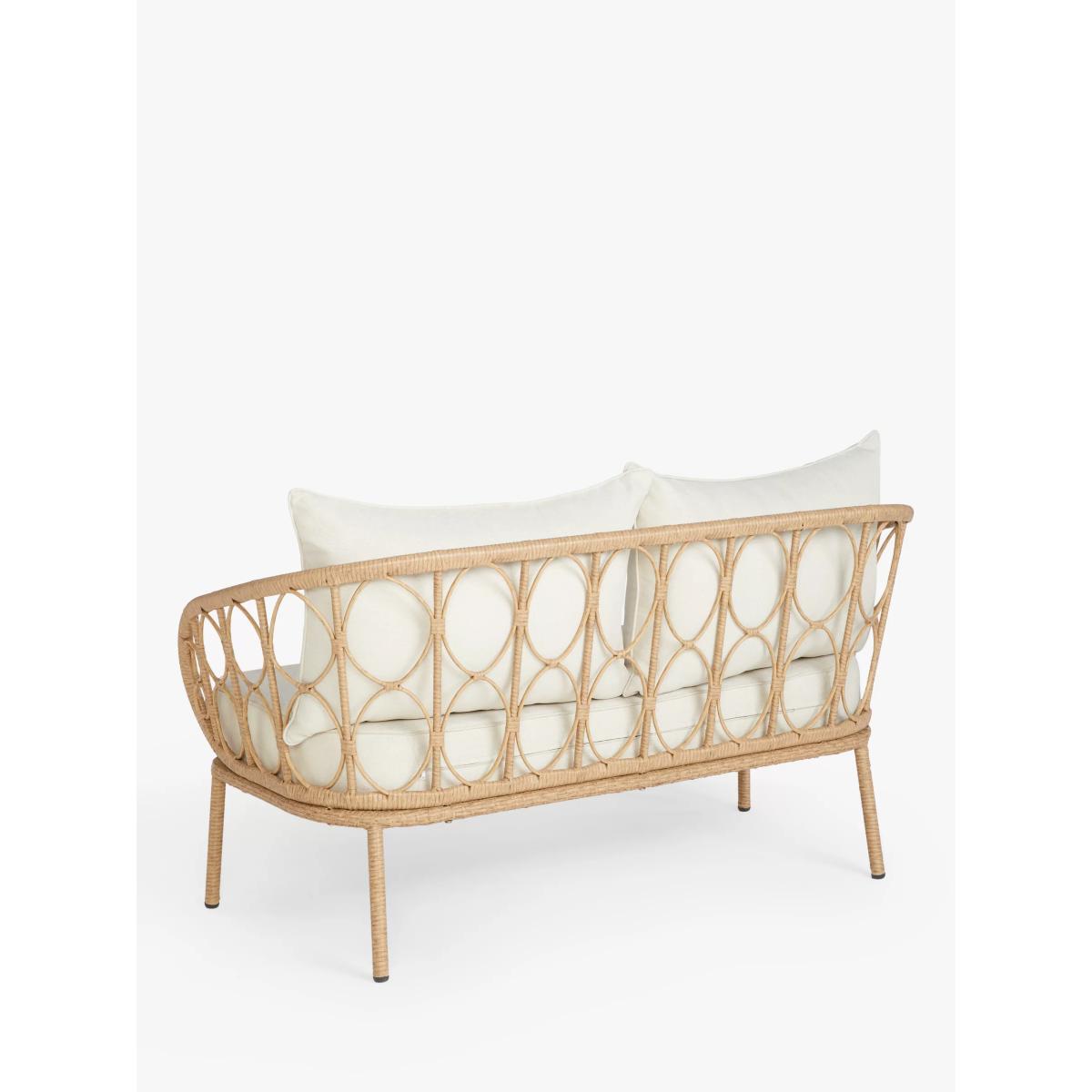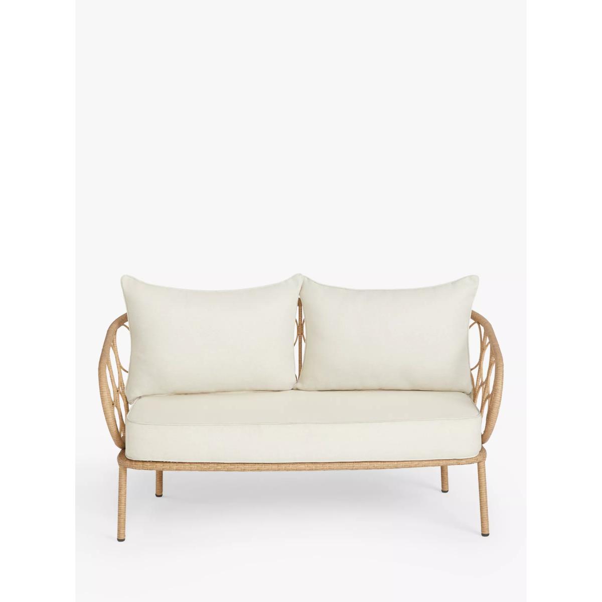 Traditional cane furniture gets an update with our Infinity garden range, named after its decorative handwoven figure-of-eight weave. The synthetic materials used make it suitable for outdoor use as well as for conservatories. 'Infinity is inspired by traditional cane furniture, with a contemporary twist. The figure-of-eight weave design creates a distinctive look and feel. Neutral colour fabric cushions complement the natural tones of the rattan weave on Infinity seating.' — designer Matthew Steels, John Lewis Design Studio. Key features: Two-seater garden sofa Weather-resistant synthetic cane wicker Robust steel frame Shower-resistant seat cushion Suitable for indoor and outdoor use Team with our Infinity range of garden furniture Garden furniture care: To keep your outdoor furniture in the best condition, store it in a cool, dry, well-ventilated spot indoors over the winter. If it’s staying outside, use an outdoor furniture cover whenever the weather is wet or unseasonal. Make sure furniture is clean and dry before storing it away and keep cushions in a clean and dry place when not in use. All our handwoven furniture ranges are made from synthetic wicker. This looks like natural wicker but has the advantage of being weatherproof, low maintenance, and resistant to both UV light and tearing. Choose the perfect outdoor furniture We have a vast selection of furniture for you to choose from which will suit the home or garden. The majority of our furniture ranges have been hand woven using a synthetic wicker. The thinner the weave, the longer it takes for the skilled workers to complete. All weave types are durable so they’ll last throughout the seasons All woven outdoor furniture is UV protected so it will not fade in direct sunlight All woven outdoor furniture is easy to maintain, simply wipe clean using warm water FlatA weave of various widths which offers incredible value for money Half roundMore detailed with a 3D effect, the half round is a round weave in half which displays a wicker appearance on the top and hollowed underside Double half roundA double strand of half round, this is a wider width of weave which achieves an expensive appearanceRound weaveA very tight weave which is available in various widths, from 2mm to 5mm RopeA selection of our ranges have been made using rope. The yarn is made up of 10,000 (approx) woven strands with a double core for extreme strength, does not attract mould even if wet for a long time and is UV resistant.