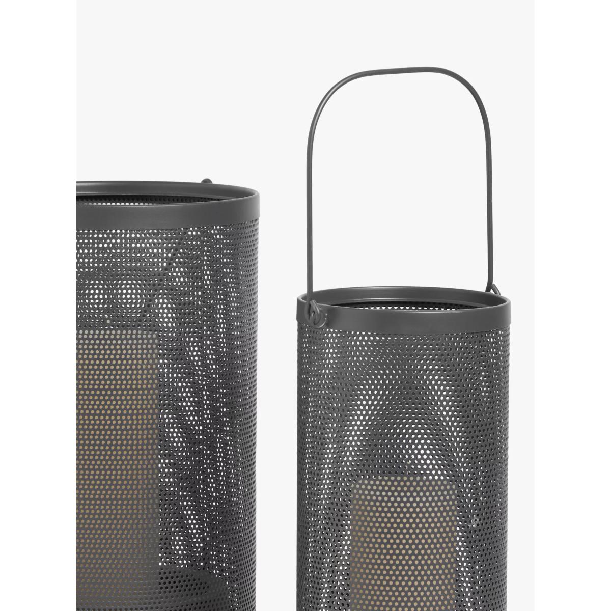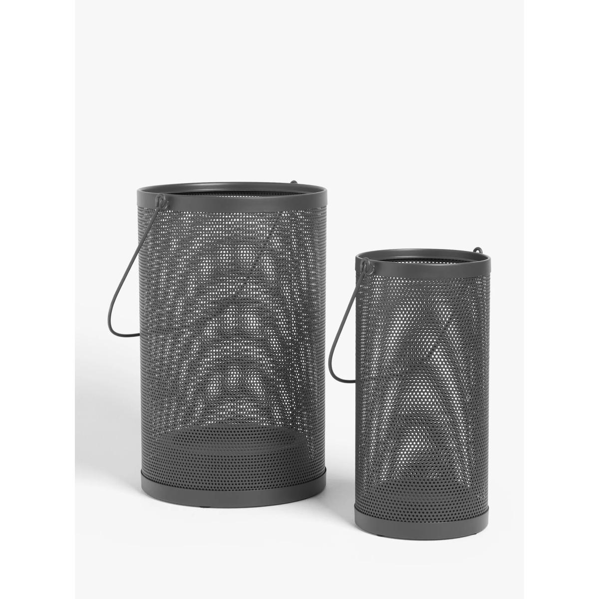 I love this set of outdoor lanterns for its clean, modern take on traditional lanterns, with a clever perforated metal design that adds subtle texture and interest. They work particularly well in contemporary or minimalist exteriors, but can also be styled in eclectic gardens for a touch of urban elegance. Practical tips include pairing them with pillar candles or LED lights inside to create a warm, inviting glow in the evening. Position them on patio tables, pathway edges, or hanging from hooks to enhance outdoor spaces without overwhelming the overall look. Their neutral colour and sleek silhouette make them versatile across various styles and settings.