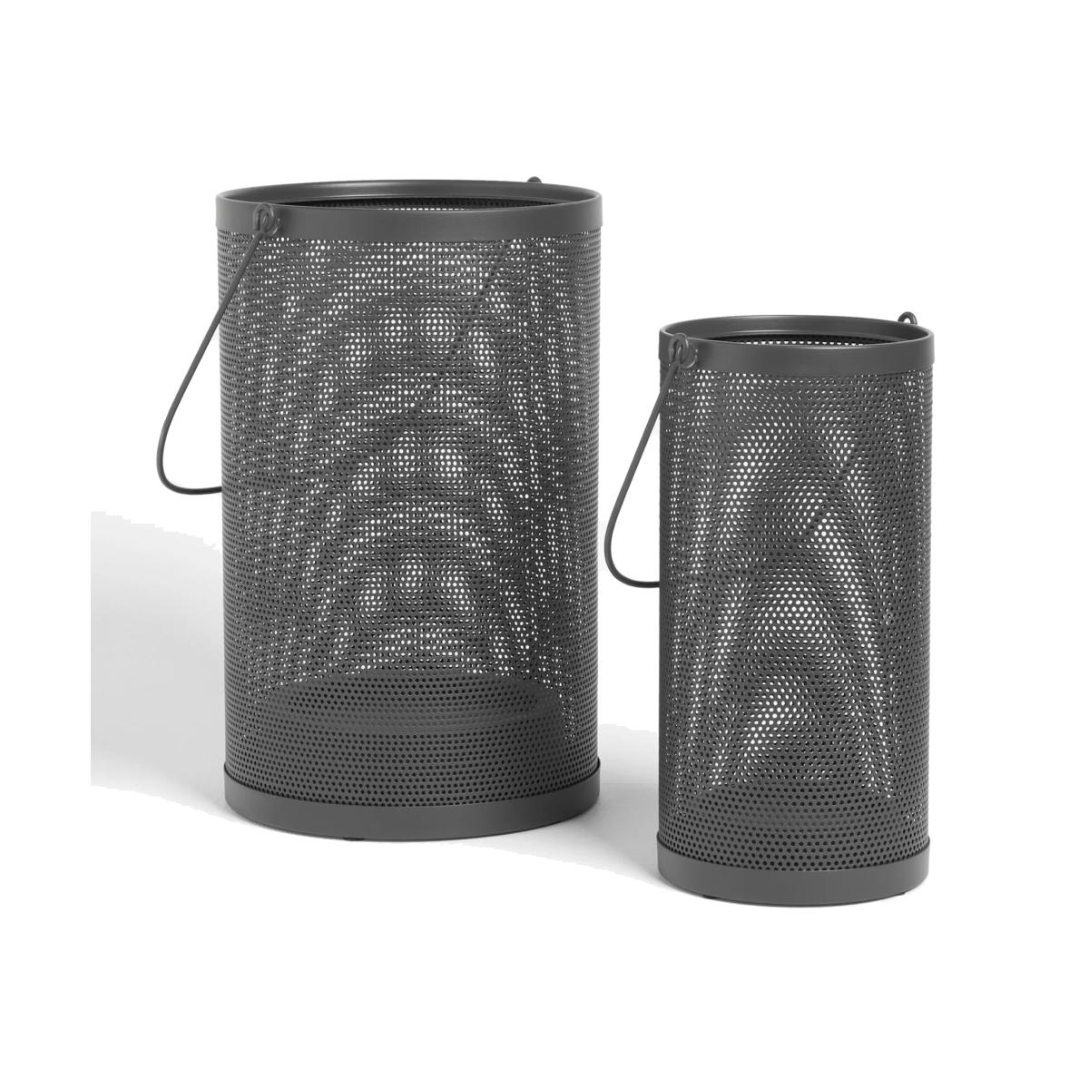 I love this set of outdoor lanterns for their versatile, industrial look which works beautifully in modern, rustic, or even coastal exteriors. The perforated metal design adds visual interest while allowing a lovely glow to shine through, making them perfect for patios, garden pathways, or balcony settings. Practical styling tips include pairing them with potted plants or placed on side tables for cosy evenings outside. They also work well in pairing with other metallic finishes or natural textures for a layered, curated outdoor aesthetic. Their size variety is great for creating focal points or grouping for a more impactful display, and they’re ideal for use with pillar candles or LED equivalents to suit your ambiance needs.
